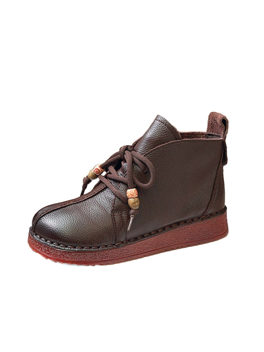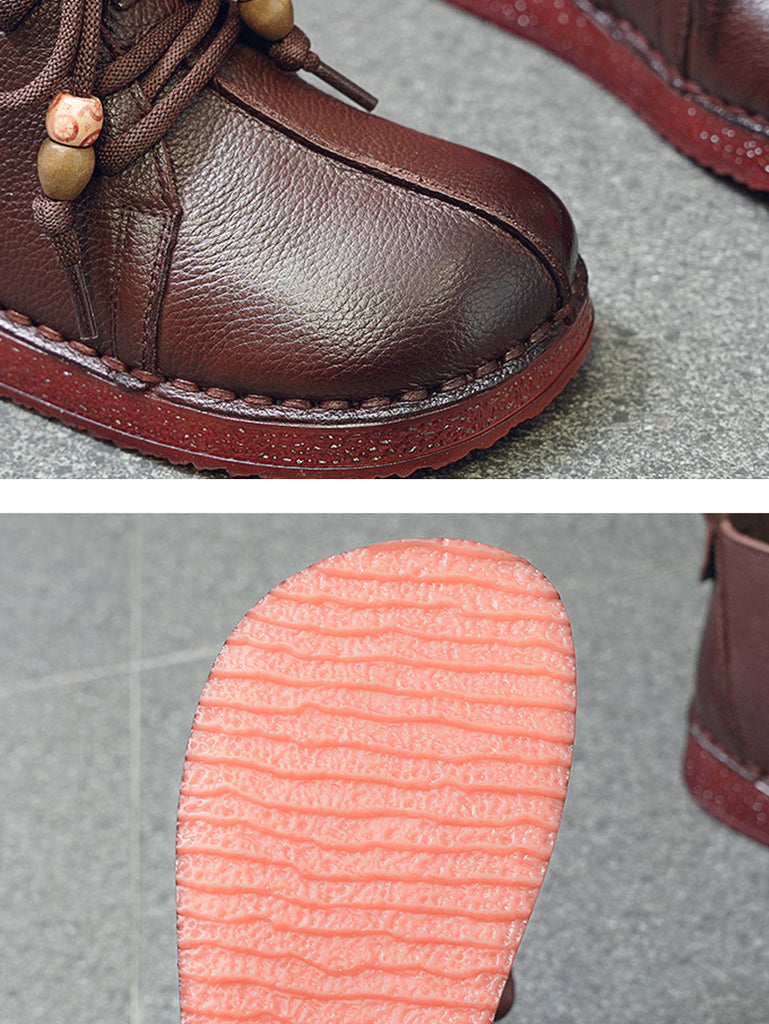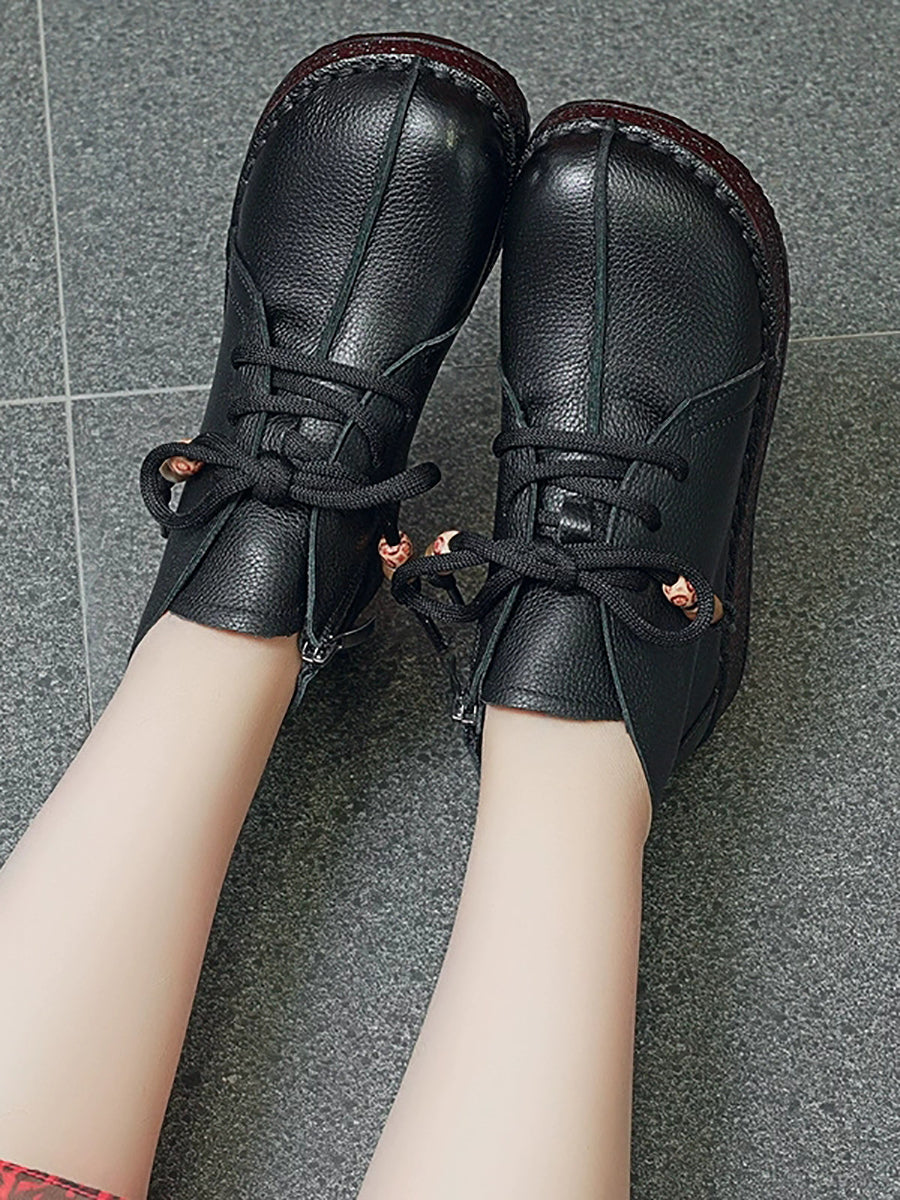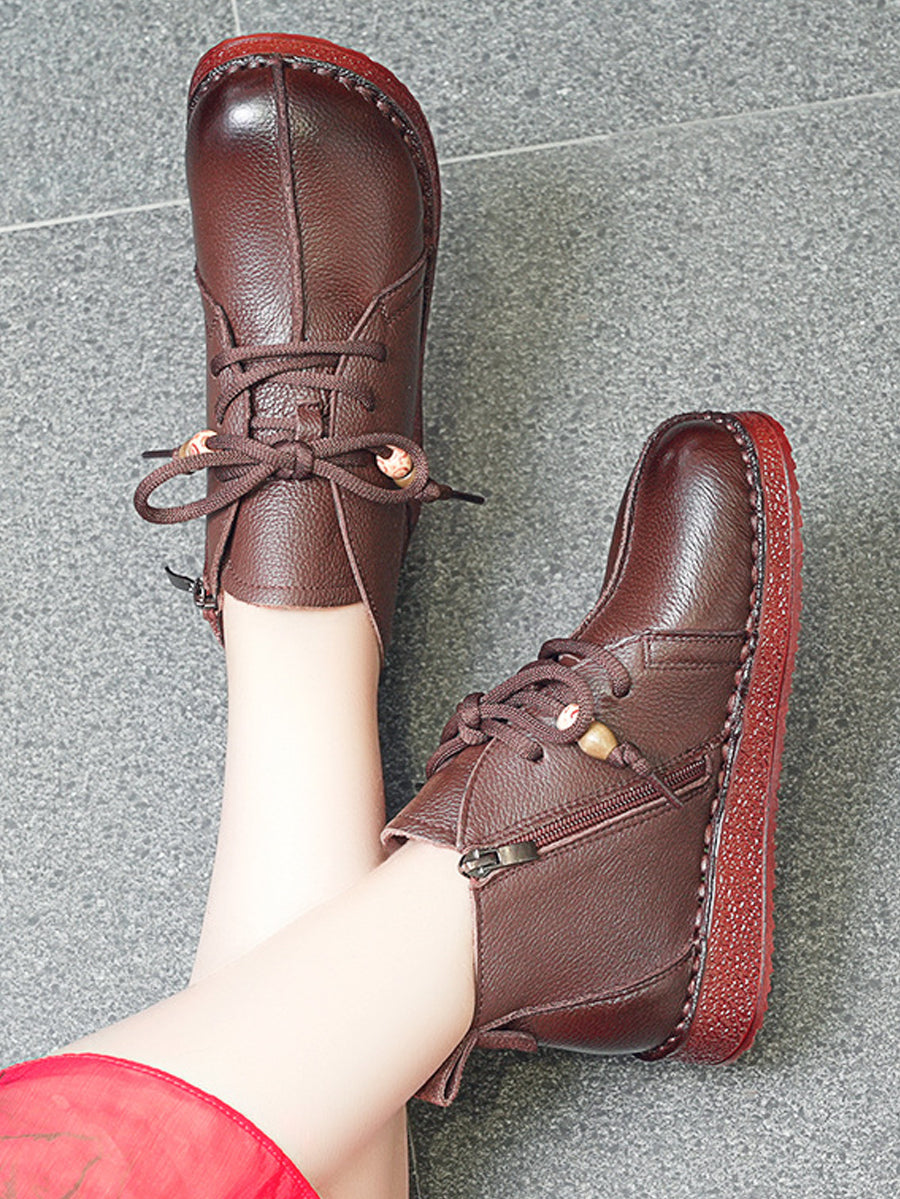 حذاء نسائي بكعب منخفض من الجلد الطبيعي بتصميم عتيق