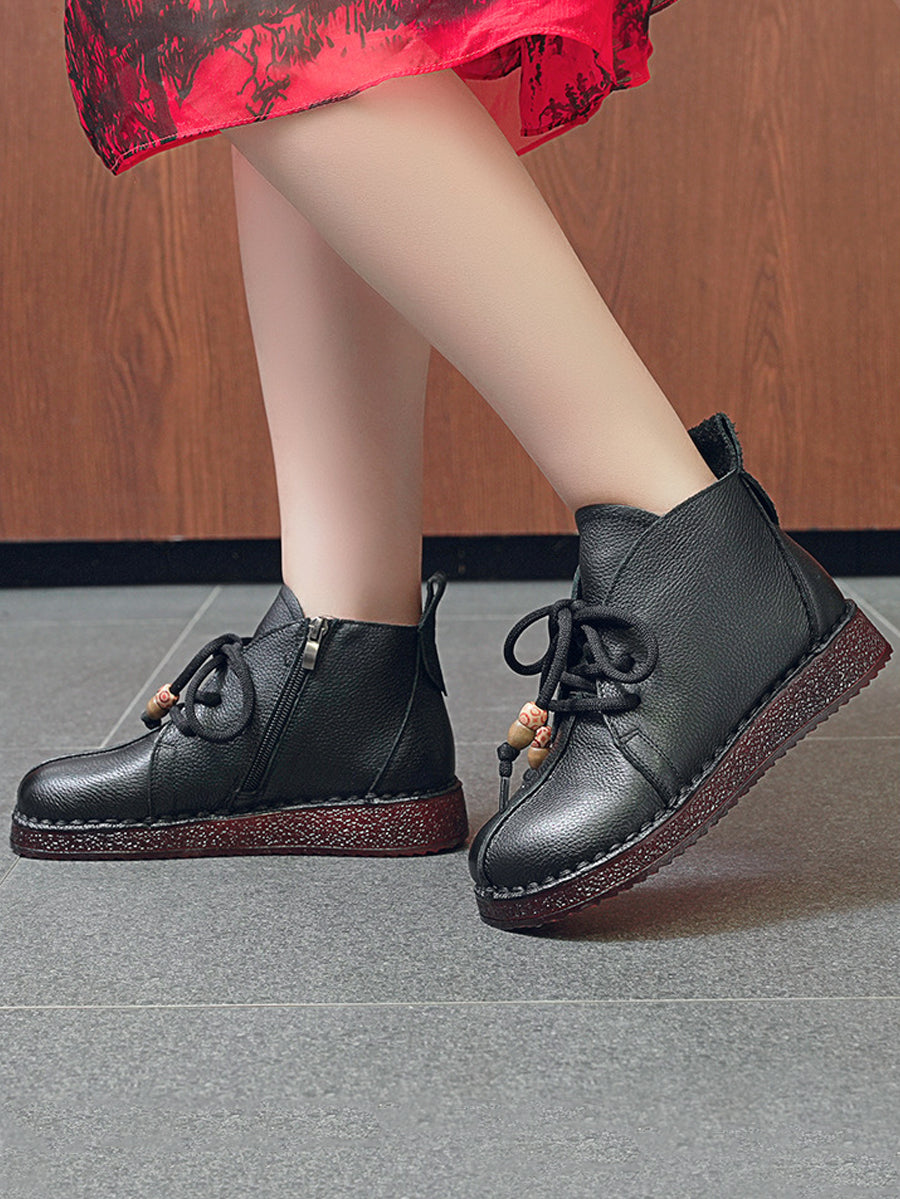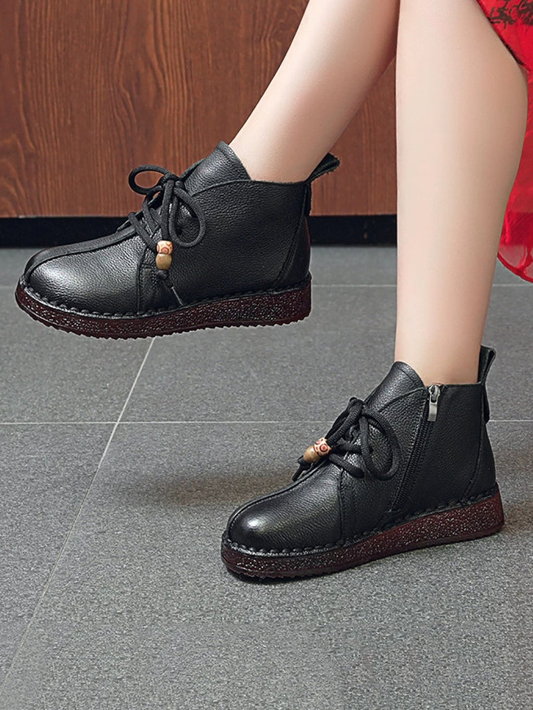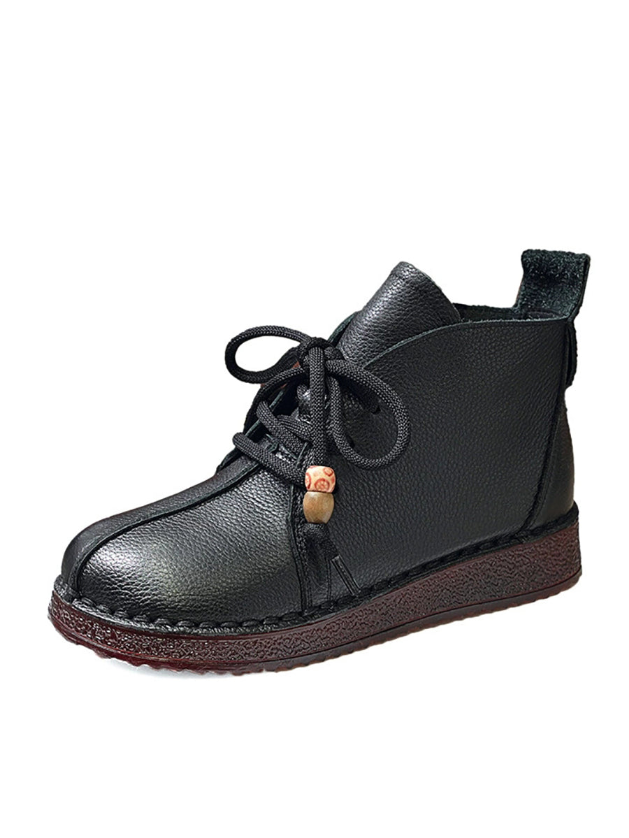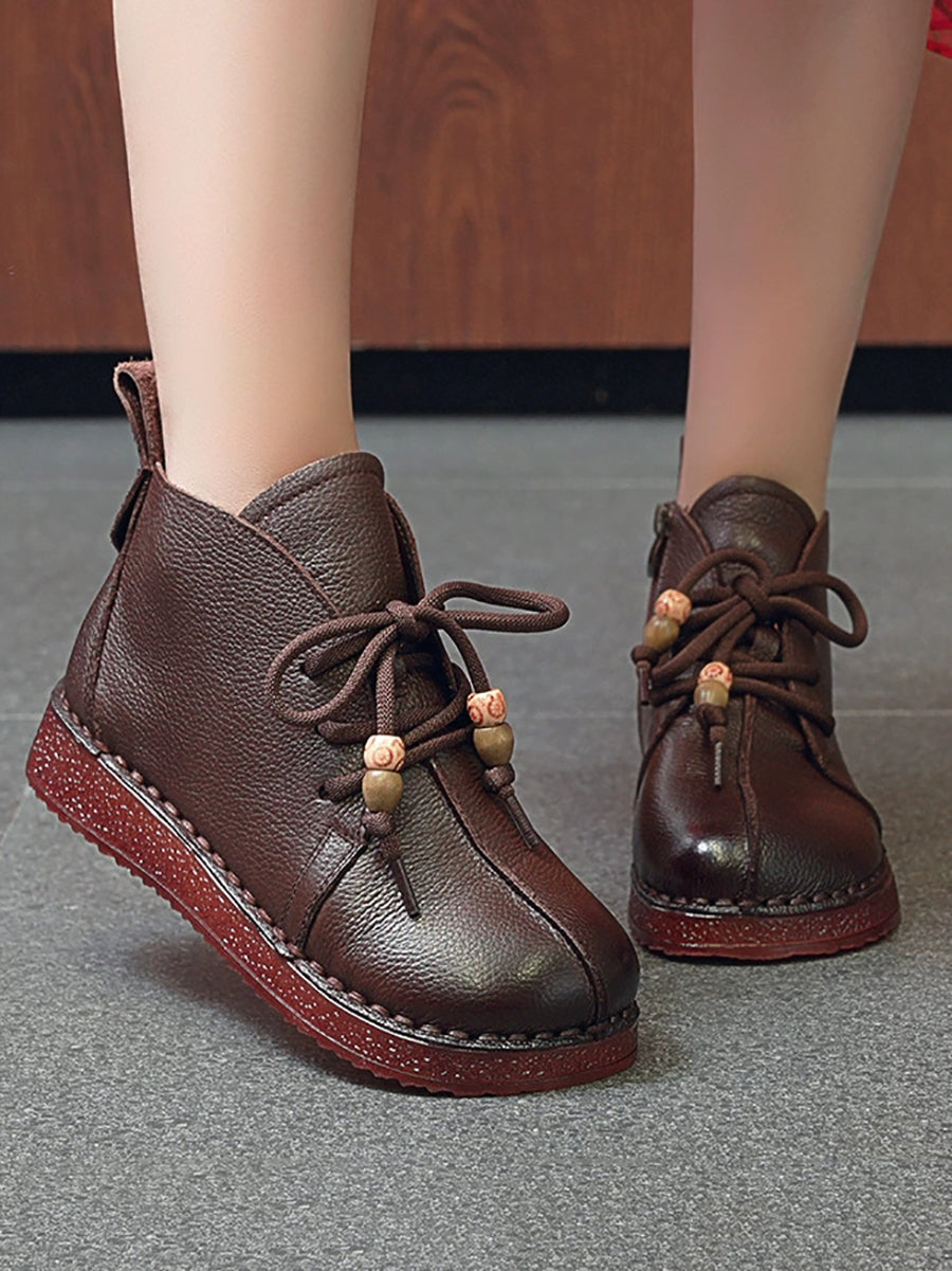 حذاء نسائي بكعب منخفض من الجلد الطبيعي بتصميم عتيق