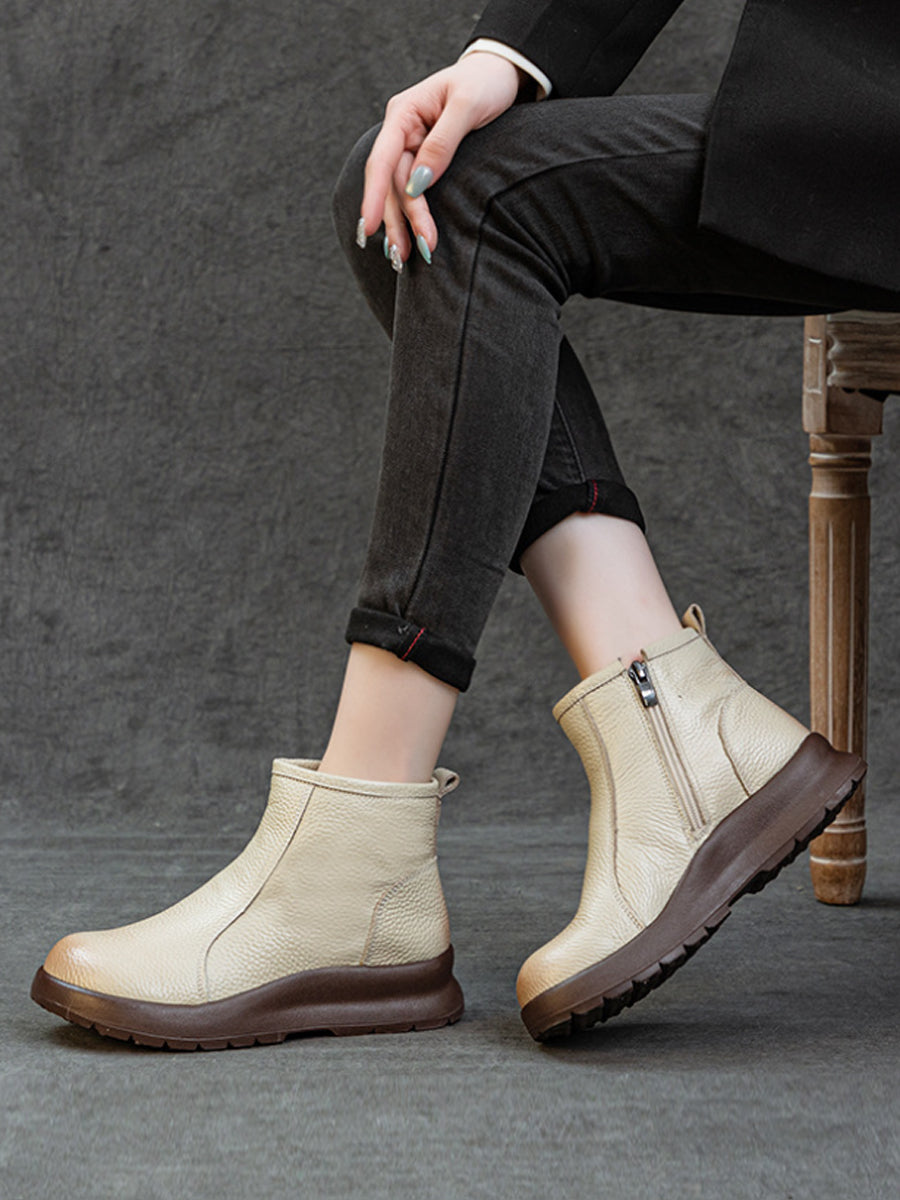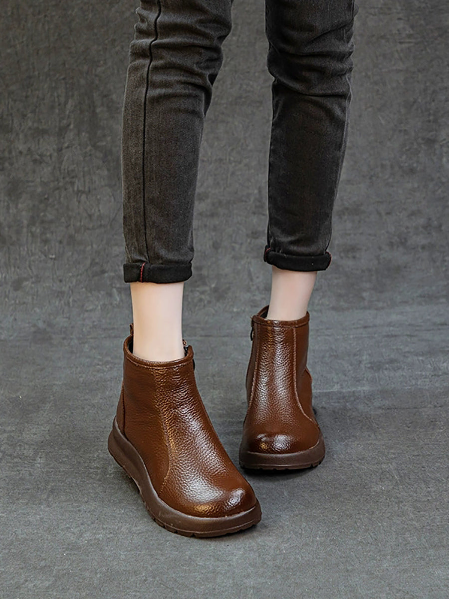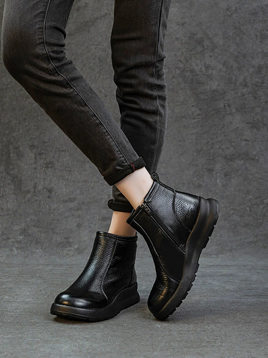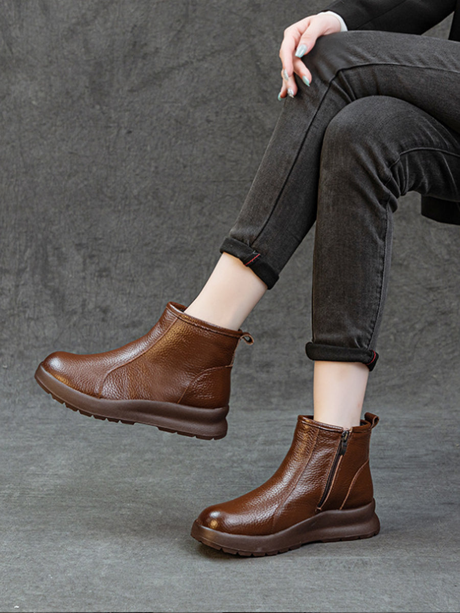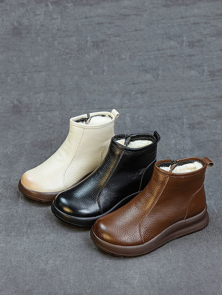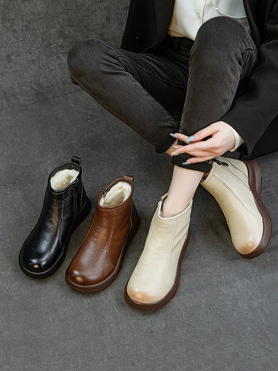 حذاء نسائي شتوي مبطن بالصوف من الجلد الطبيعي