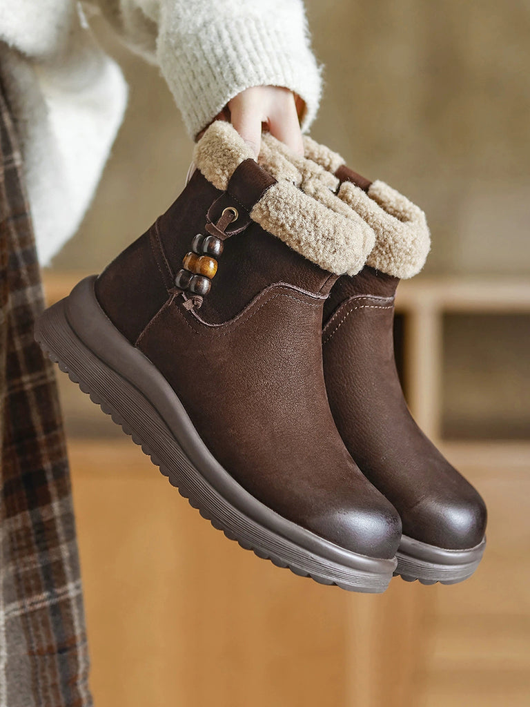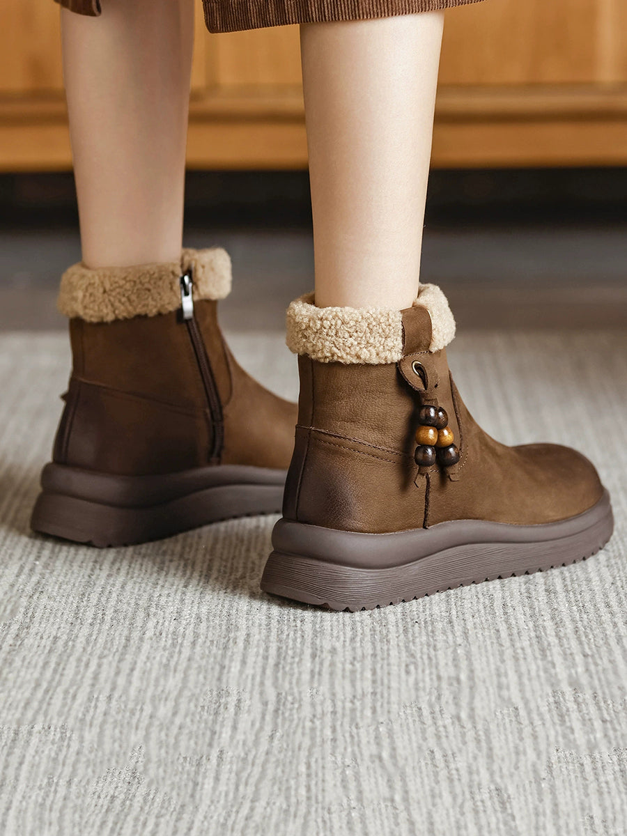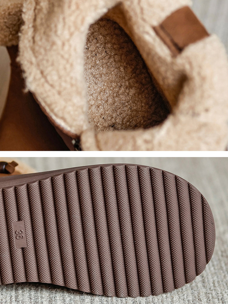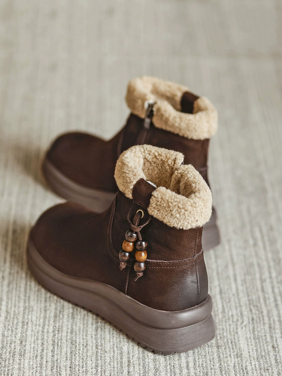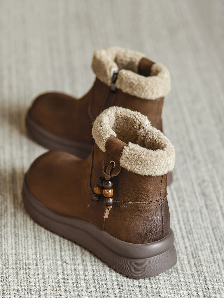 حذاء نسائي شتوي مبطن بالصوف من الجلد الطبيعي