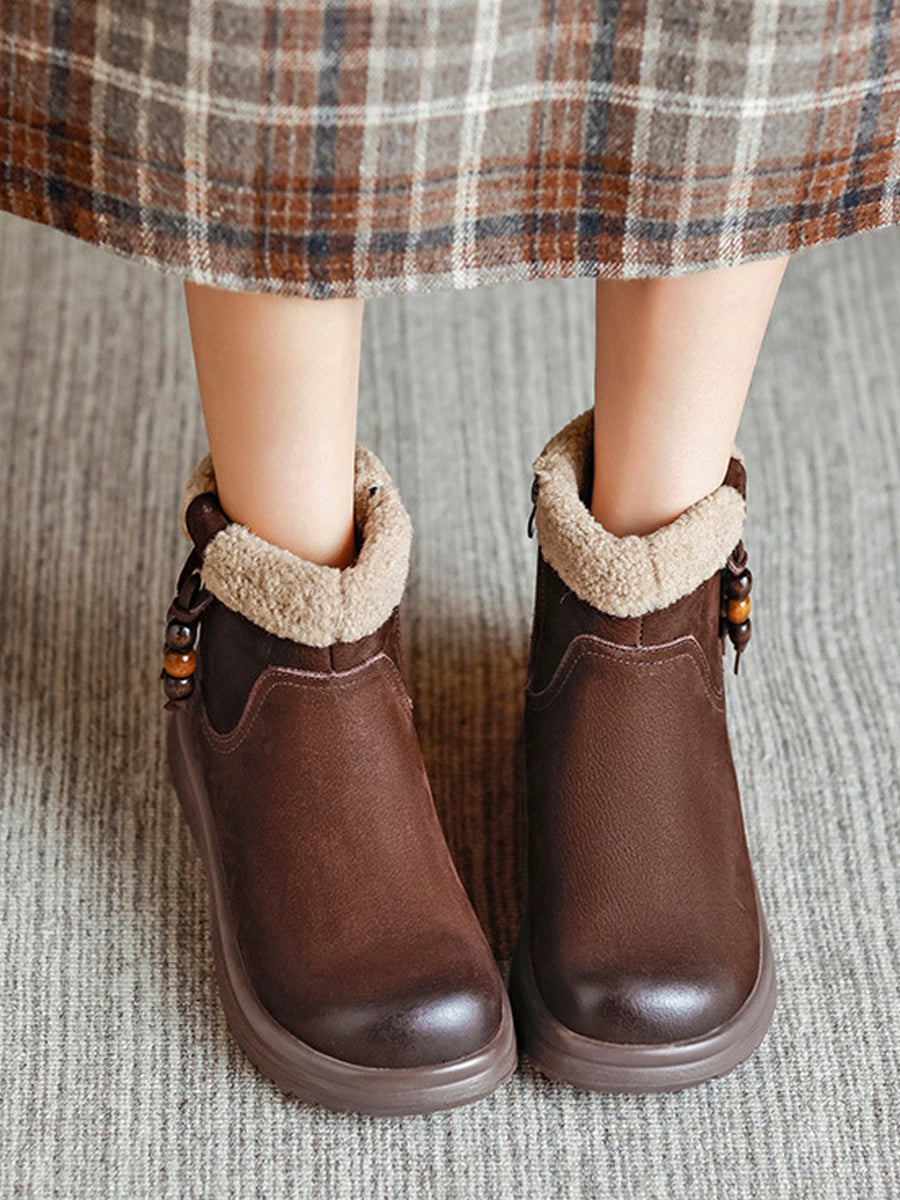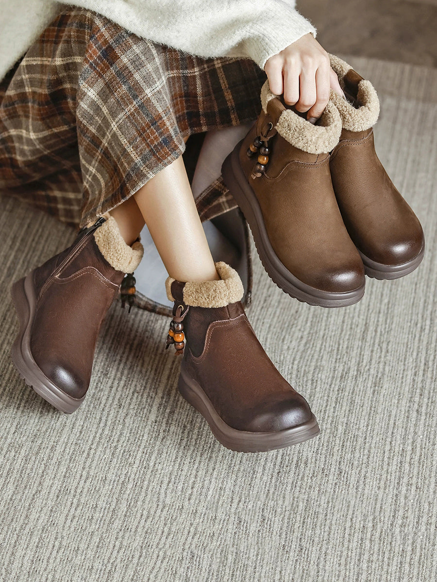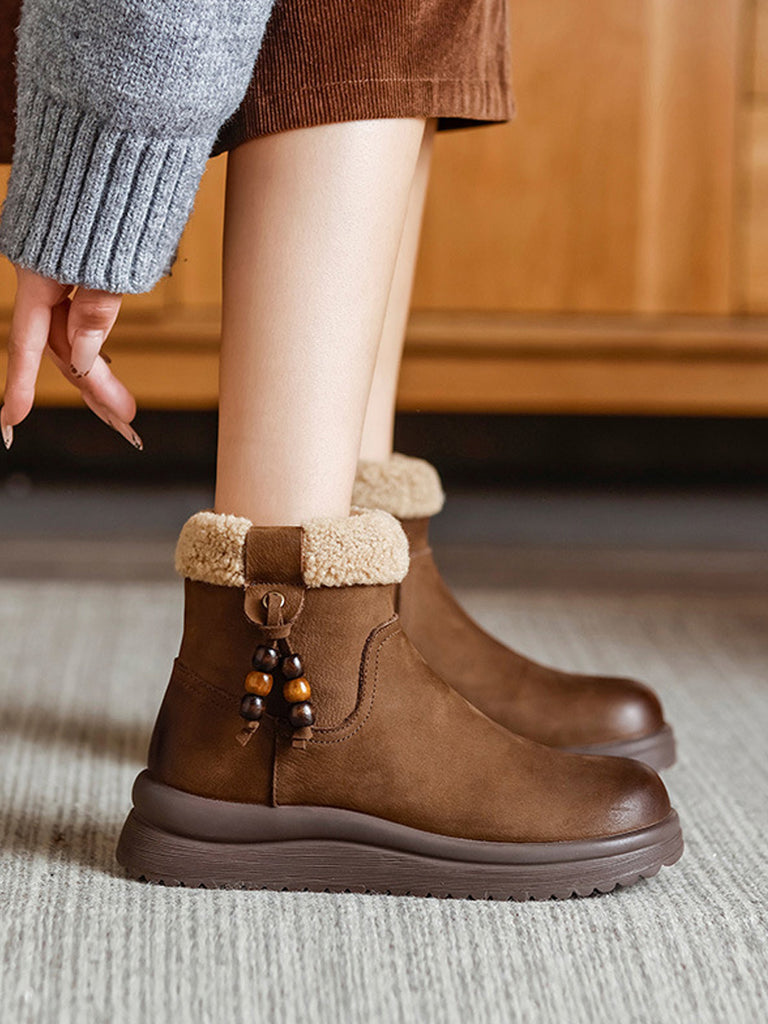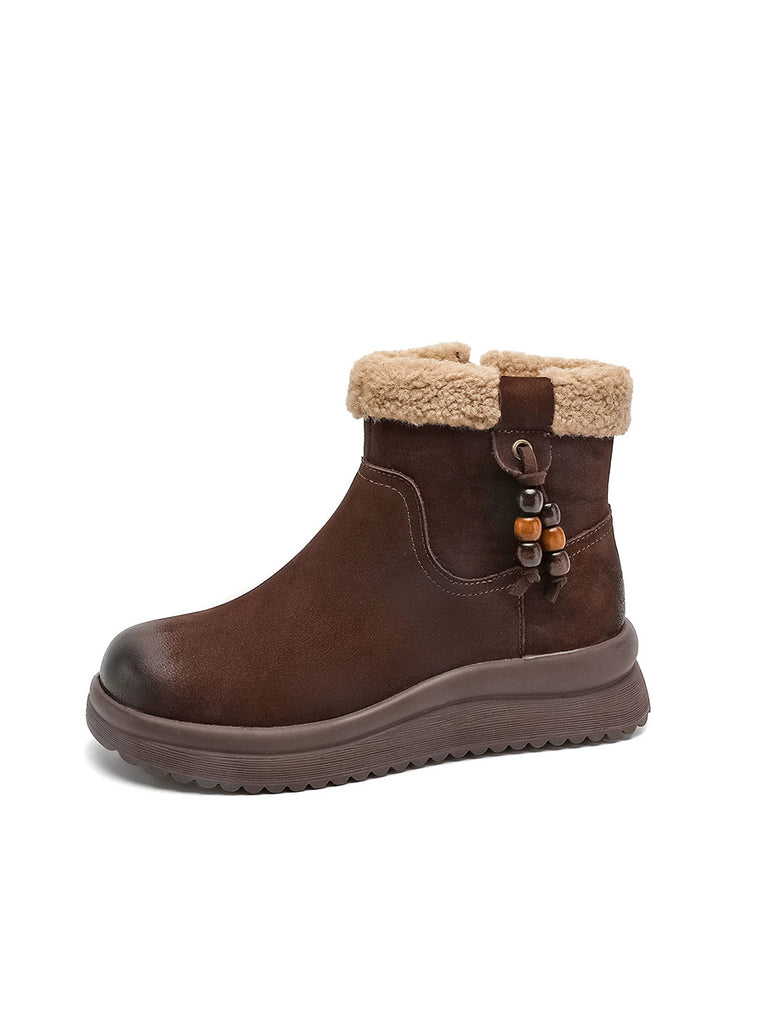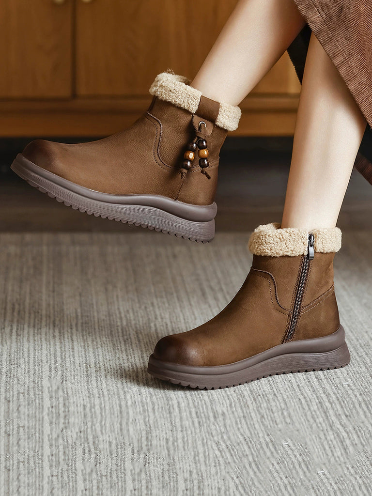 حذاء نسائي شتوي مبطن بالصوف من الجلد الطبيعي