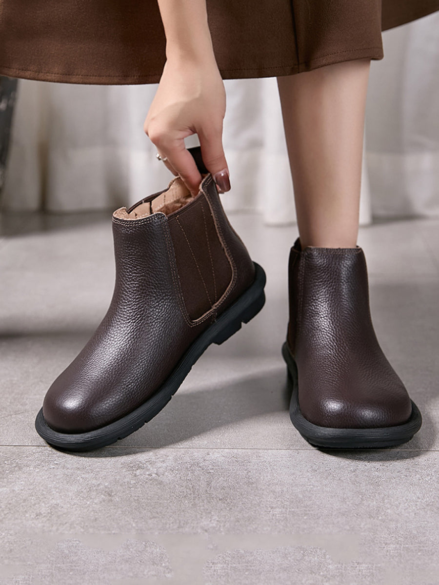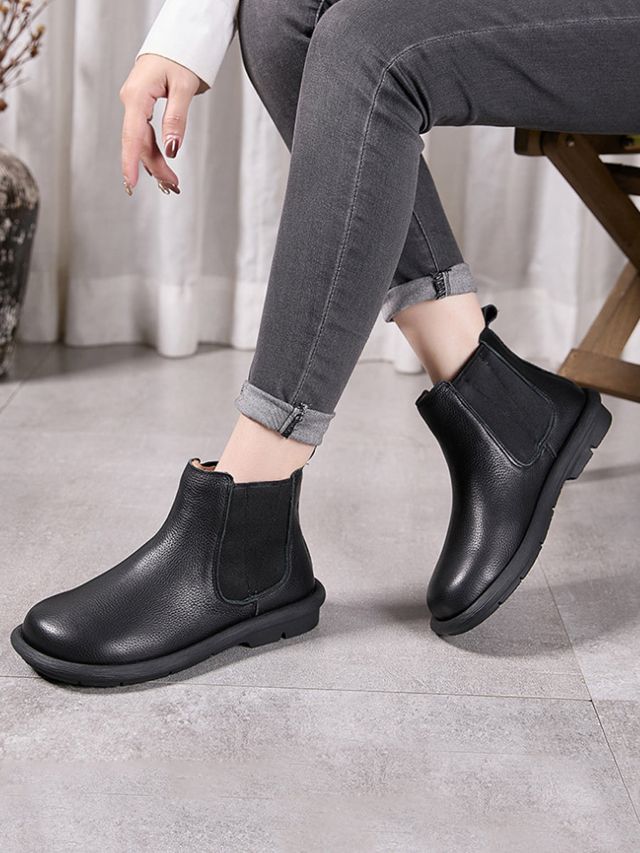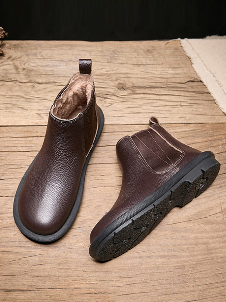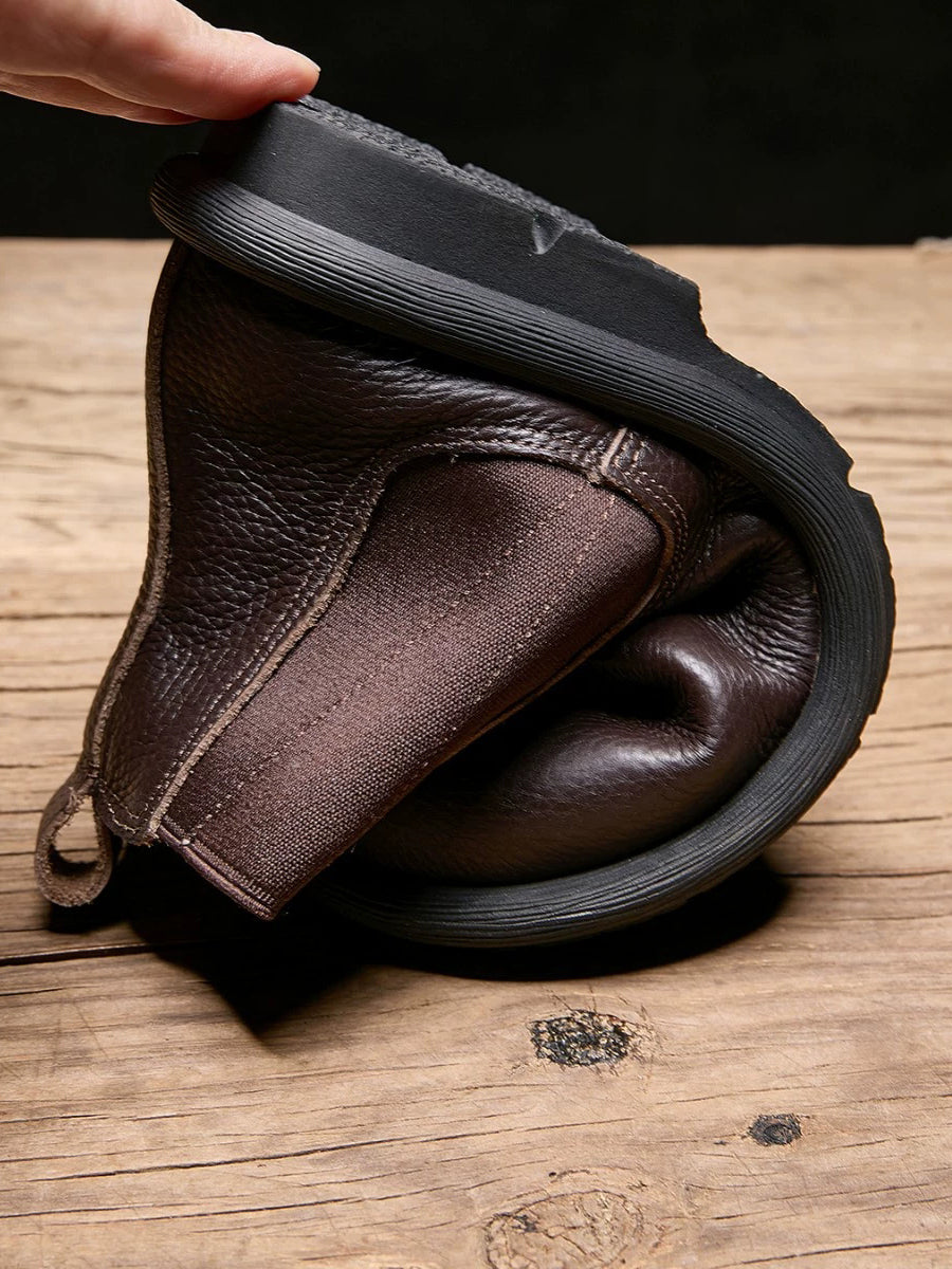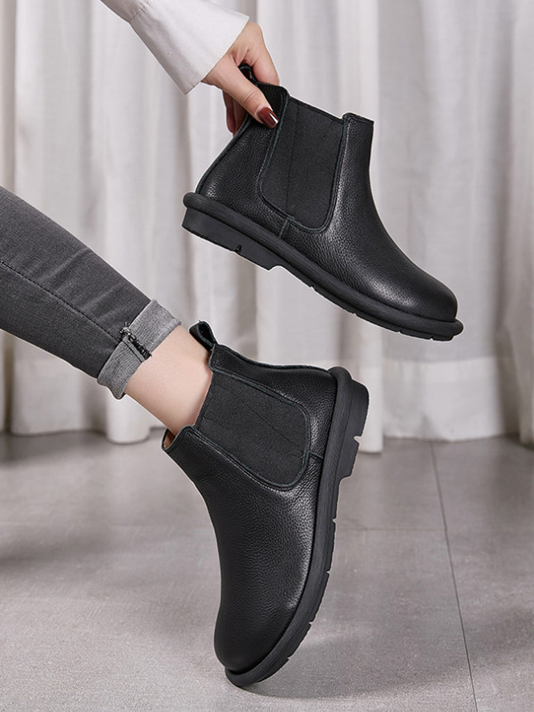 حذاء تشيلسي نسائي شتوي مبطن بالصوف من الجلد الطبيعي
