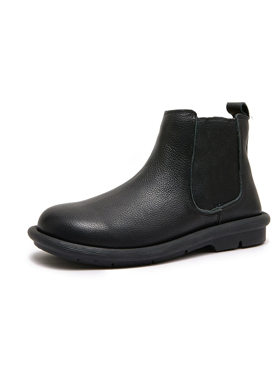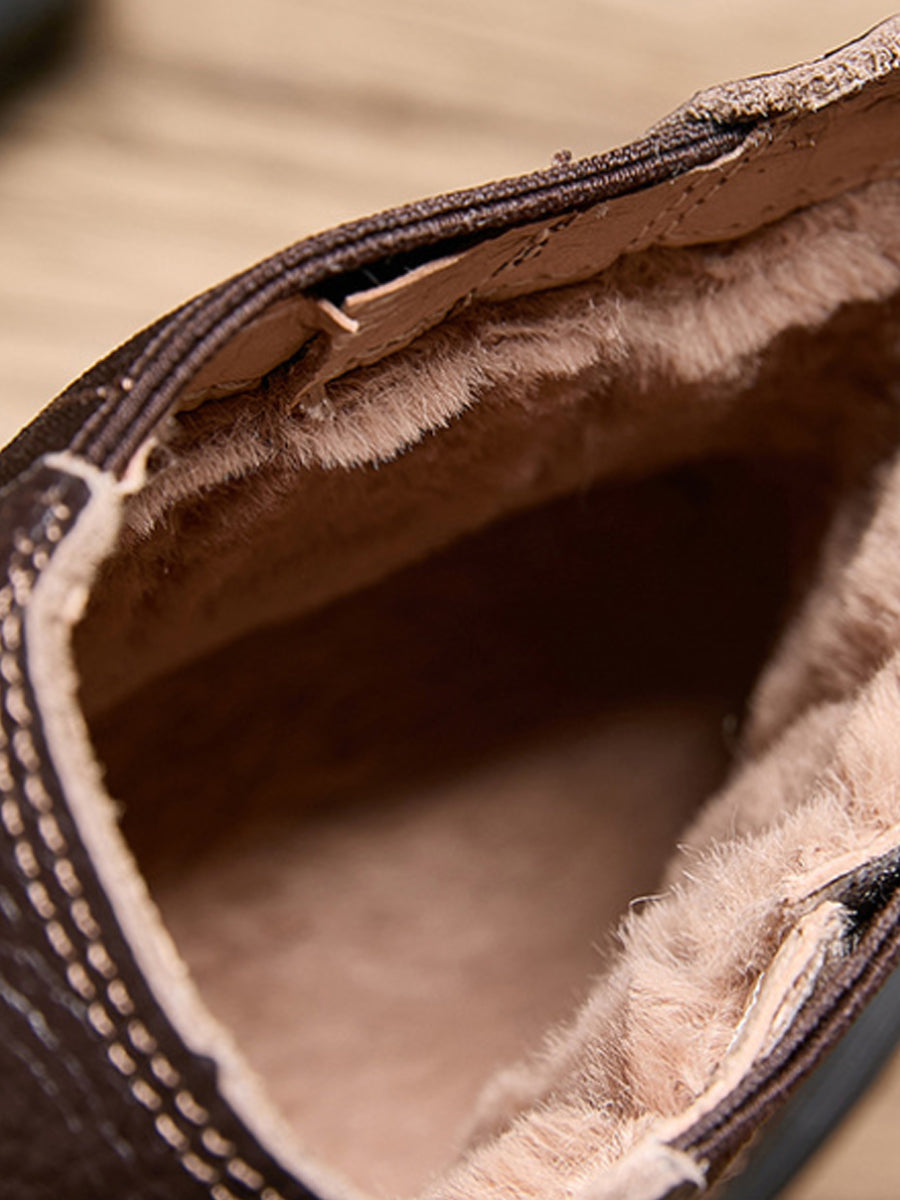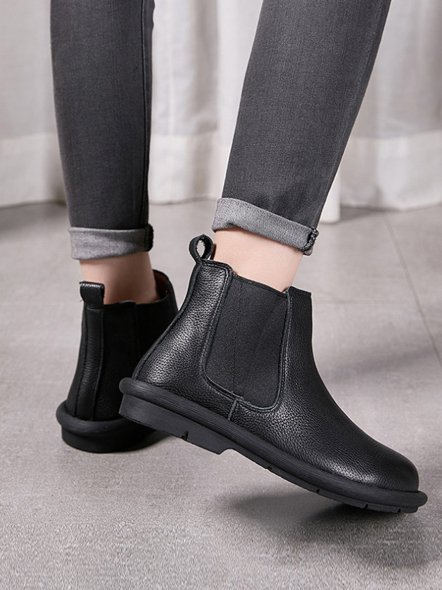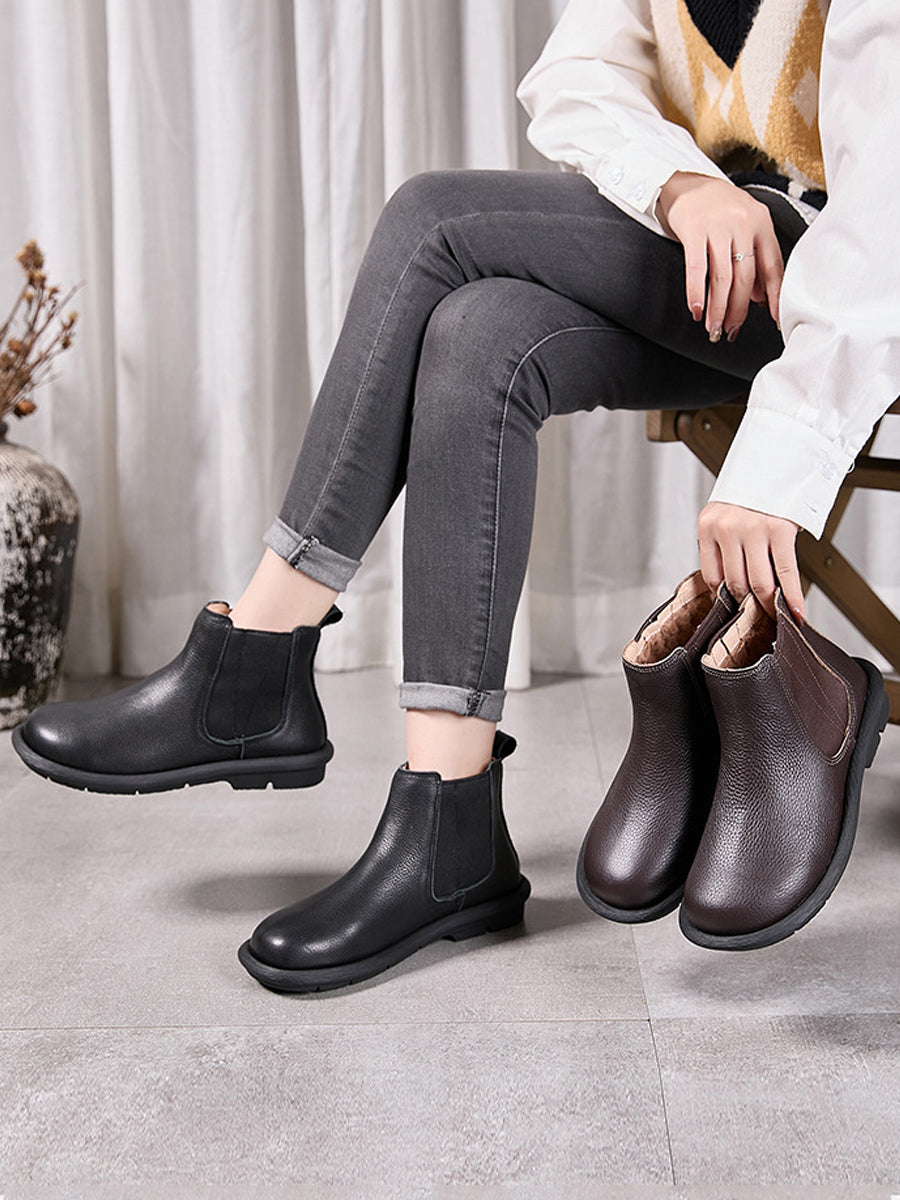 حذاء تشيلسي نسائي شتوي مبطن بالصوف من الجلد الطبيعي