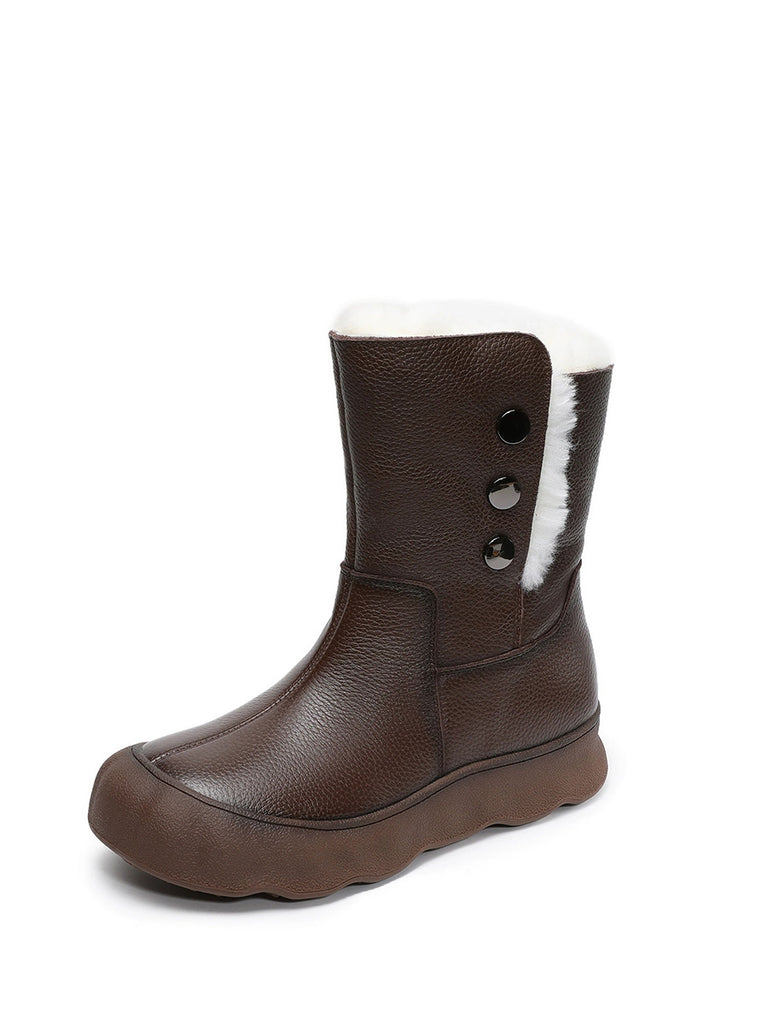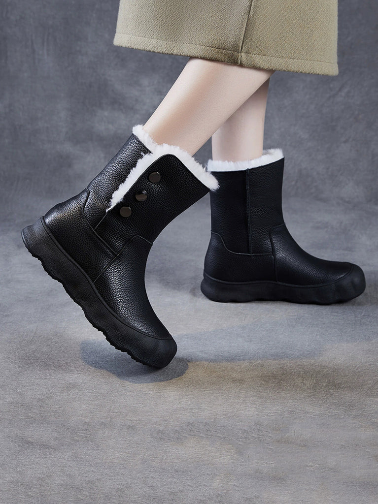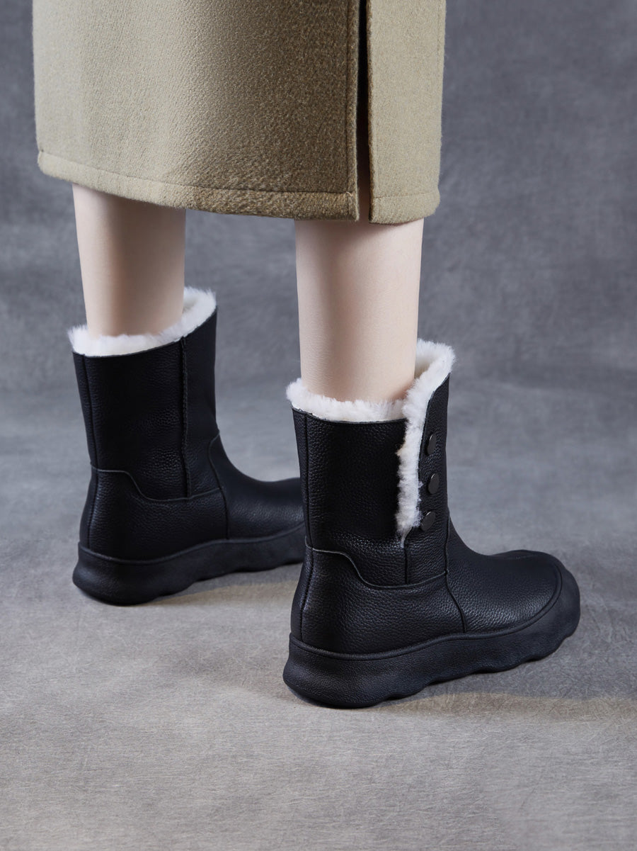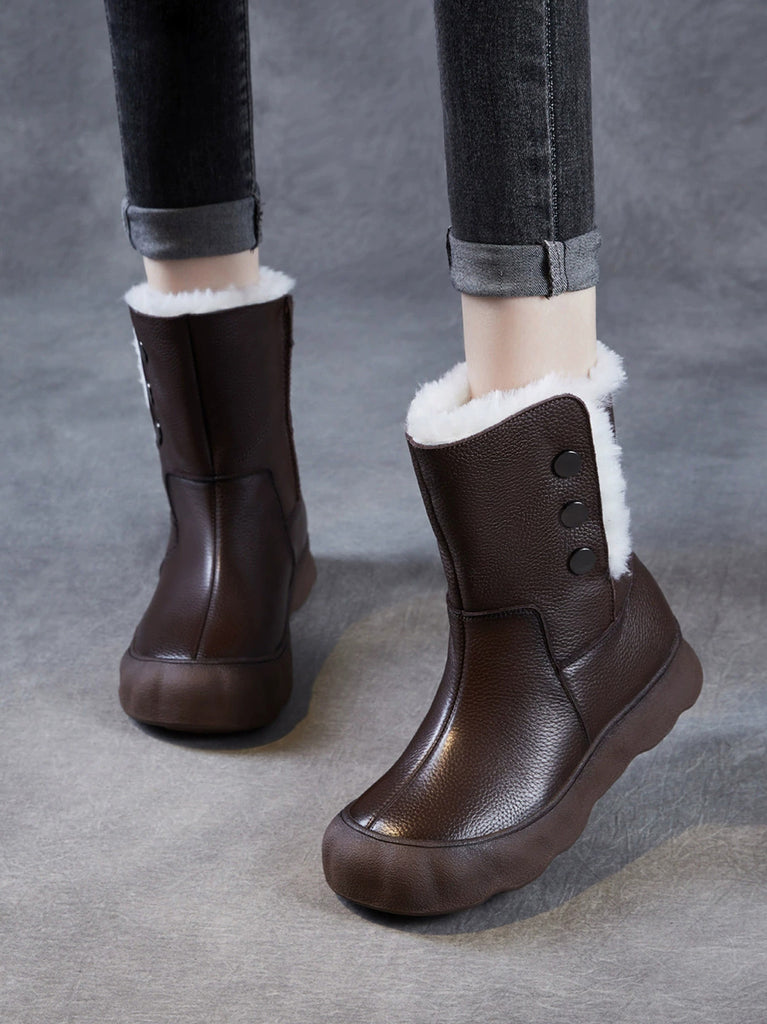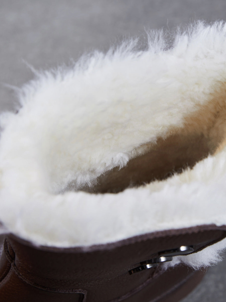 حذاء نسائي شتوي بكعب متوسط مبطن بالصوف من الجلد الطبيعي