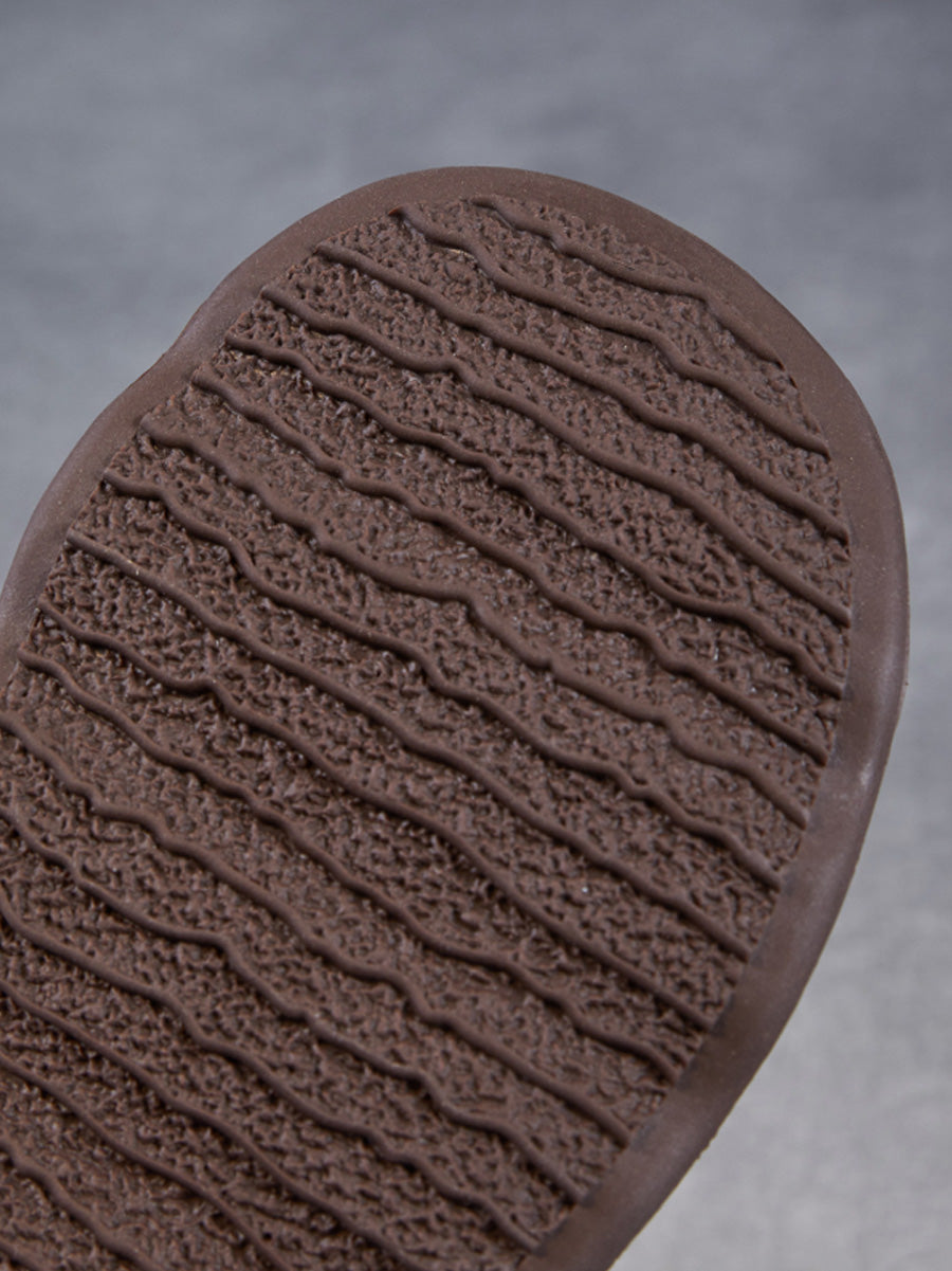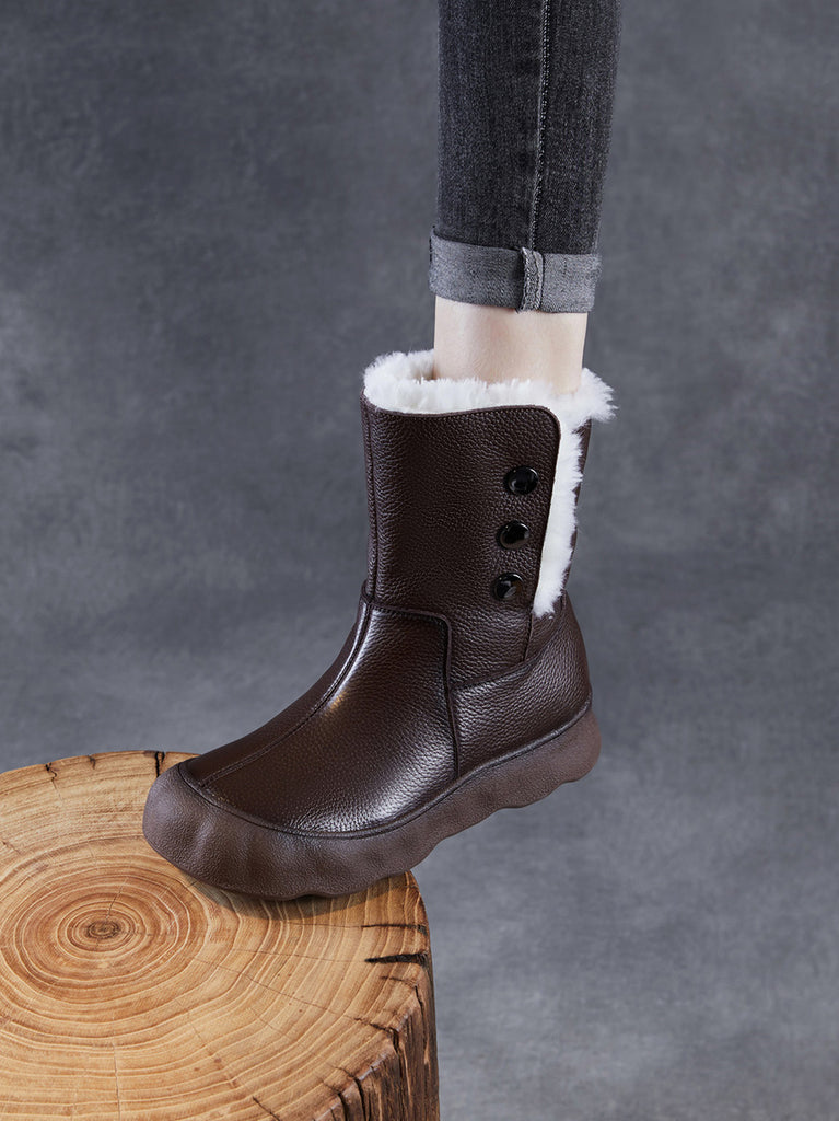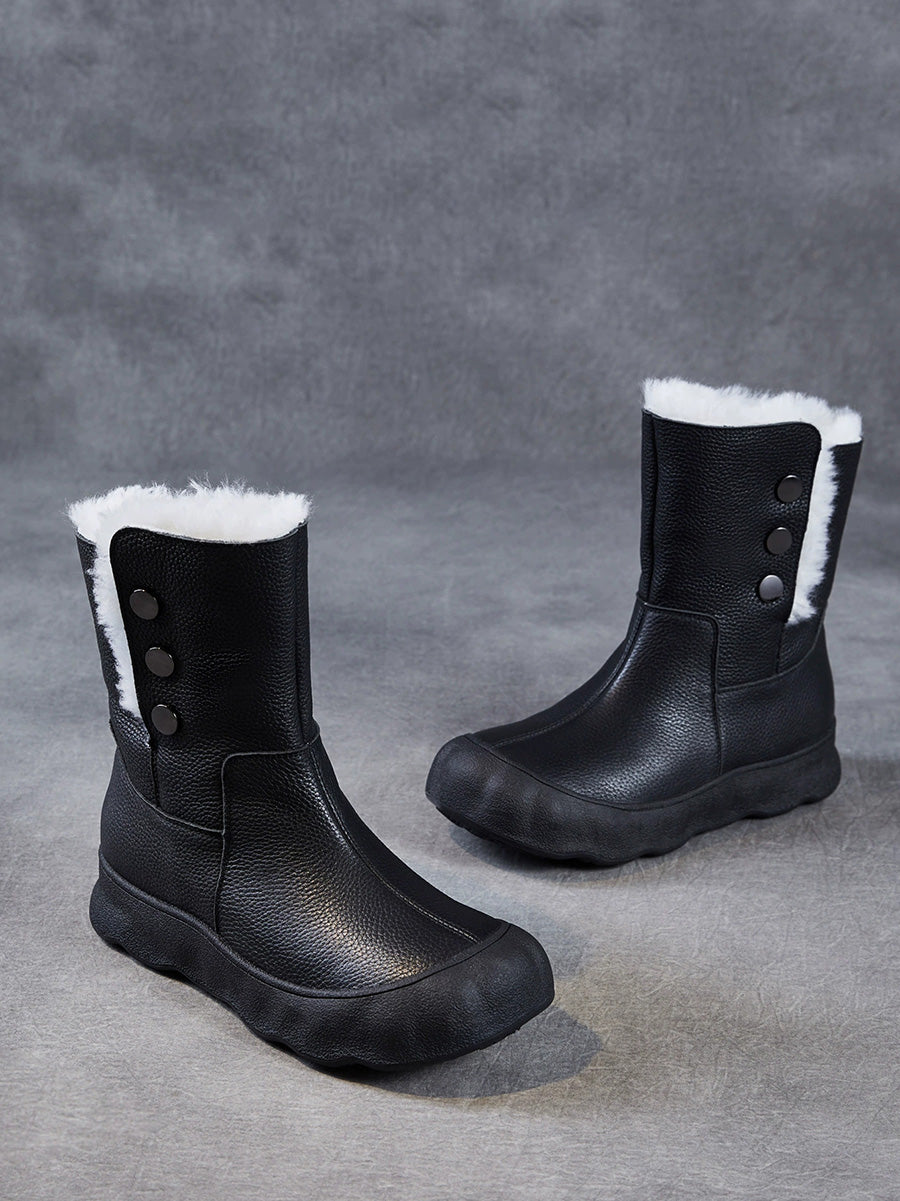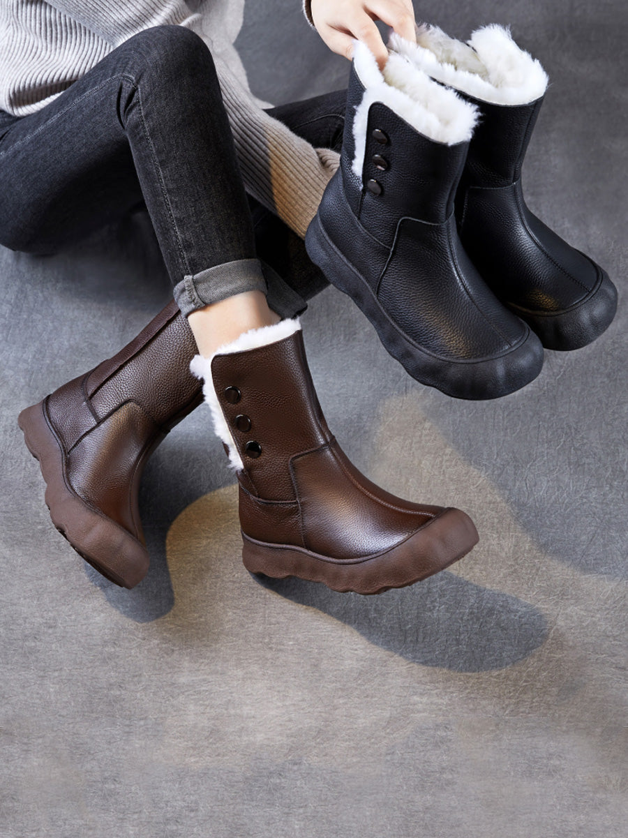 حذاء نسائي شتوي بكعب متوسط مبطن بالصوف من الجلد الطبيعي