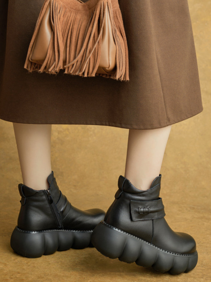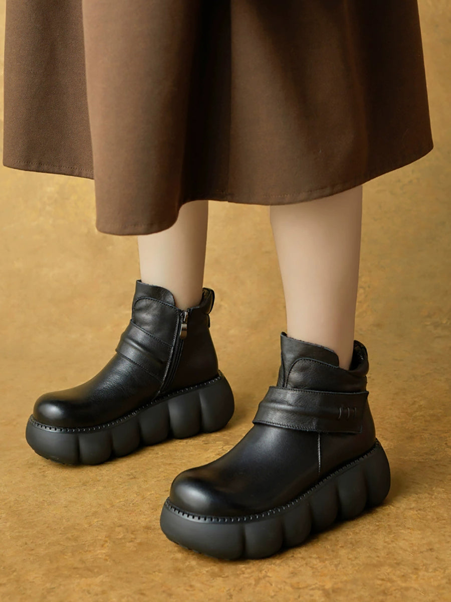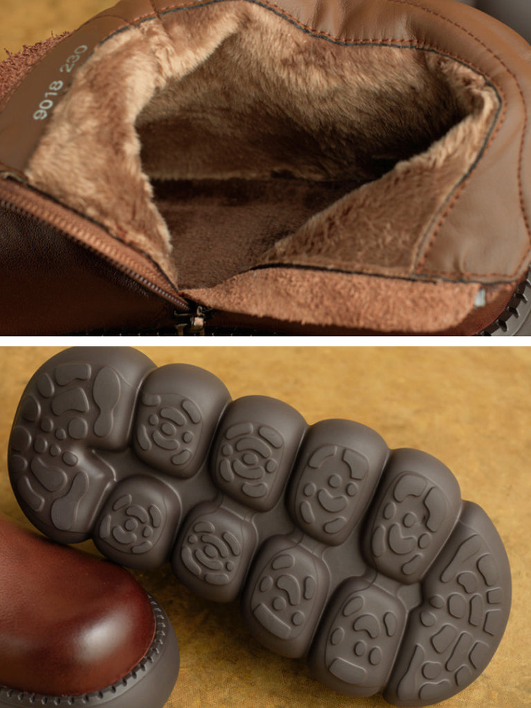 أحذية نسائية شتوية من الجلد الطبيعي مبطنة بالصوف