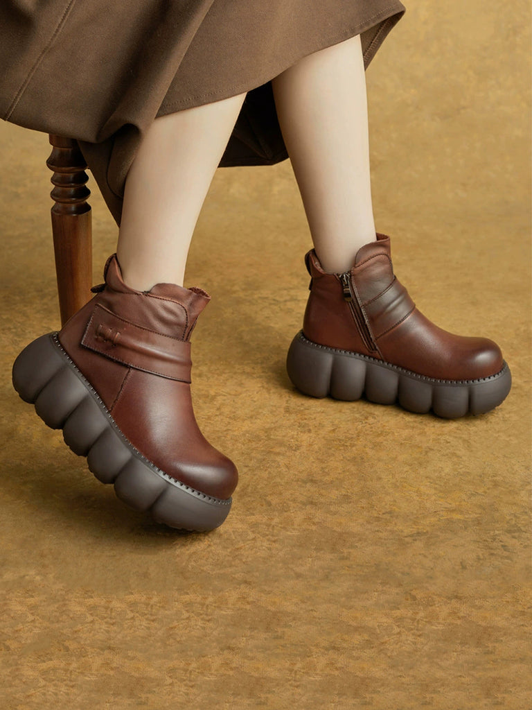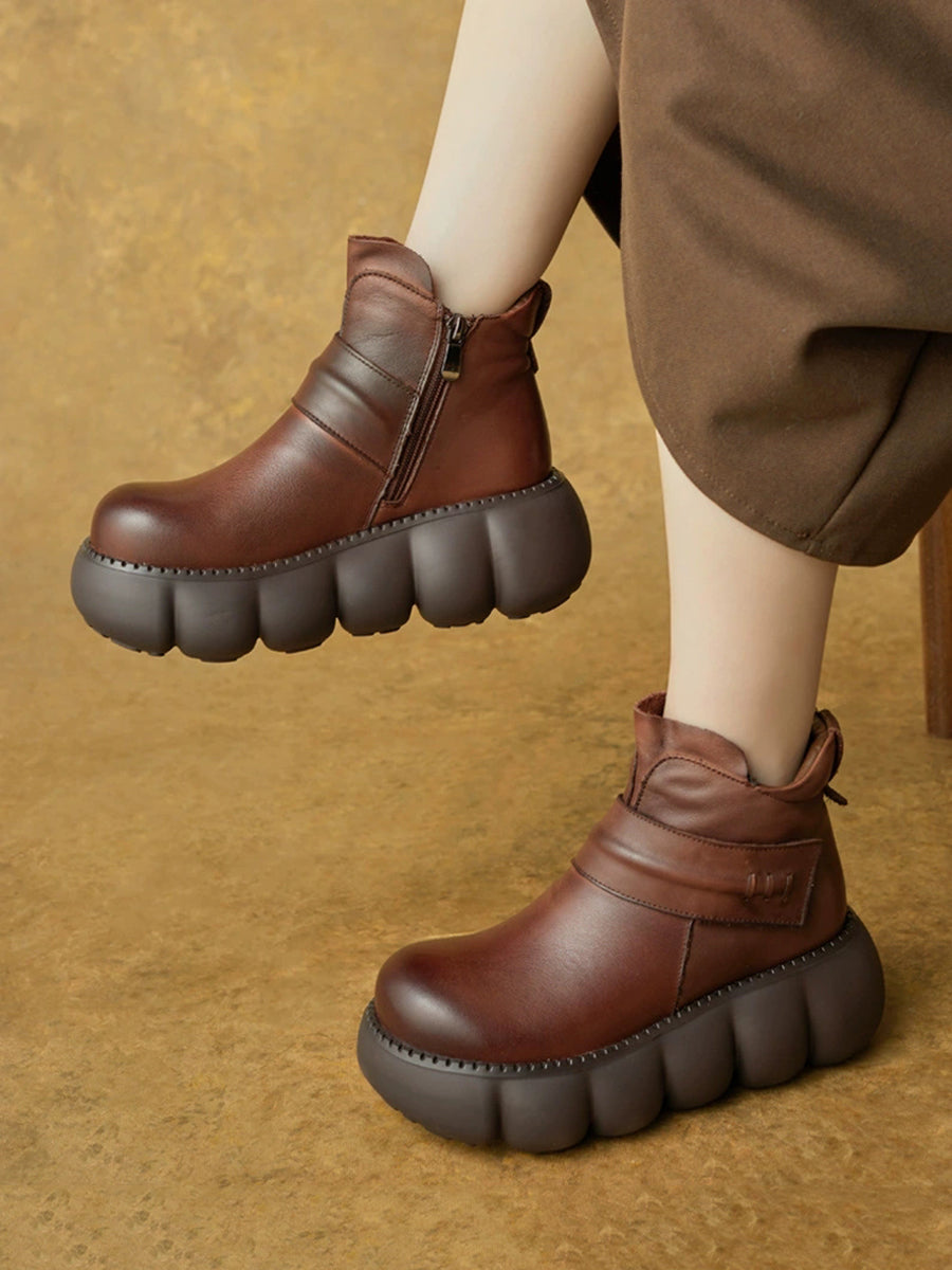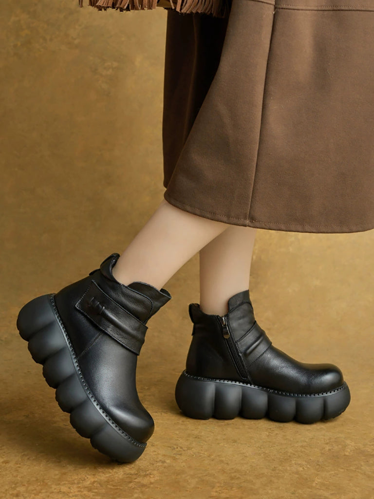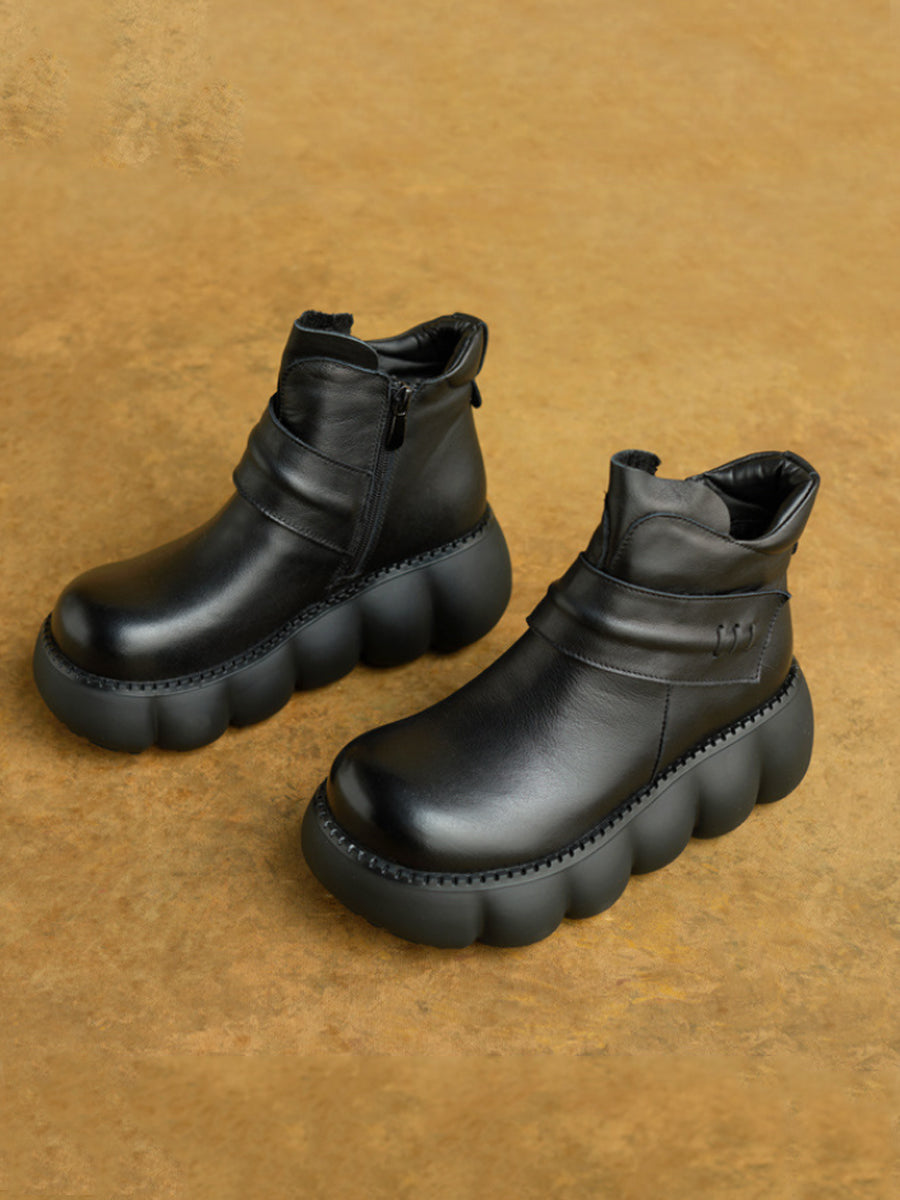 أحذية نسائية شتوية من الجلد الطبيعي مبطنة بالصوف