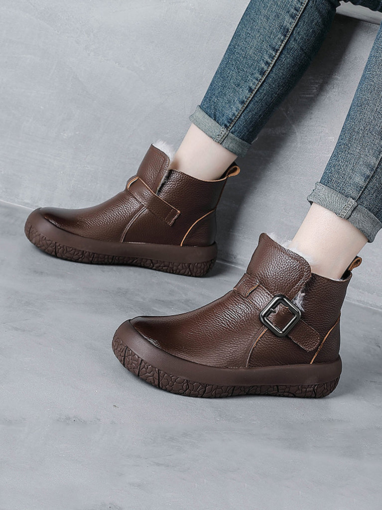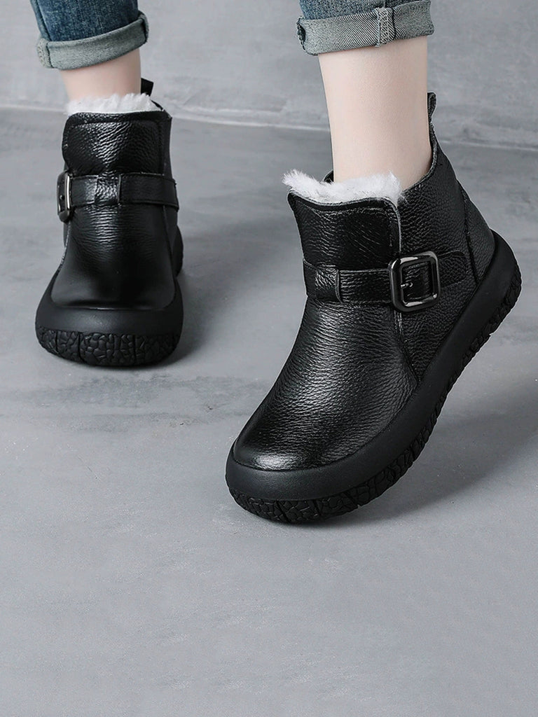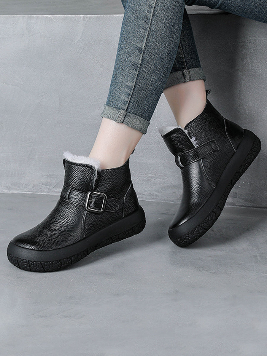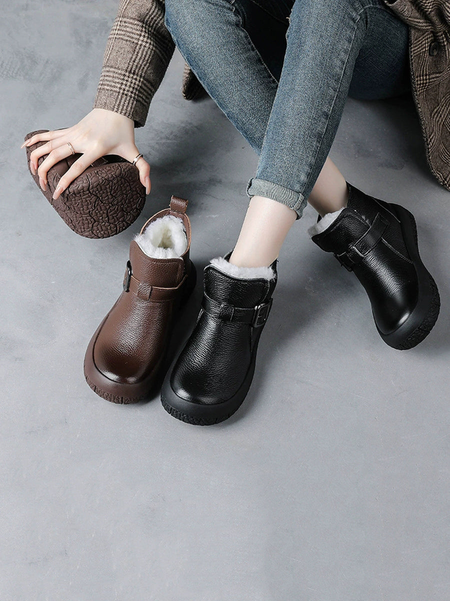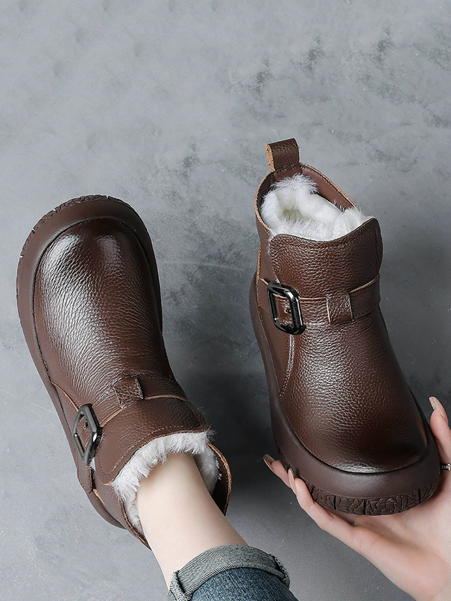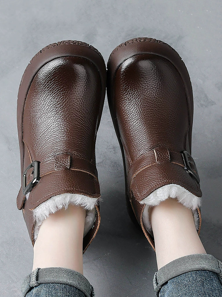 أحذية نسائية شتوية من الجلد الطبيعي مبطنة بالصوف