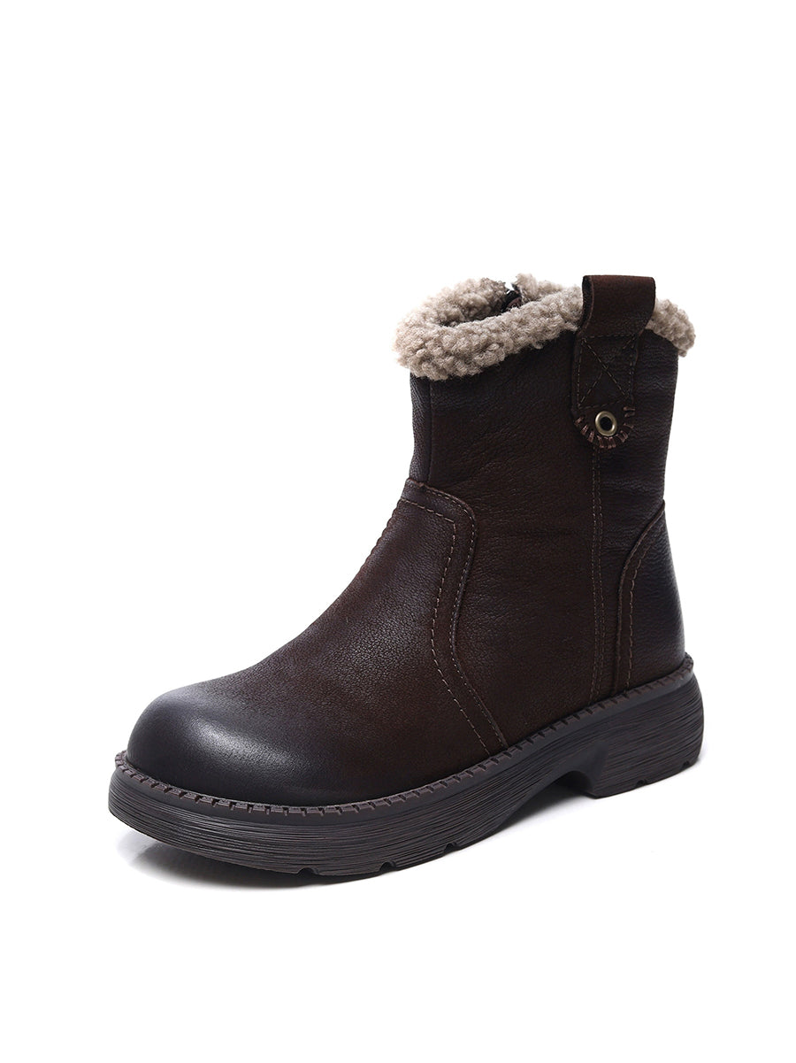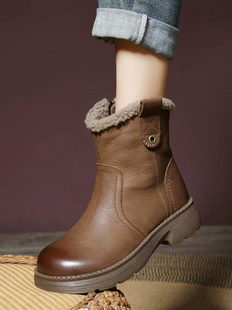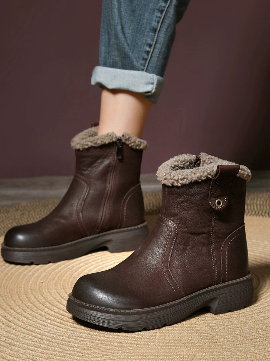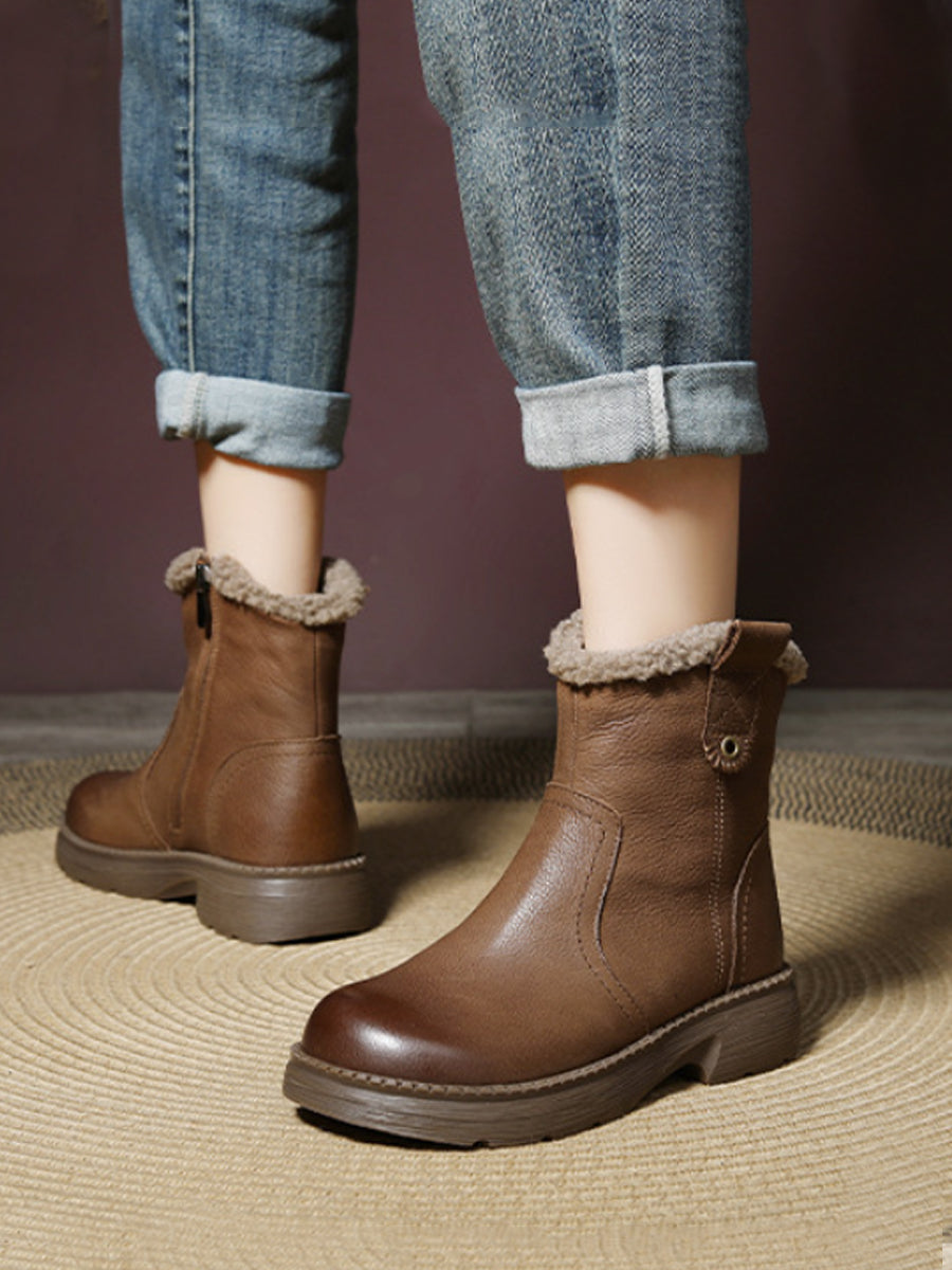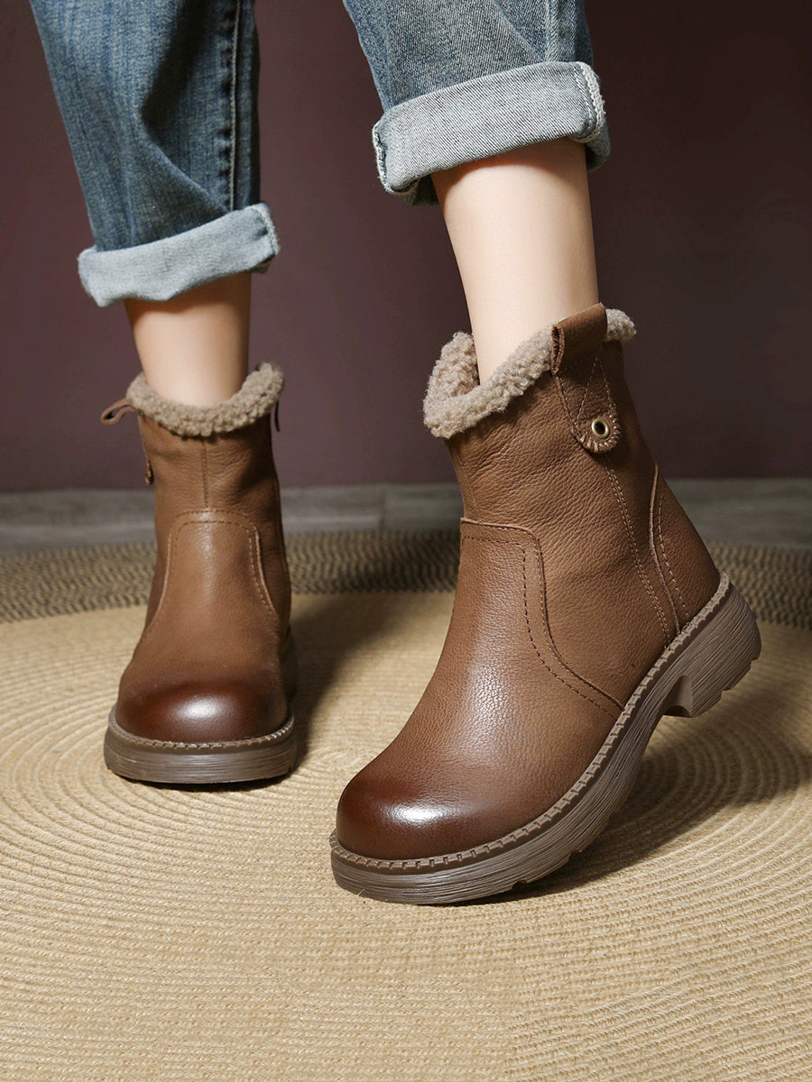 حذاء نسائي شتوي من الجلد الطبيعي بلون نقي مبطن بالصوف