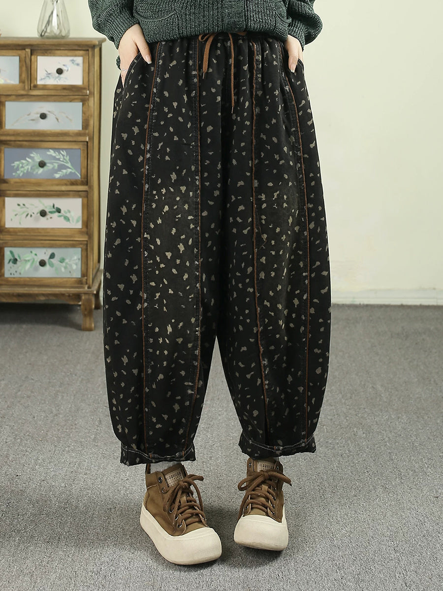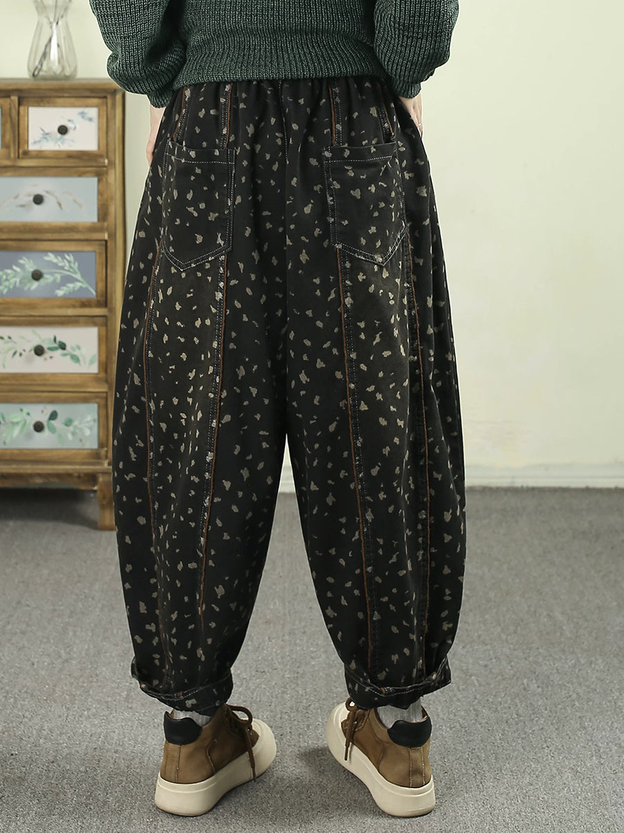 بنطلون نسائي ربيعي عتيق من الدنيم بنقشة جلد النمر، واسع من الأسفل