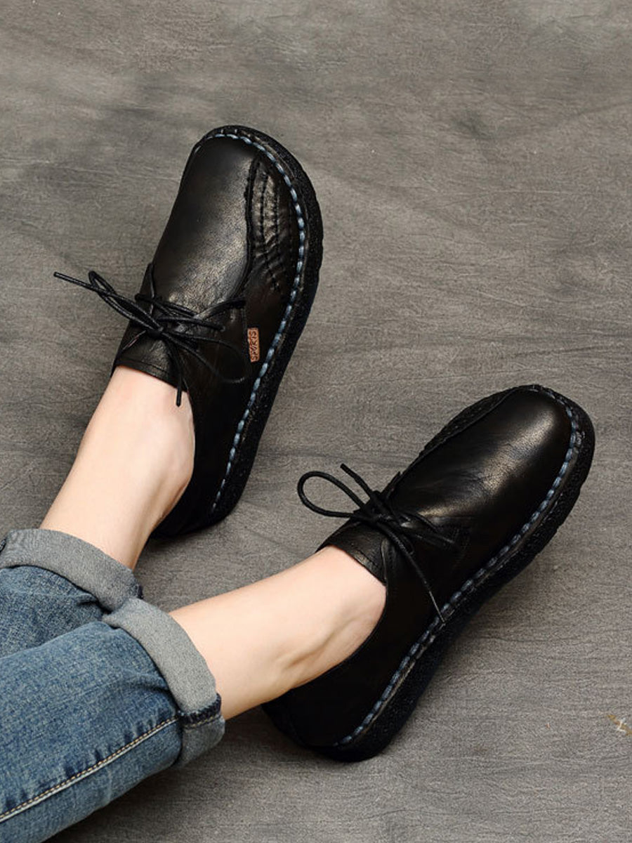 حذاء مسطح نسائي صيفي بتصميم كلاسيكي من الجلد الطبيعي