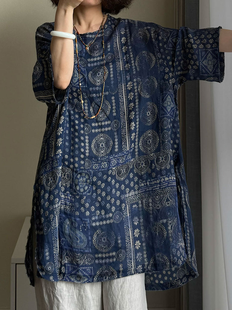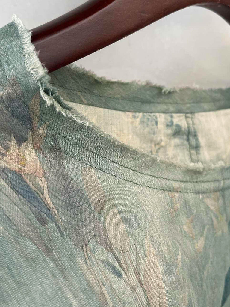 قميص نسائي صيفي عتيق برقبة دائرية من الرايم 100%