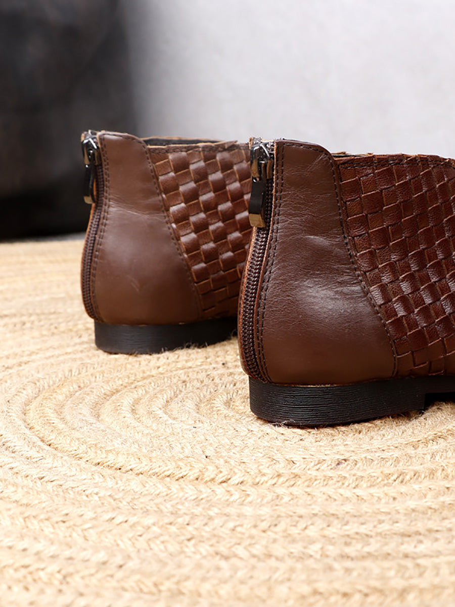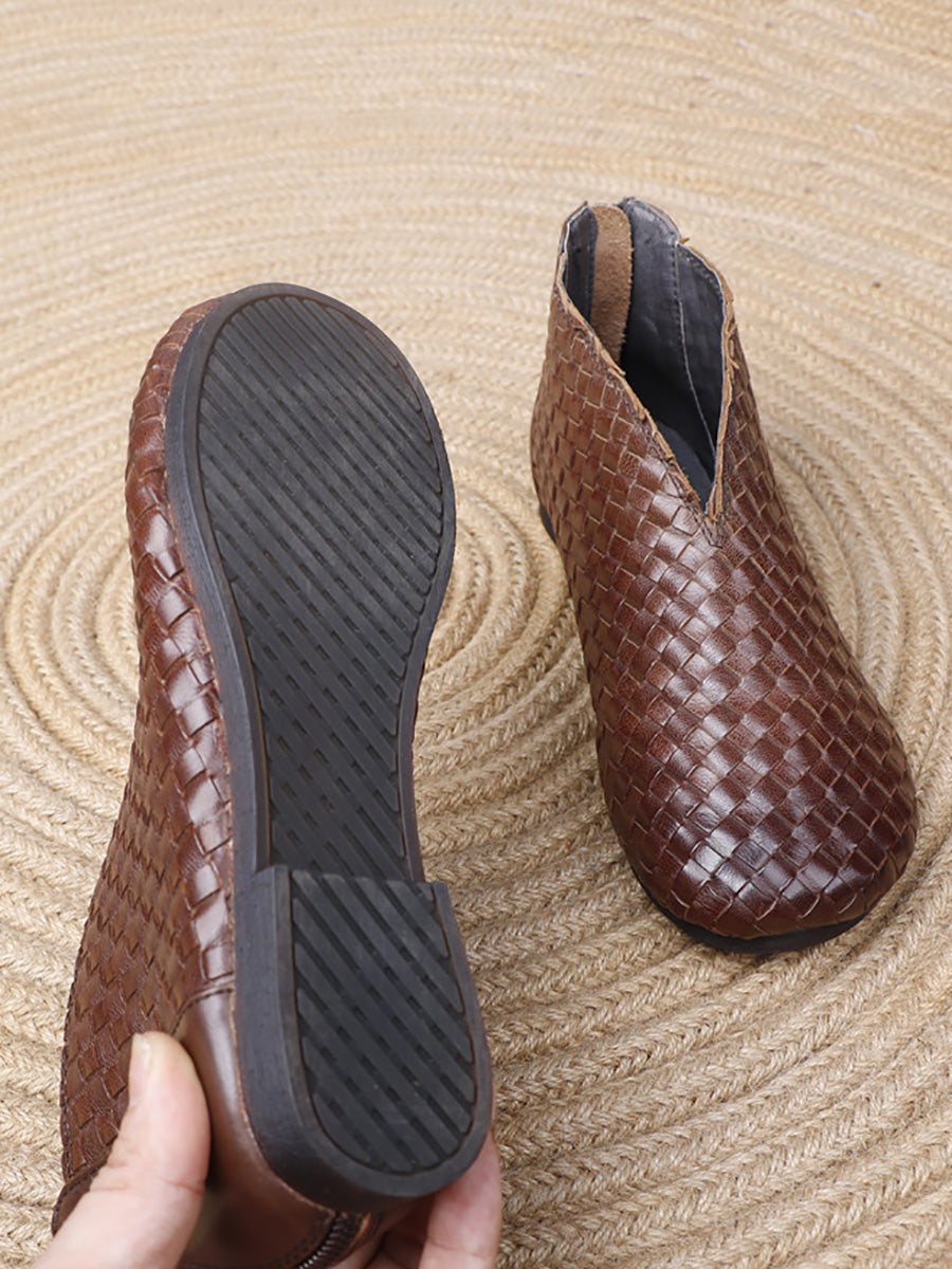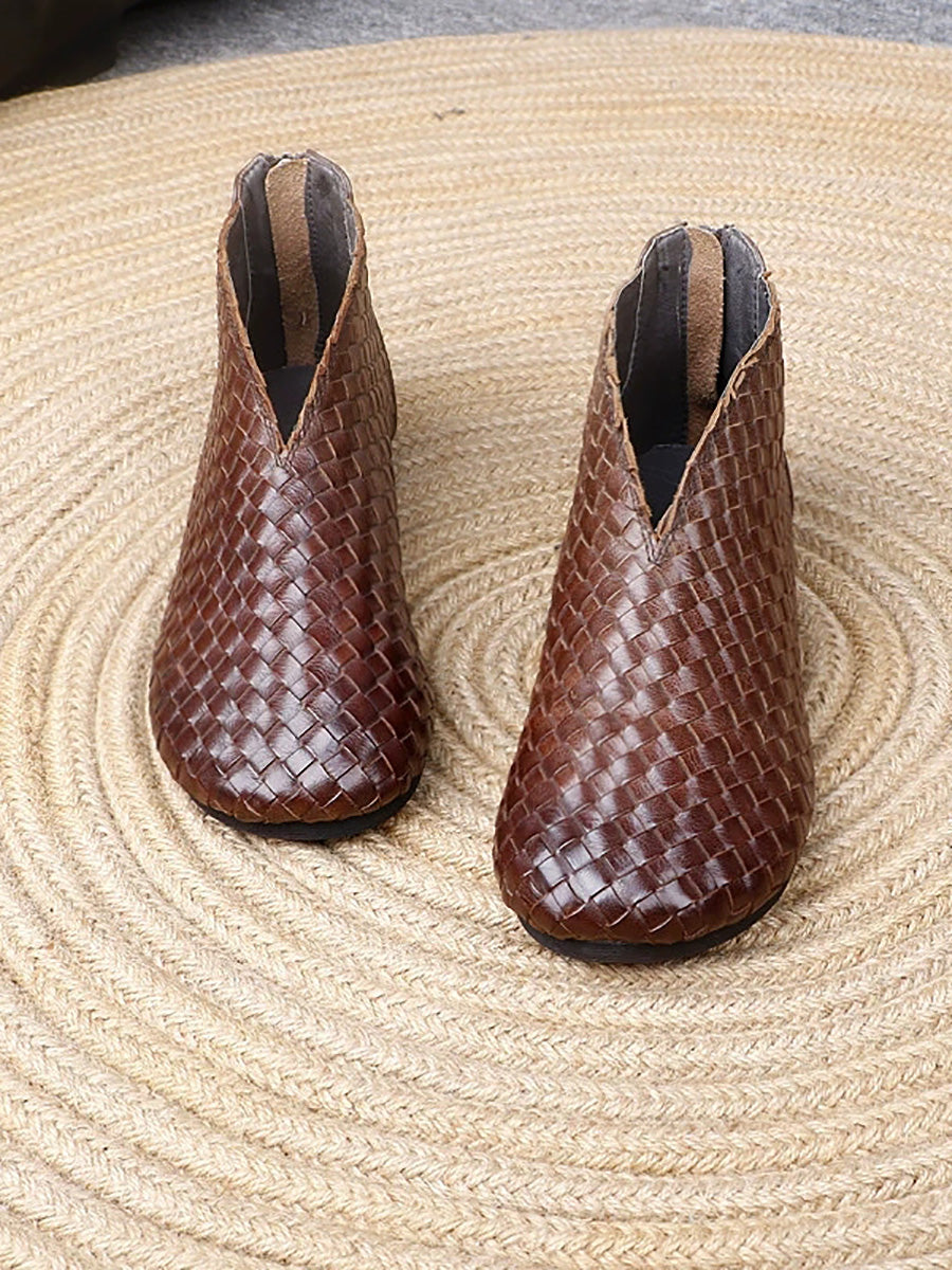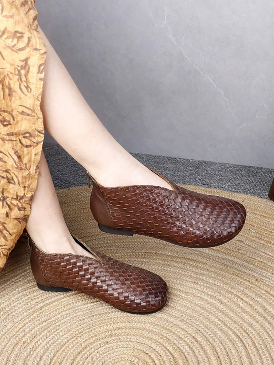 أحذية نسائية مسطحة عتيقة من الجلد الطبيعي المنسوج