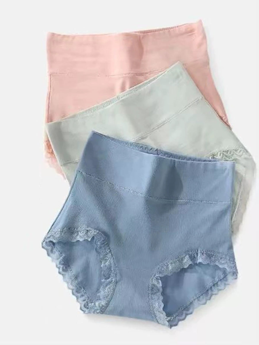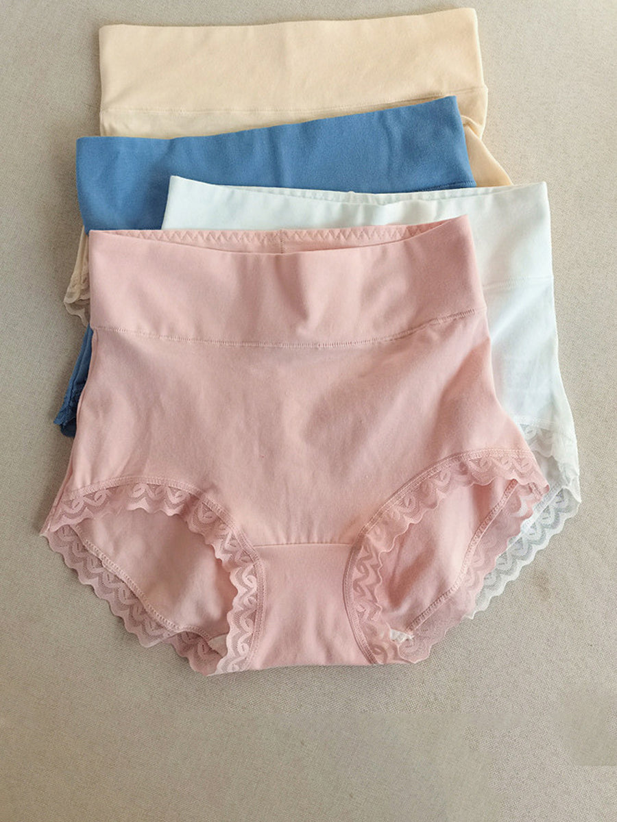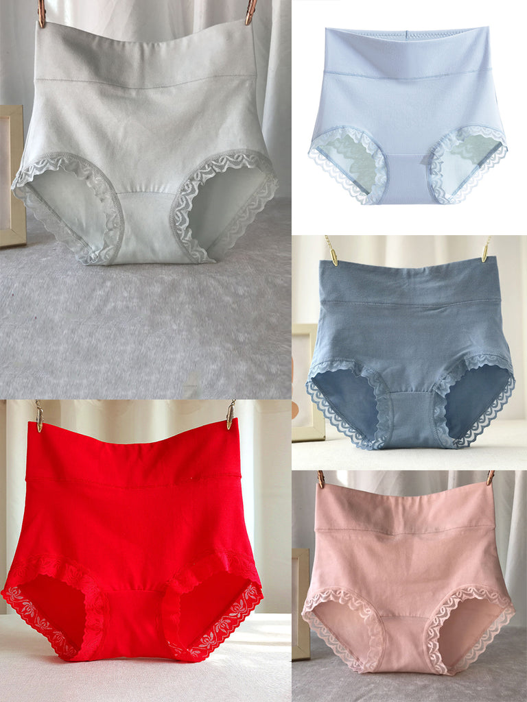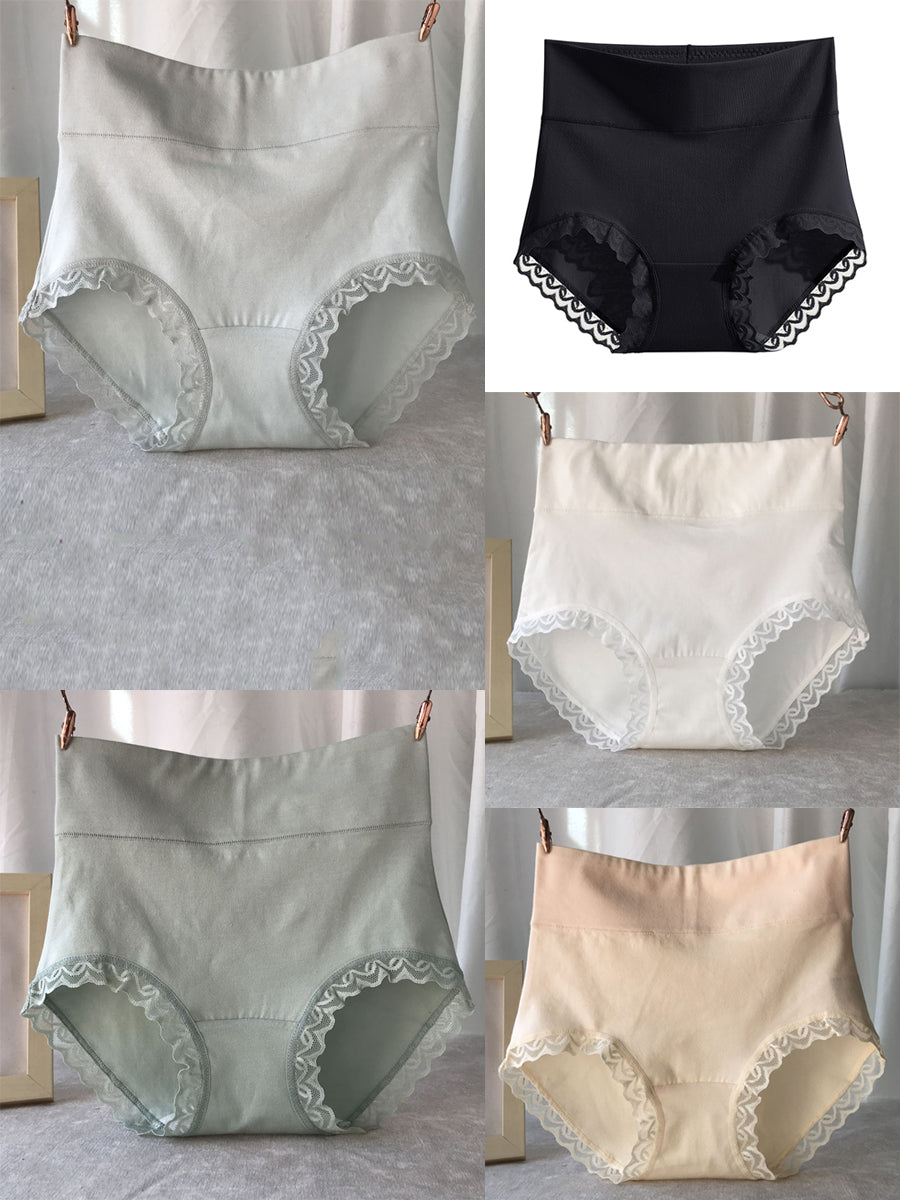 5 قطع ملابس داخلية نسائية كاجوال بلون نقي بخصر عالٍ من الدانتيل