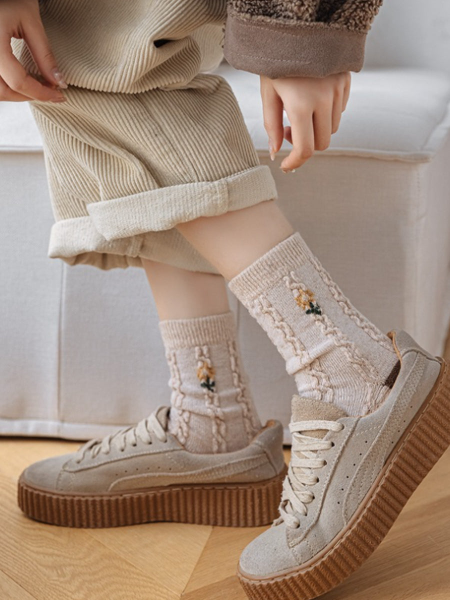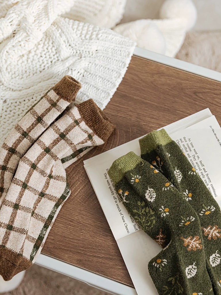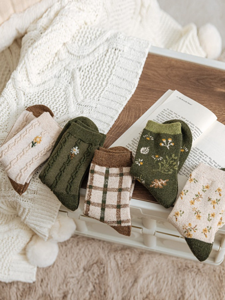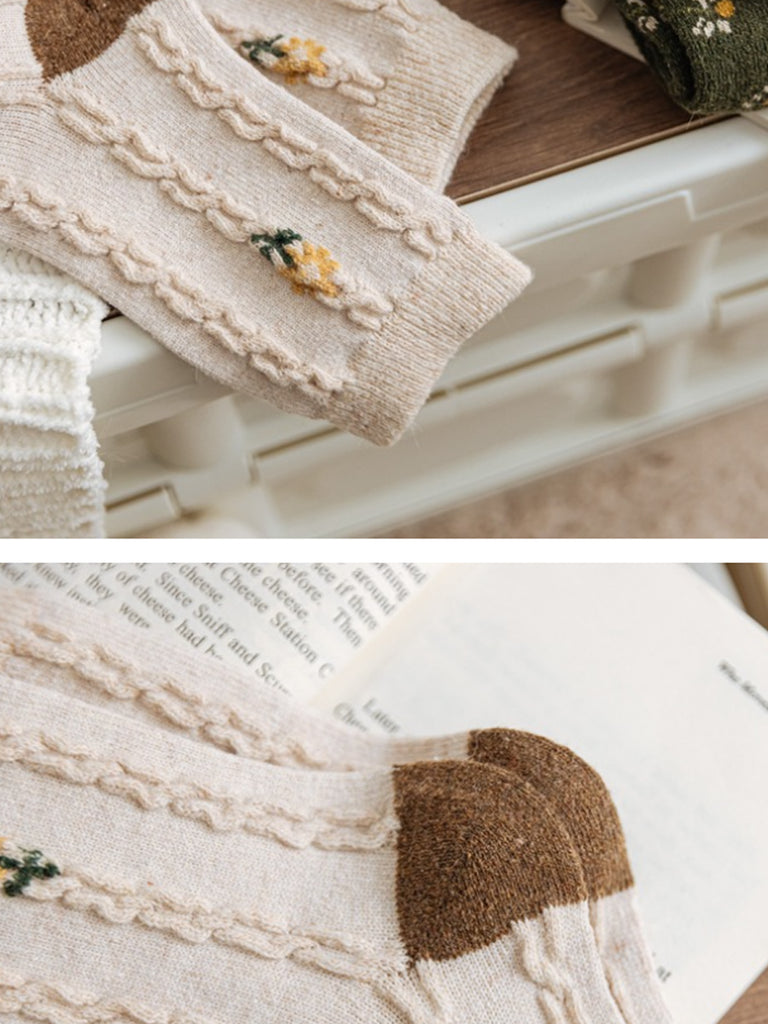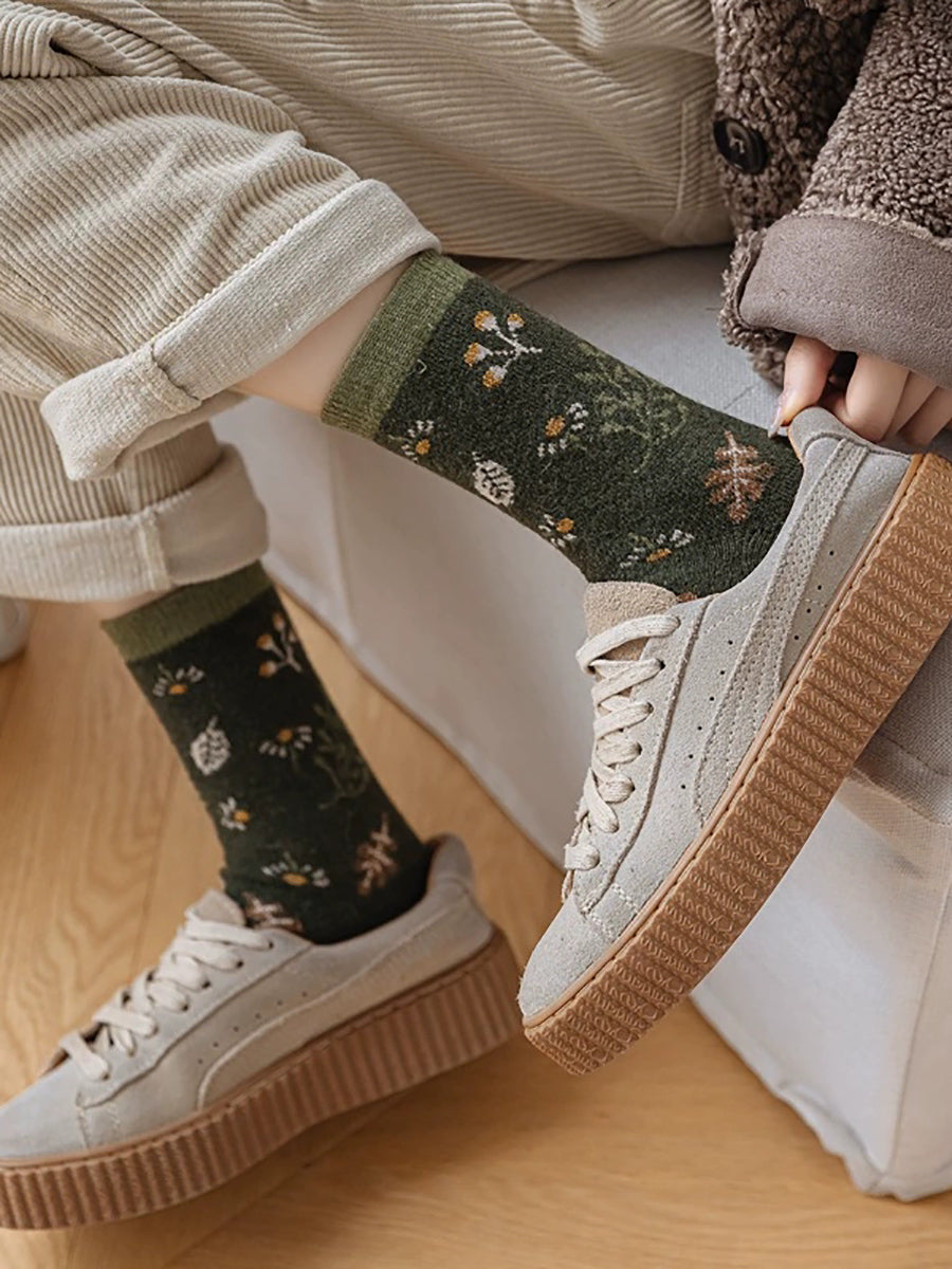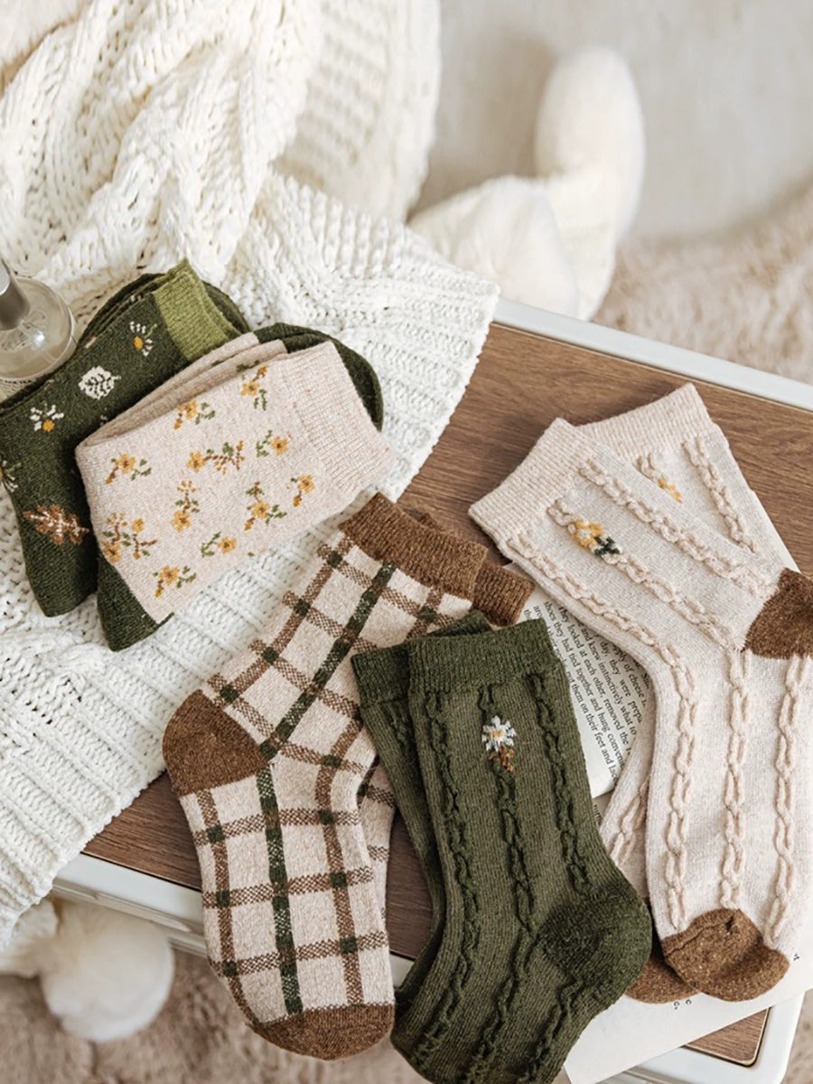 6 أزواج من الجوارب النسائية الشتوية المصنوعة من قماش الجاكار بنقشة الزهور