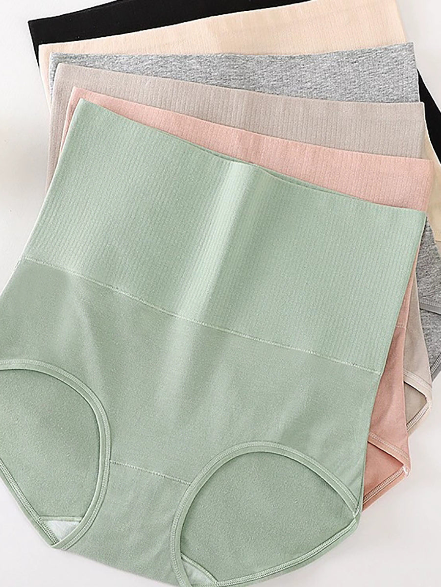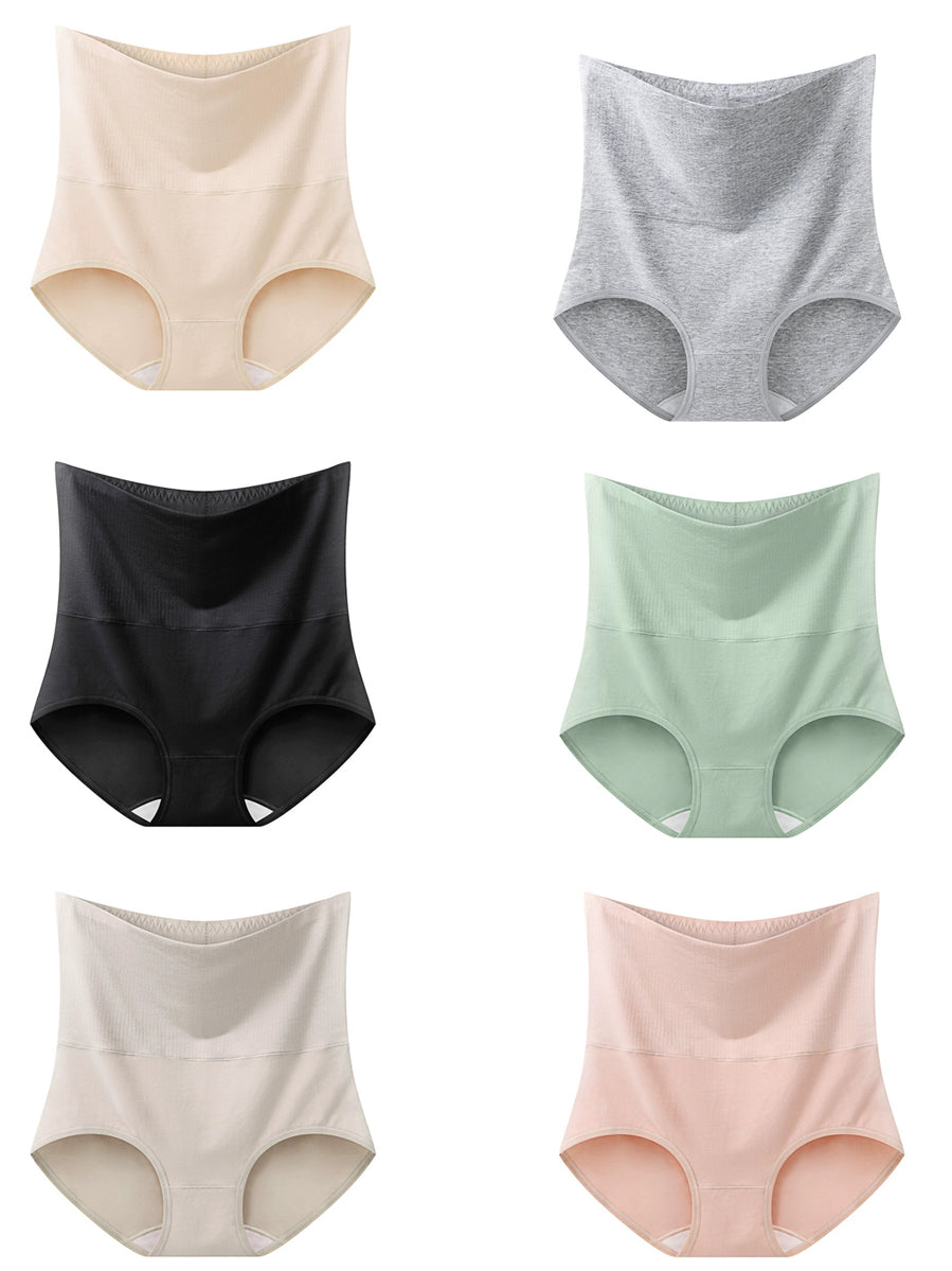 6 قطع ملابس داخلية نسائية كاجوال بلون نقي بخصر مرتفع