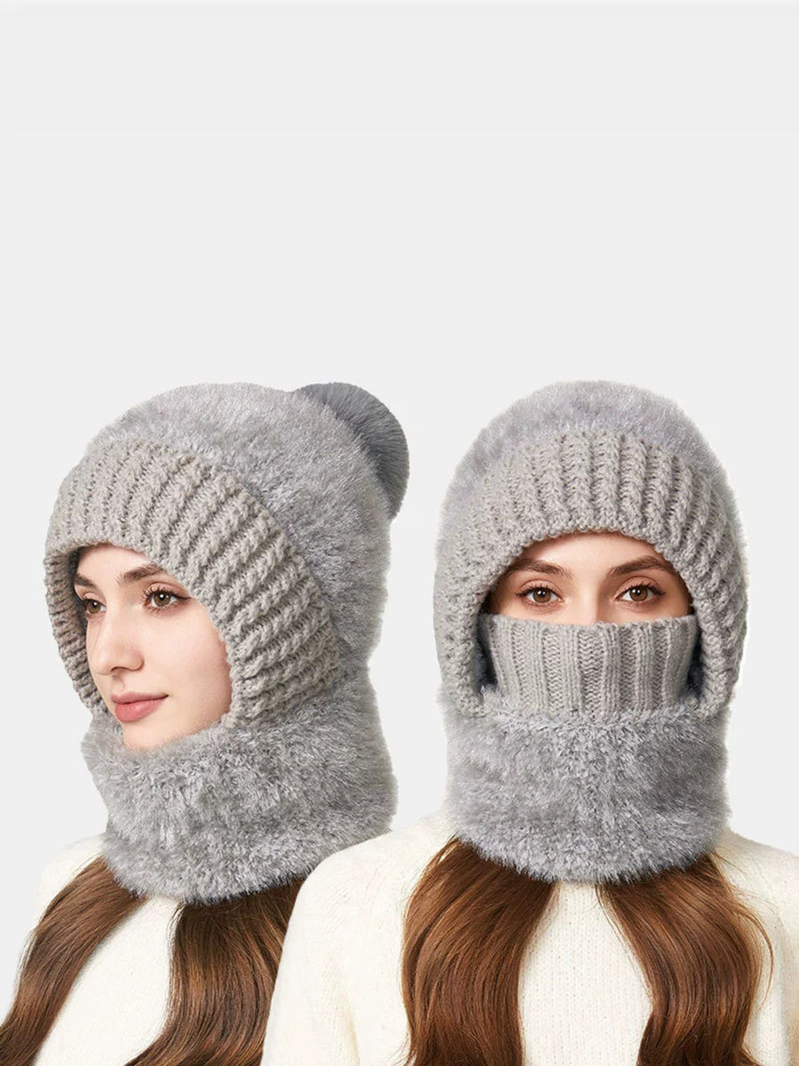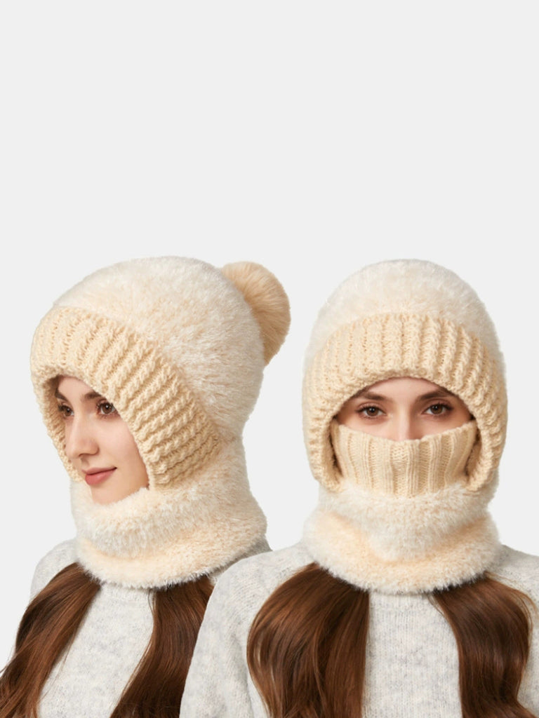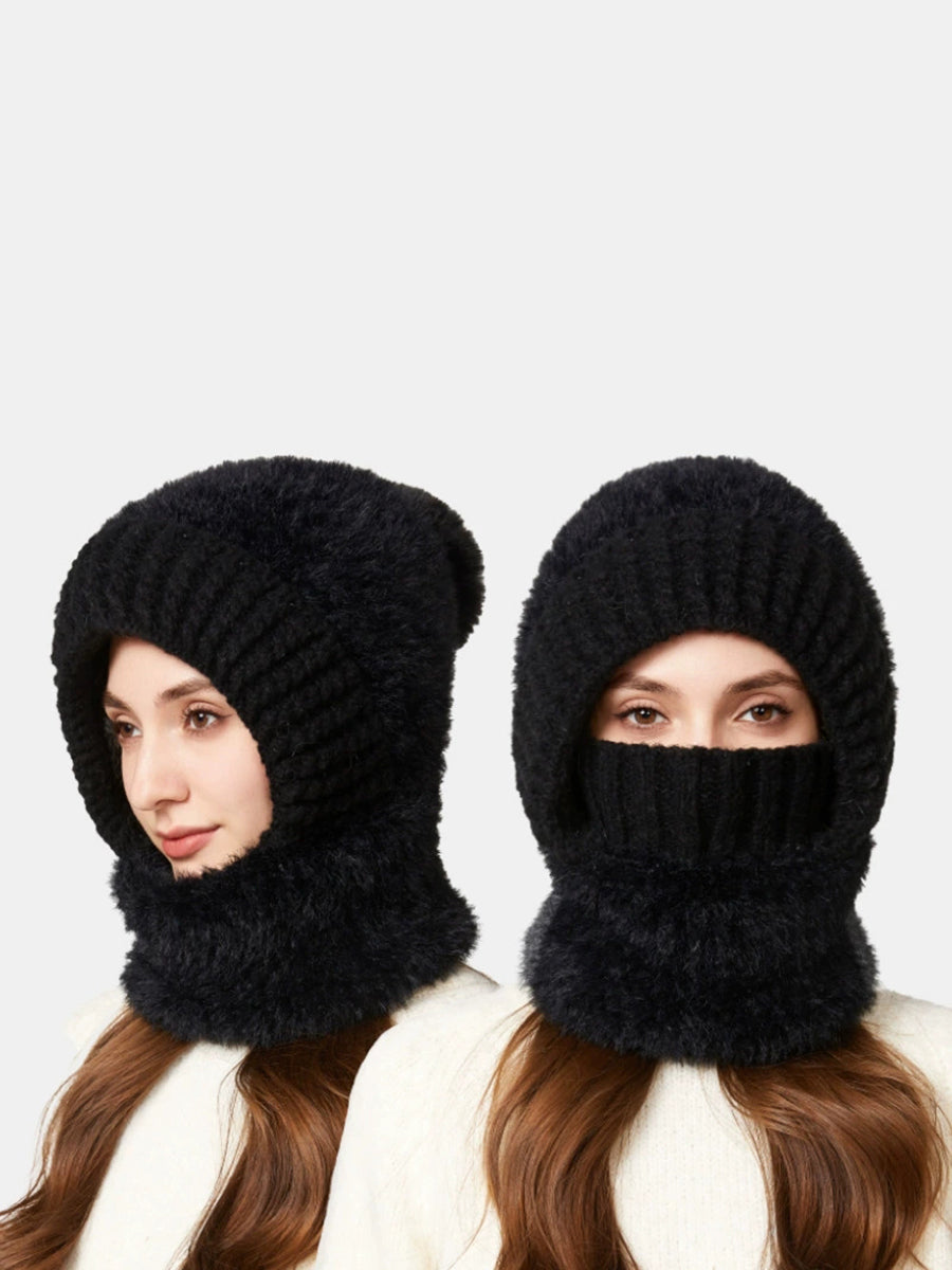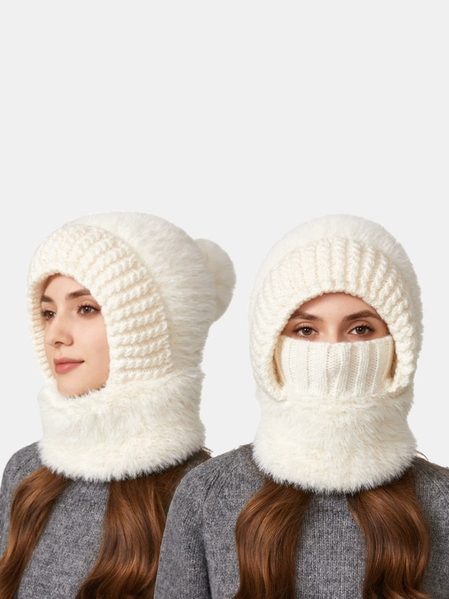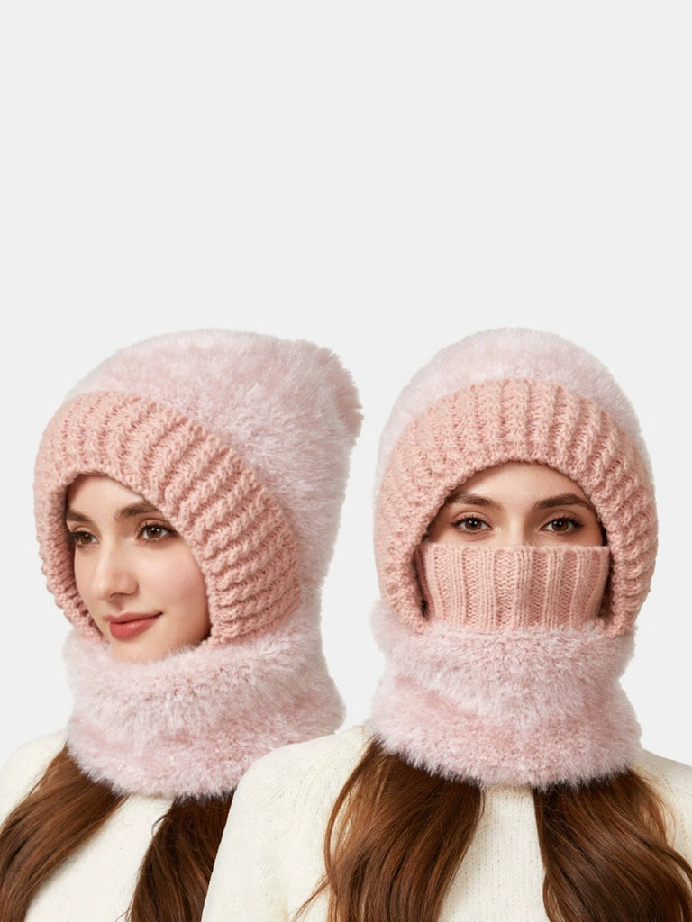وشاح وقبعة محبوكة بلون نقي كاجوال للنساء