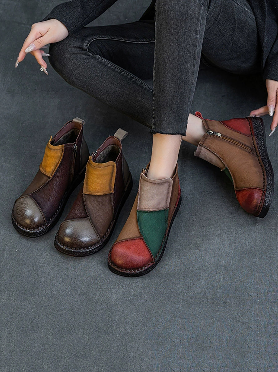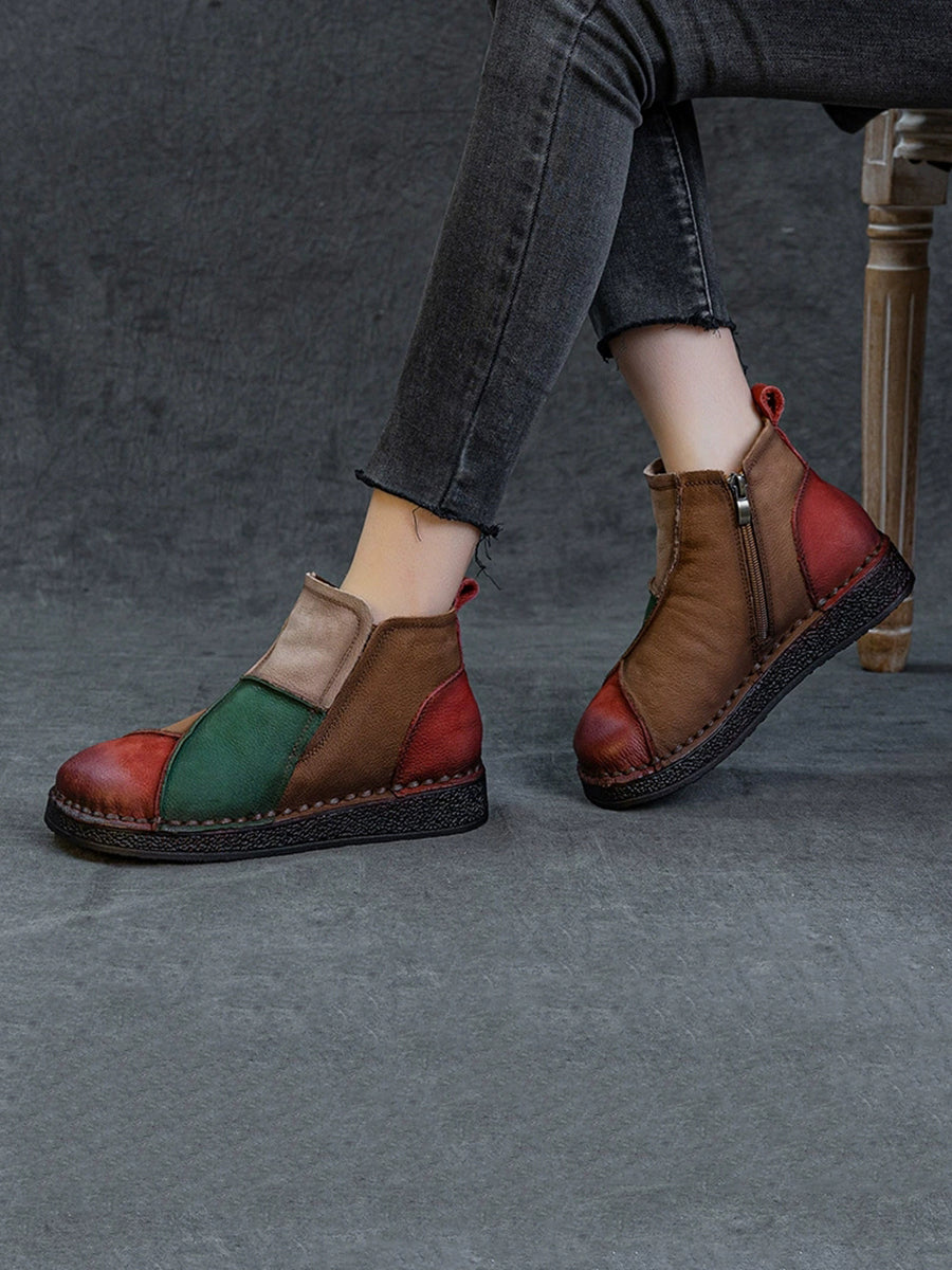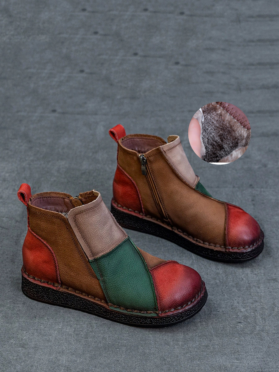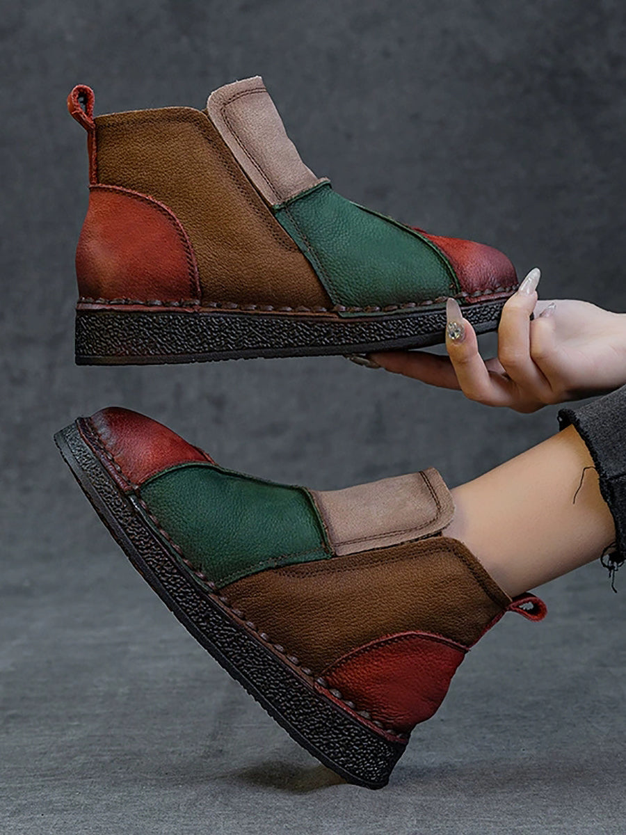 أحذية نسائية شتوية من الجلد الطبيعي بتصميم كتل الألوان تصل إلى الكاحل