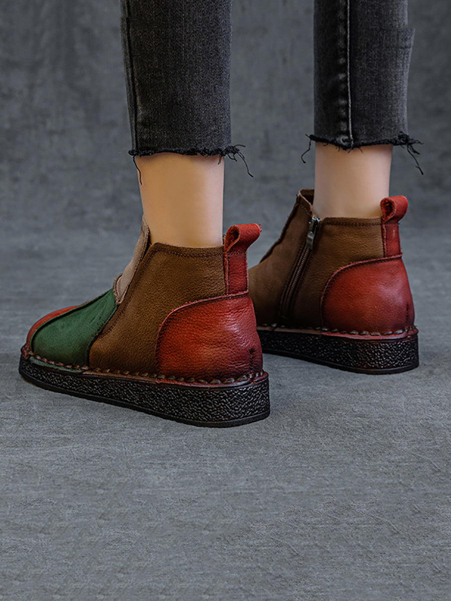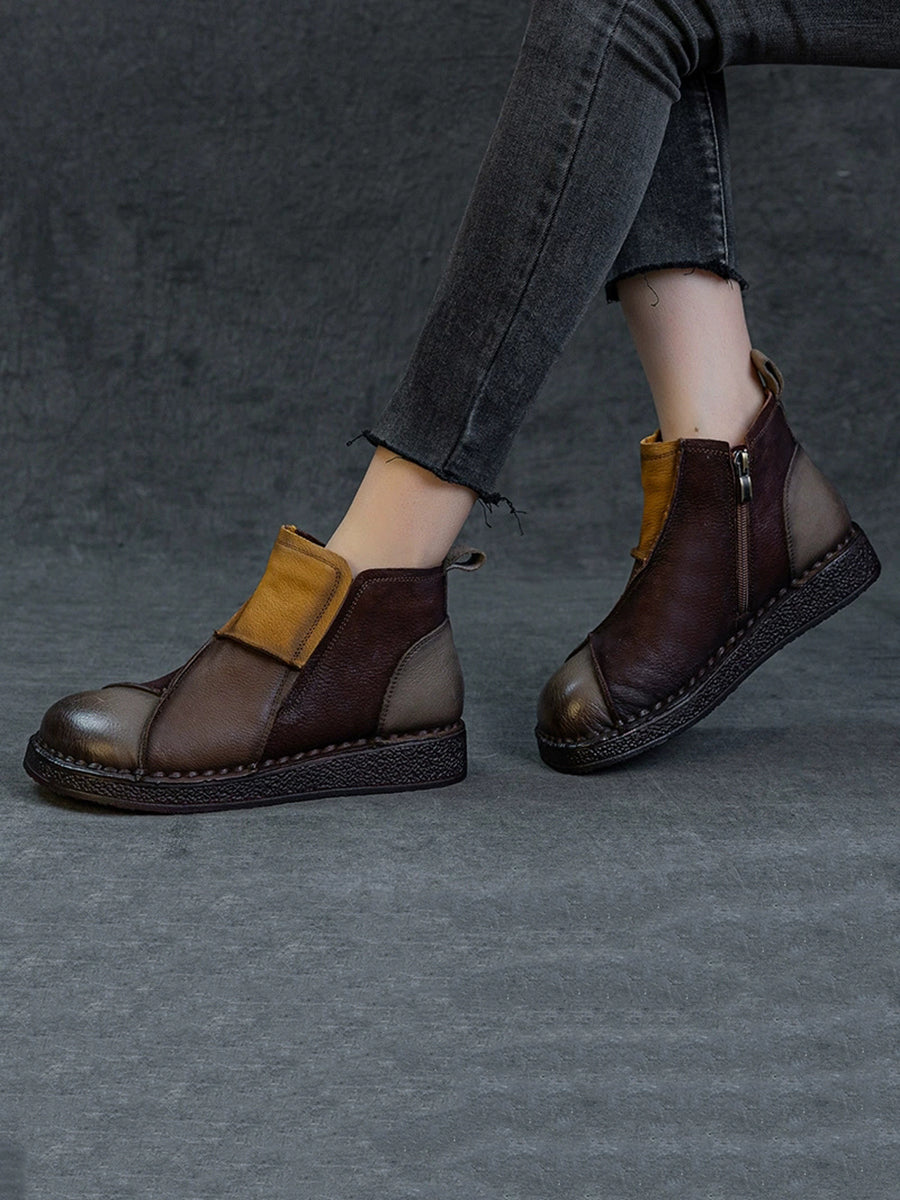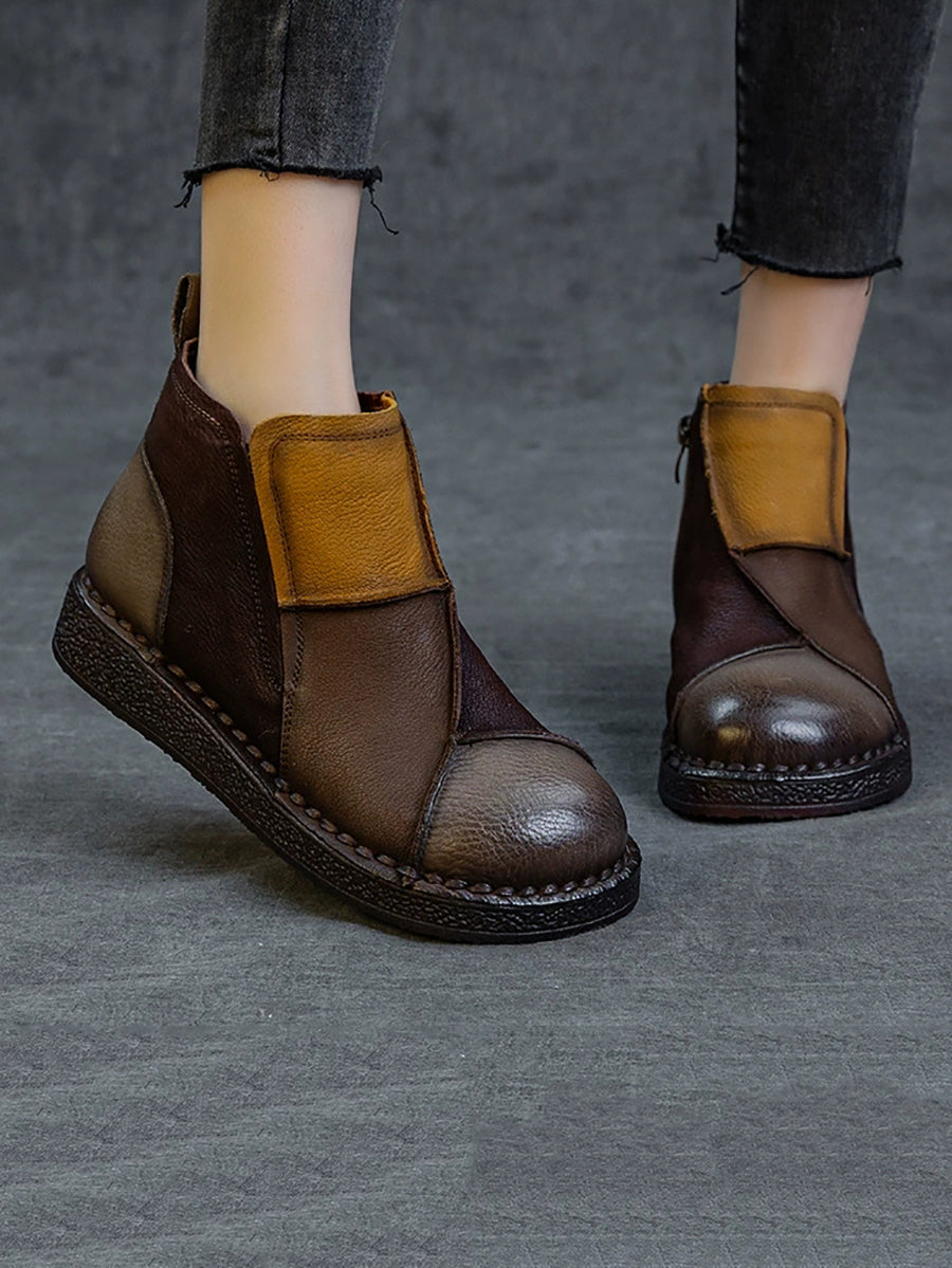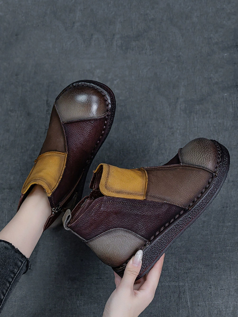 أحذية نسائية شتوية من الجلد الطبيعي بتصميم كتل الألوان تصل إلى الكاحل