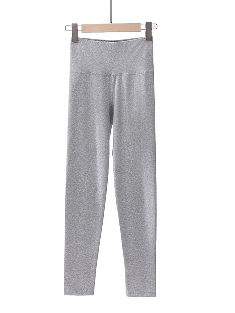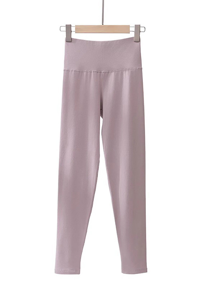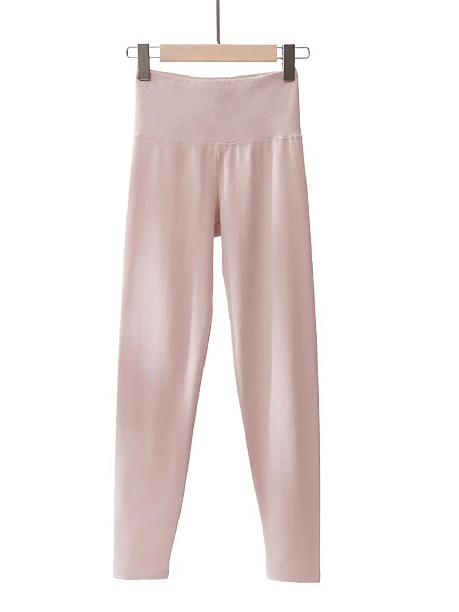 بنطلون ليجنز نسائي شتوي دافئ بلون نقي بخصر مرتفع