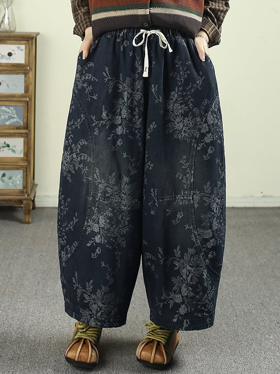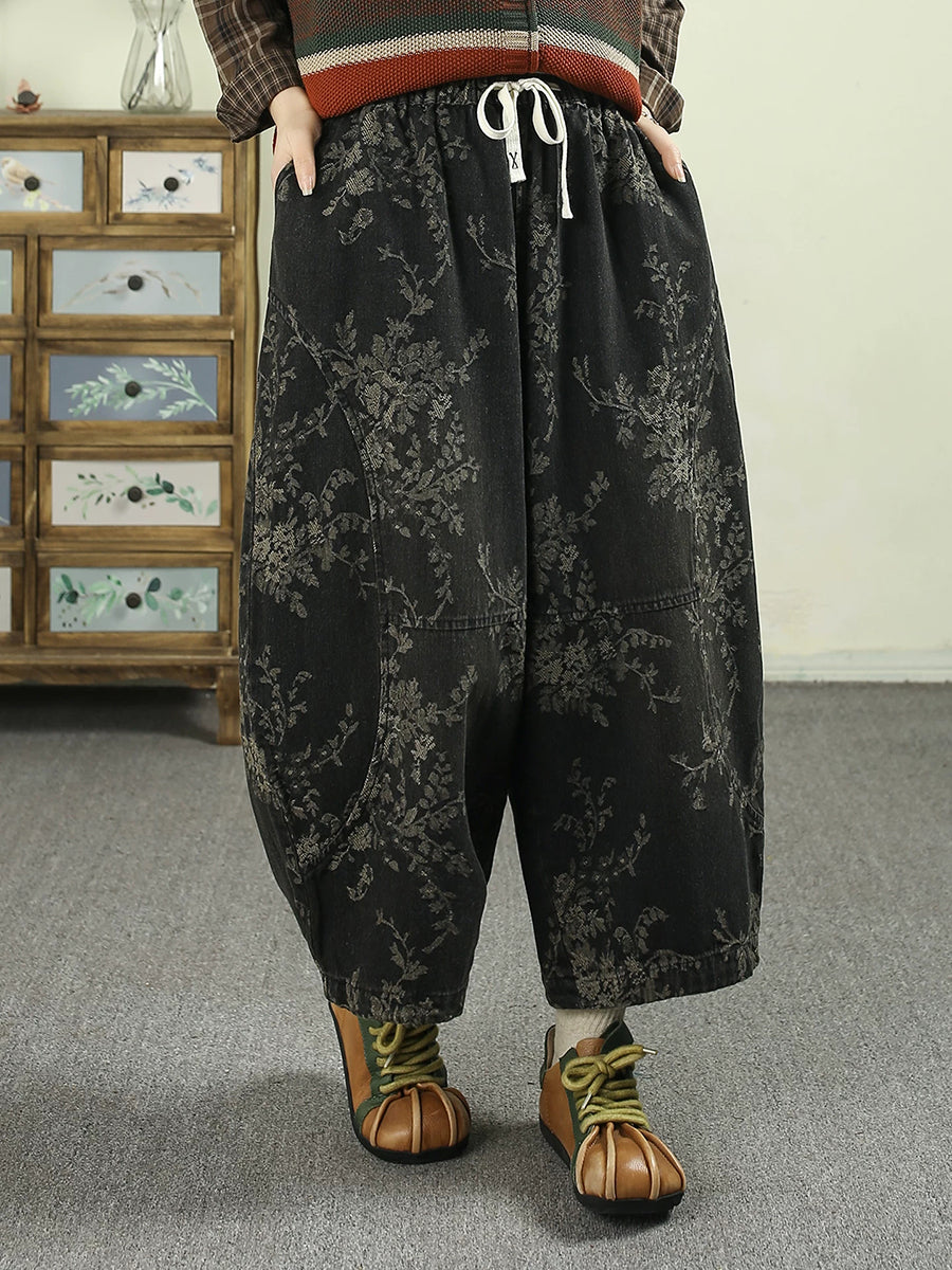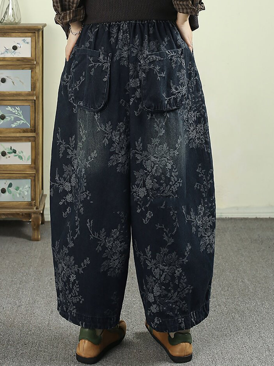 بنطلون جينز نسائي ربيعي بتصميم زهور ريترو، بنطلون حريمي نسائي