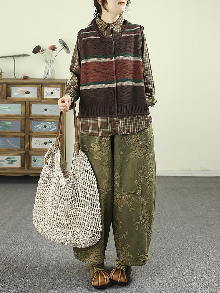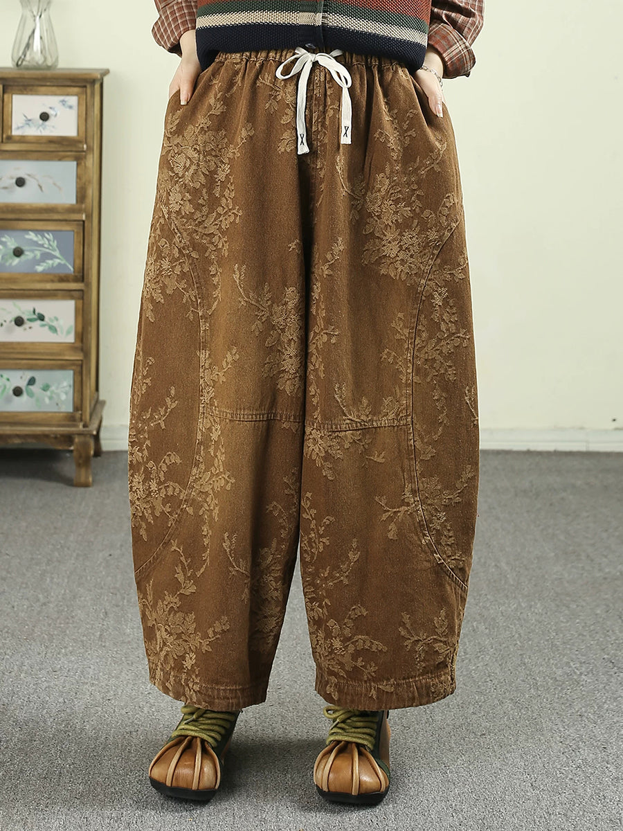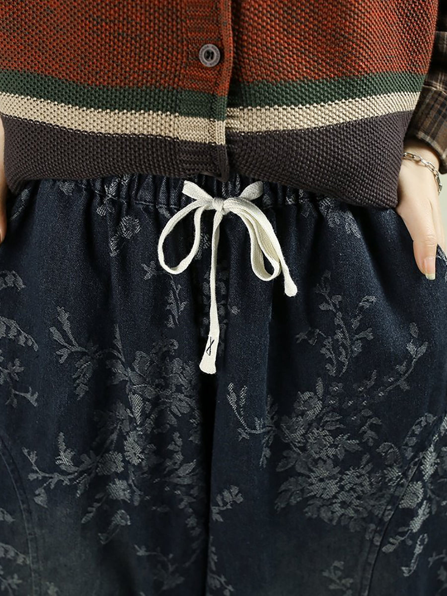 بنطلون جينز نسائي ربيعي بتصميم زهور ريترو، بنطلون حريمي نسائي