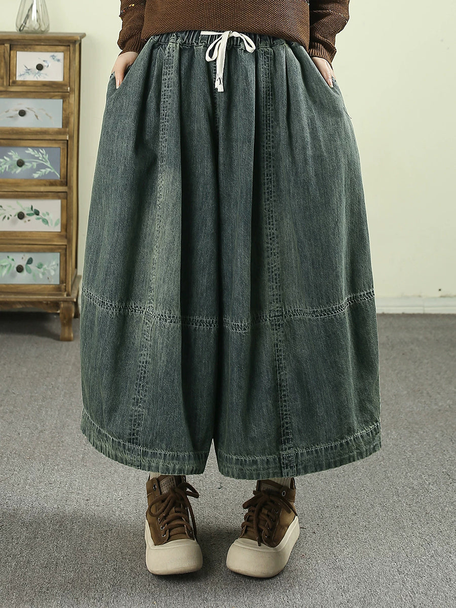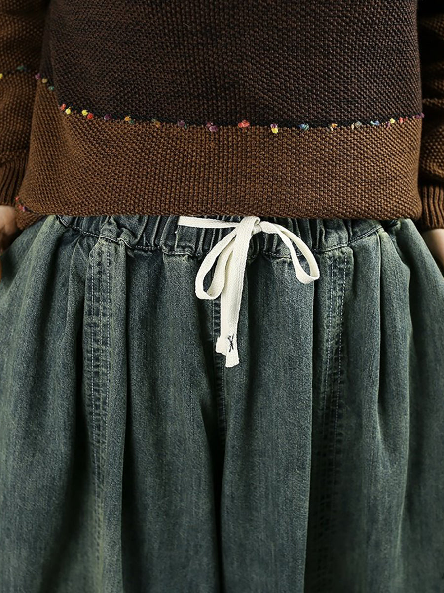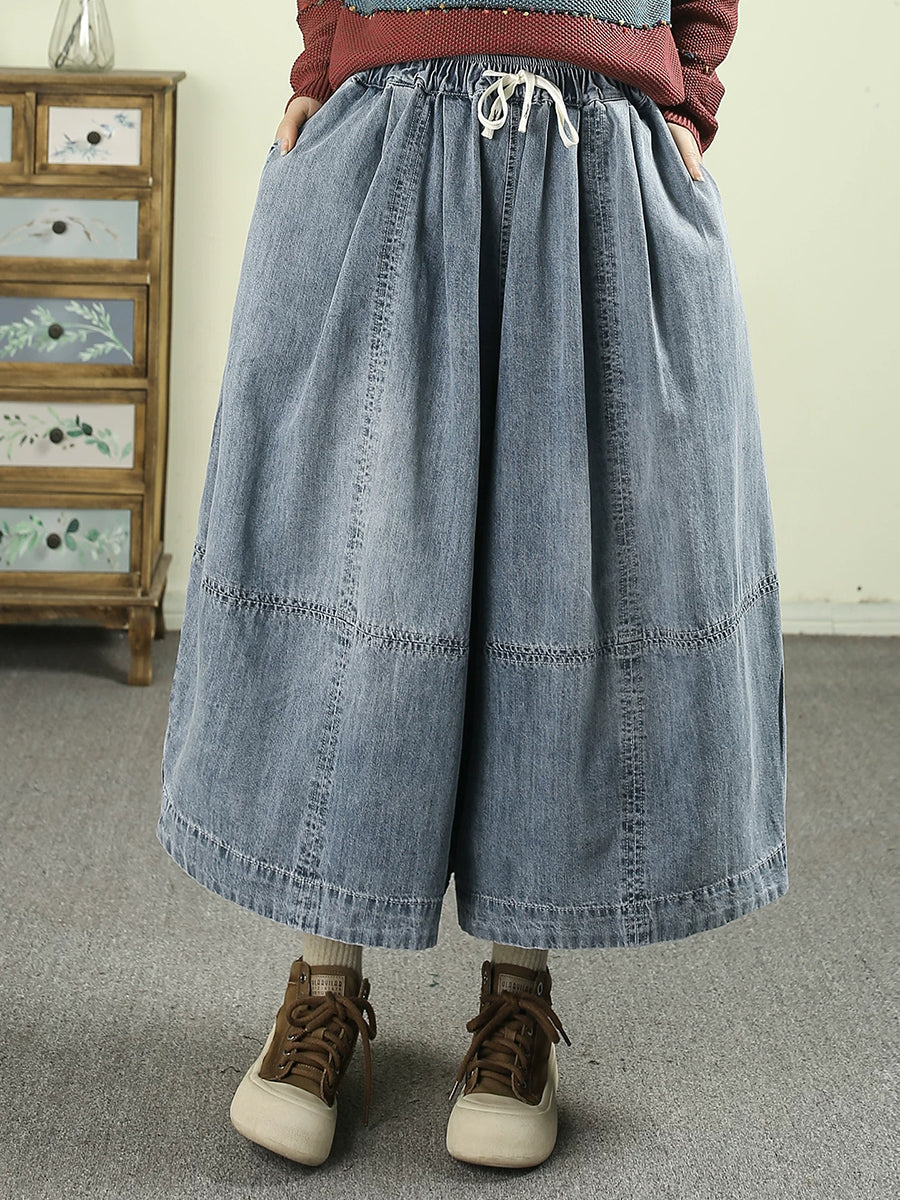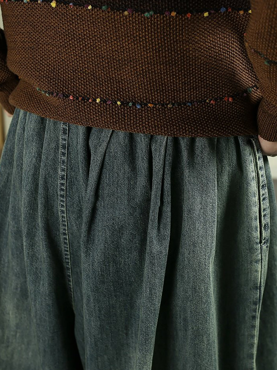 بنطلون جينز واسع الساقين بتصميم ربيعي كلاسيكي للنساء