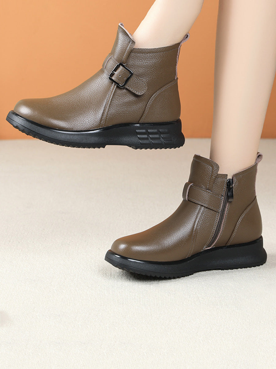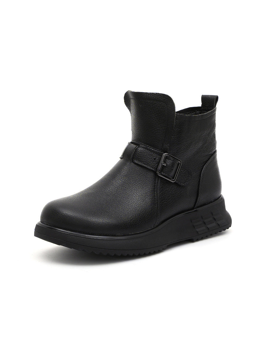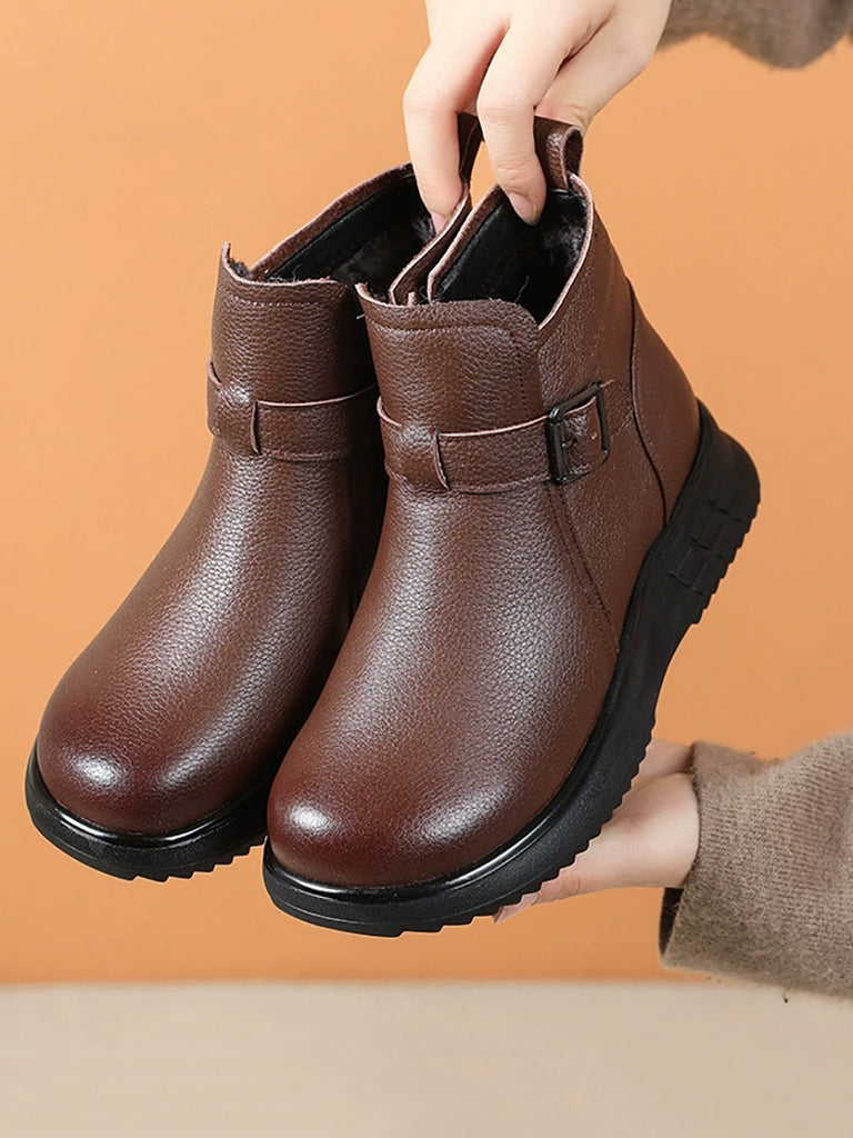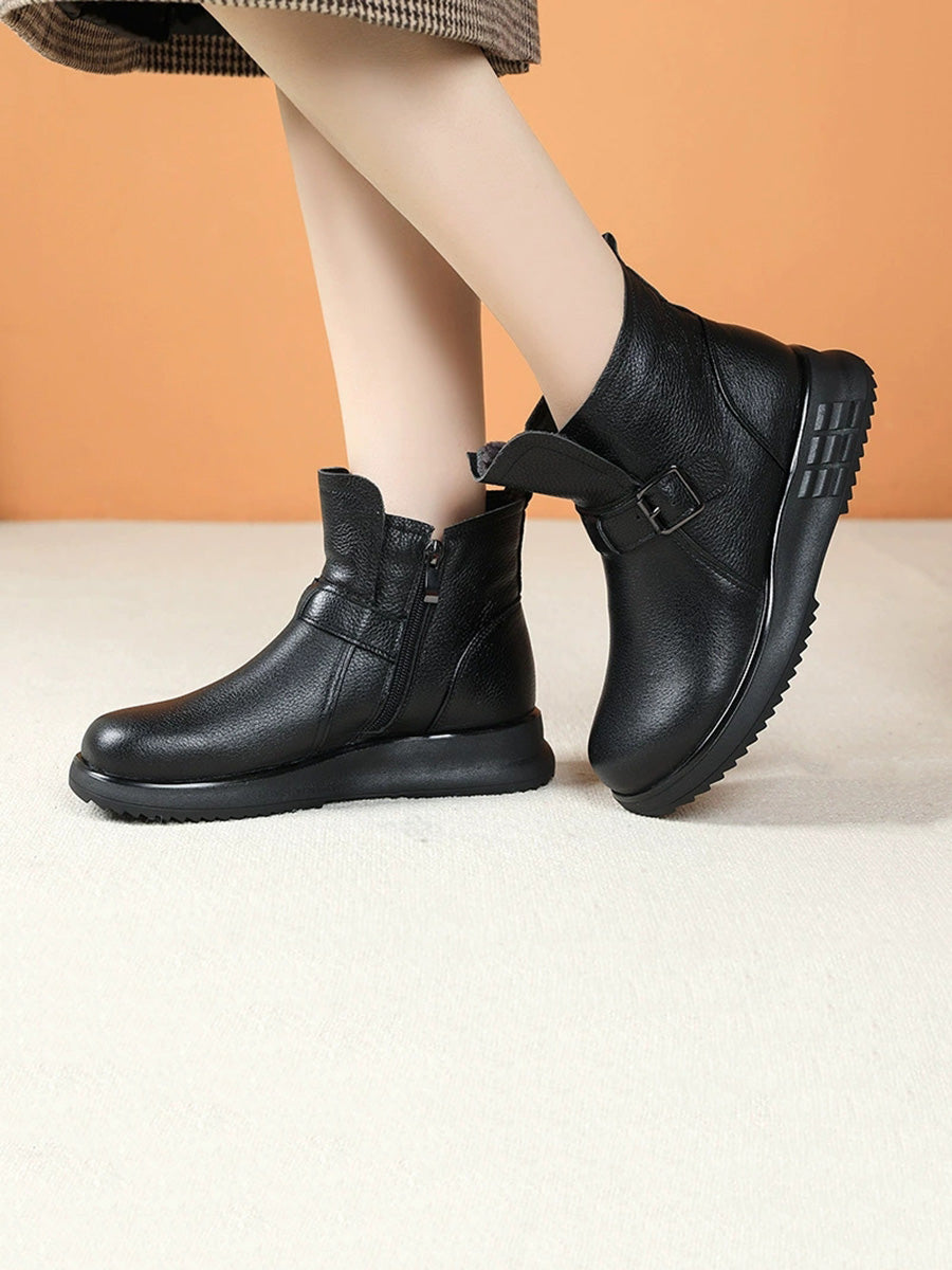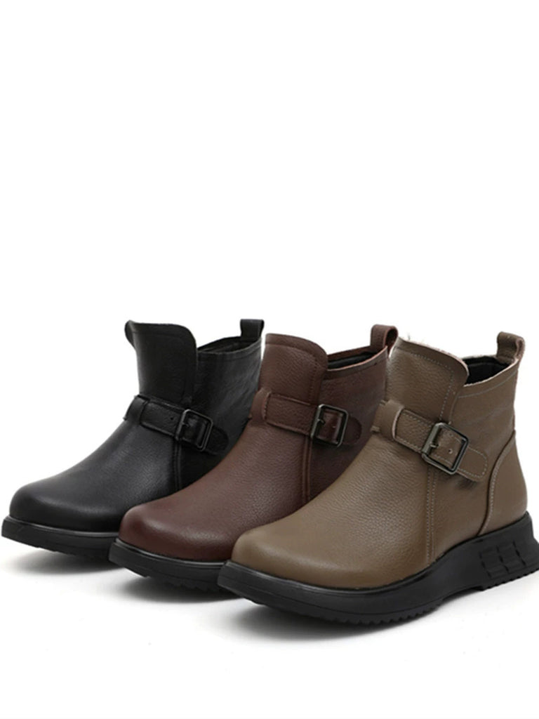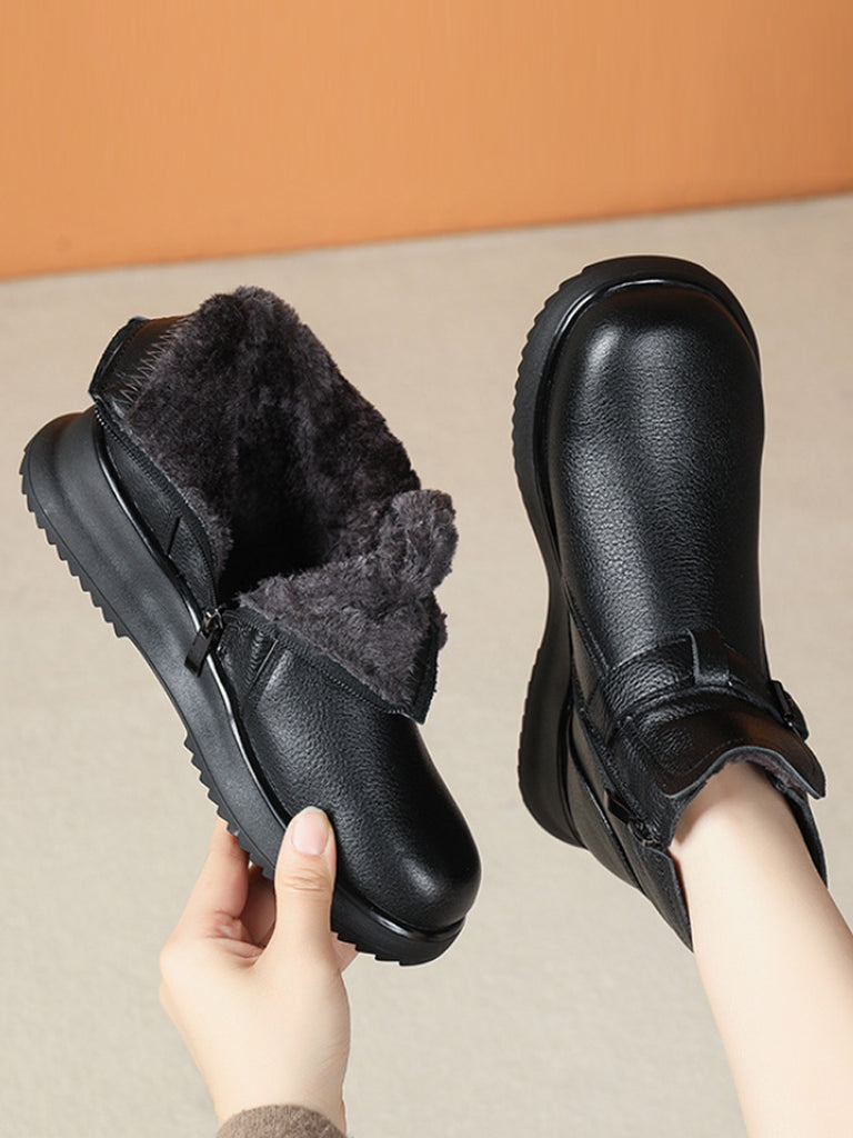 حذاء مارتن نسائي شتوي مبطن بالصوف من الجلد الطبيعي