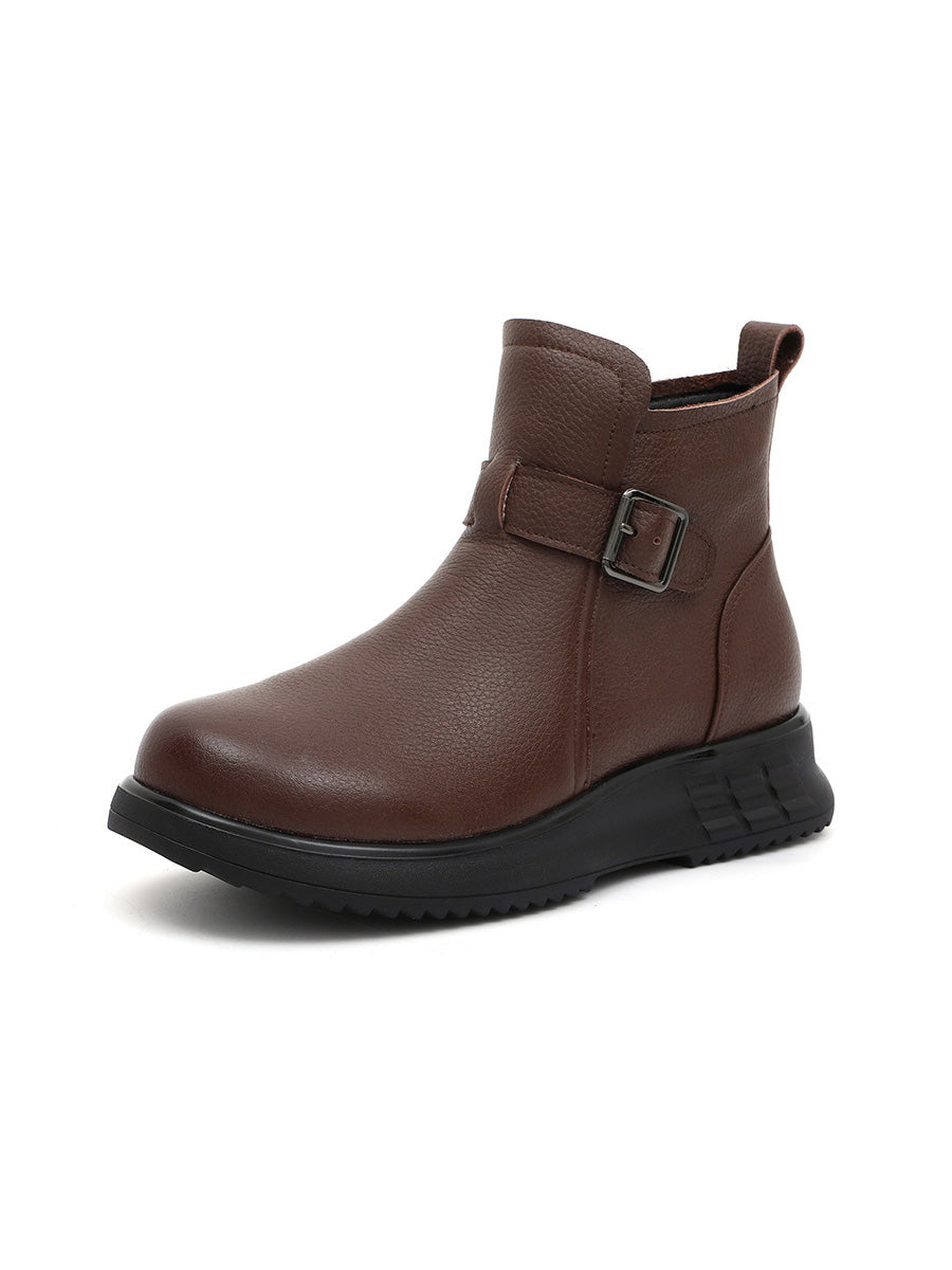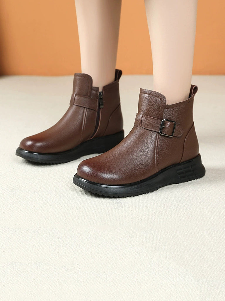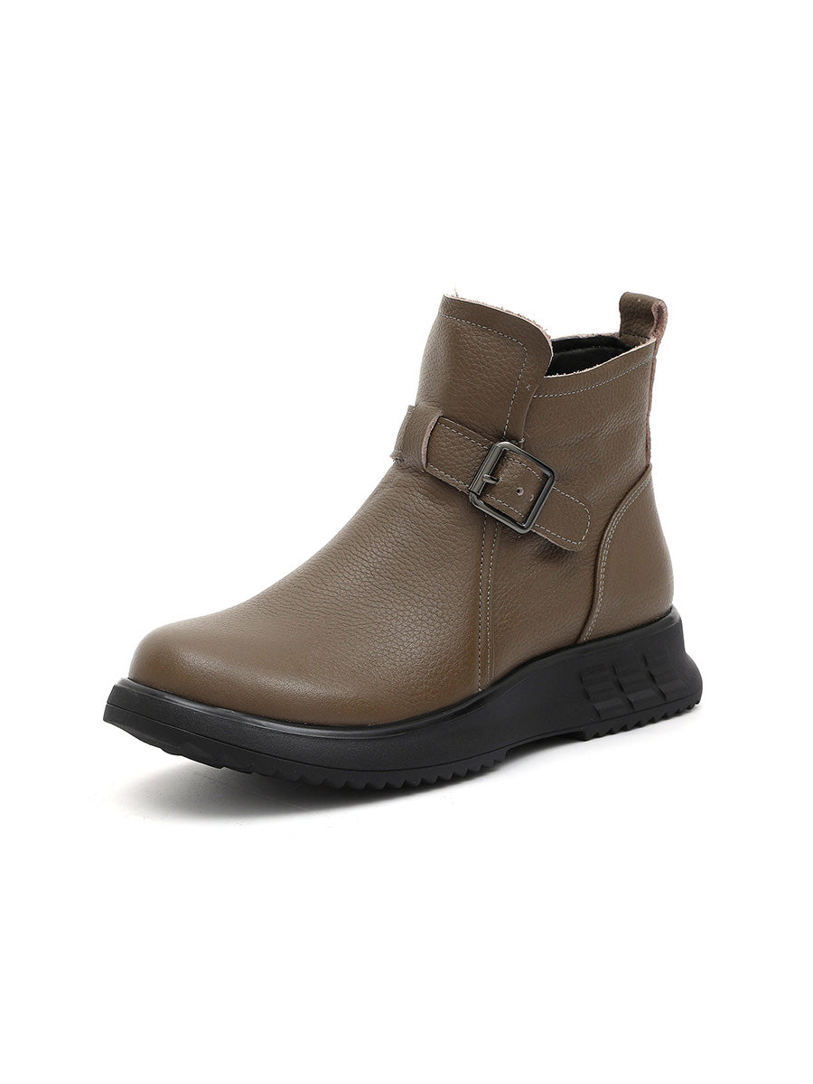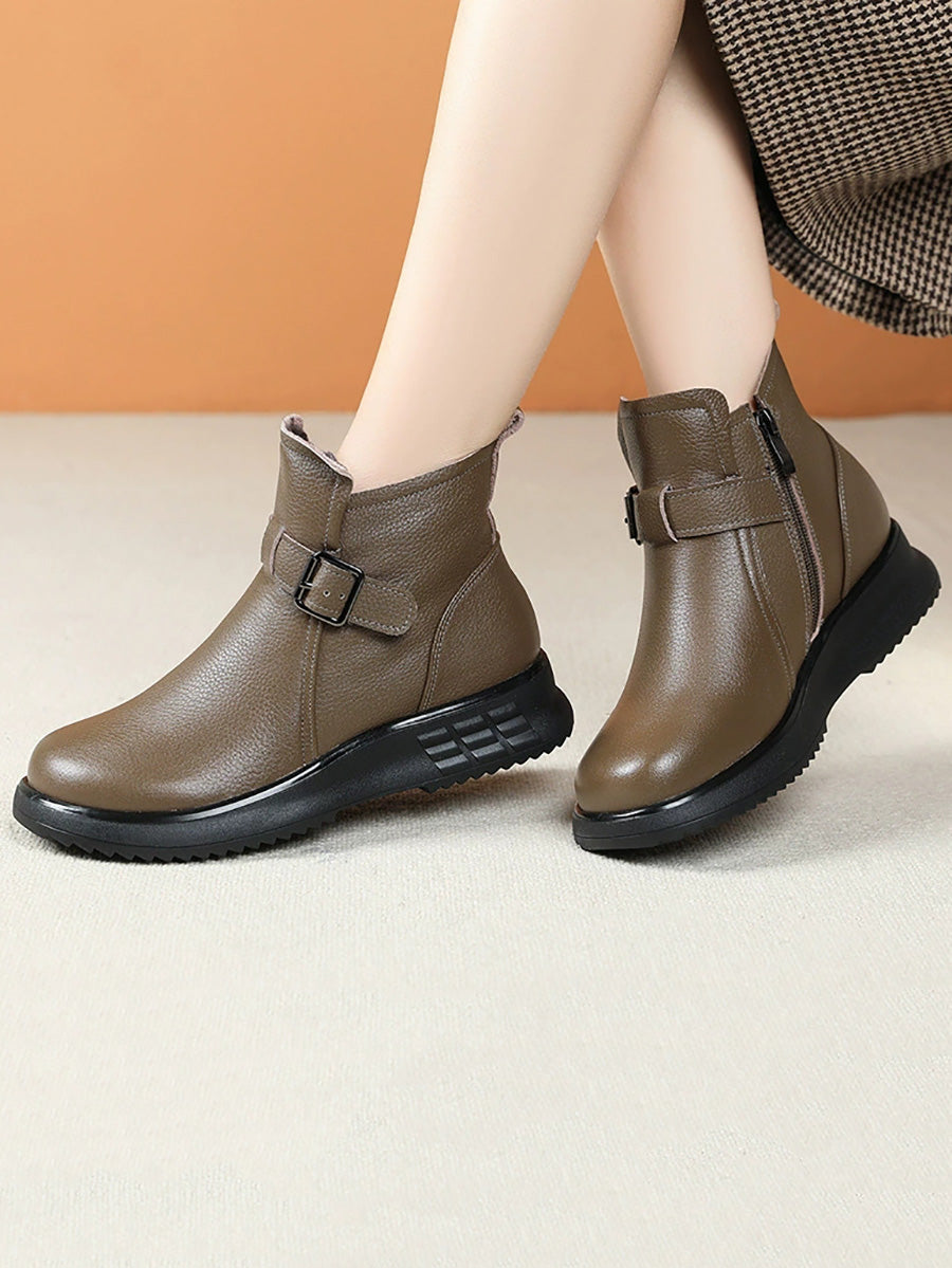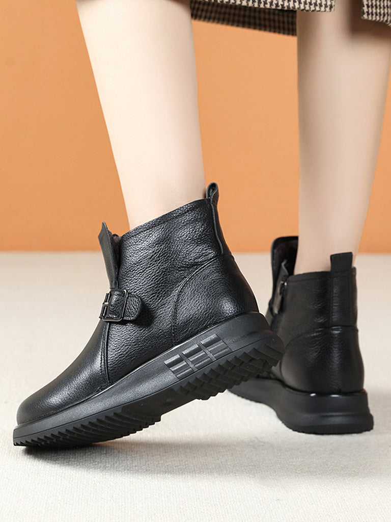 حذاء مارتن نسائي شتوي مبطن بالصوف من الجلد الطبيعي