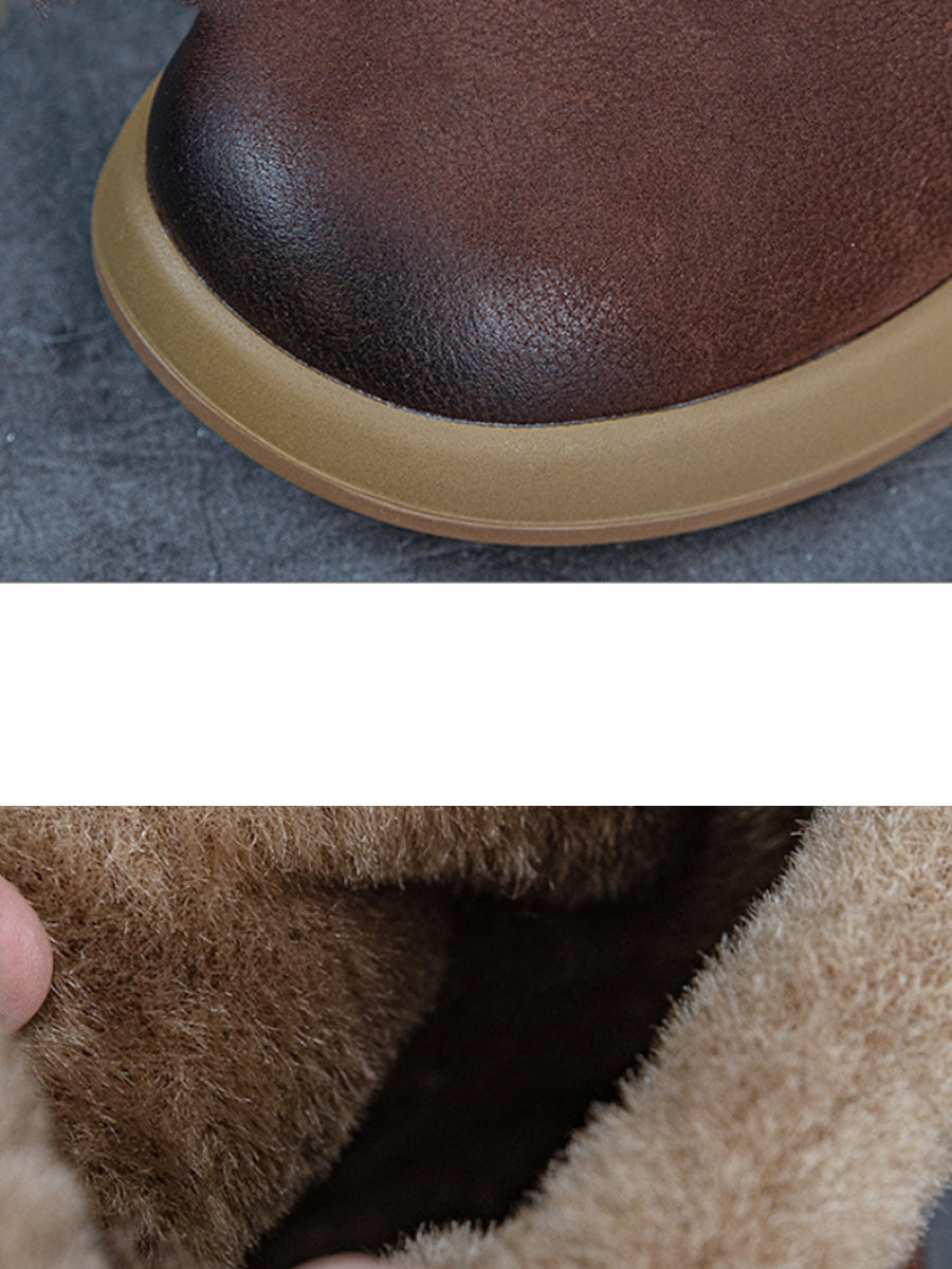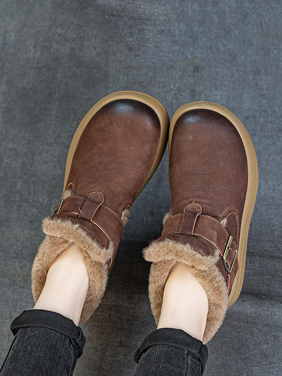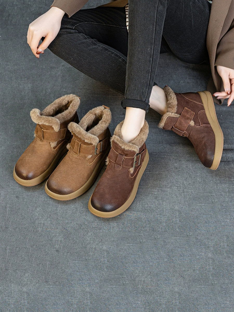 حذاء نسائي شتوي من الجلد مبطن بالصوف