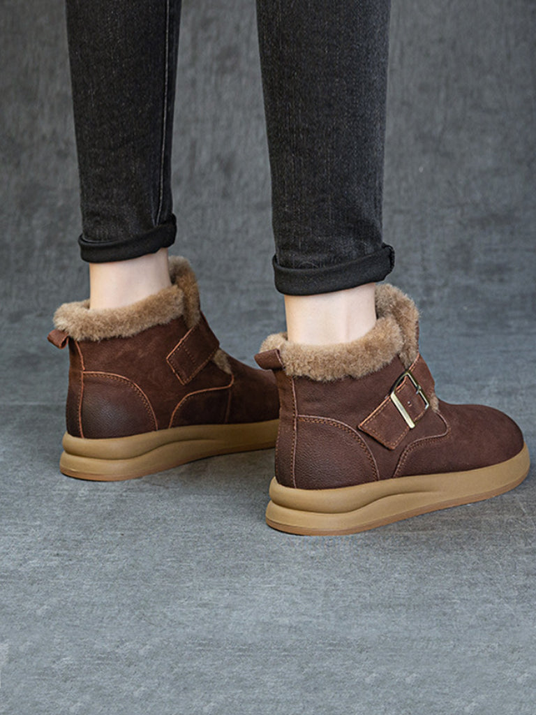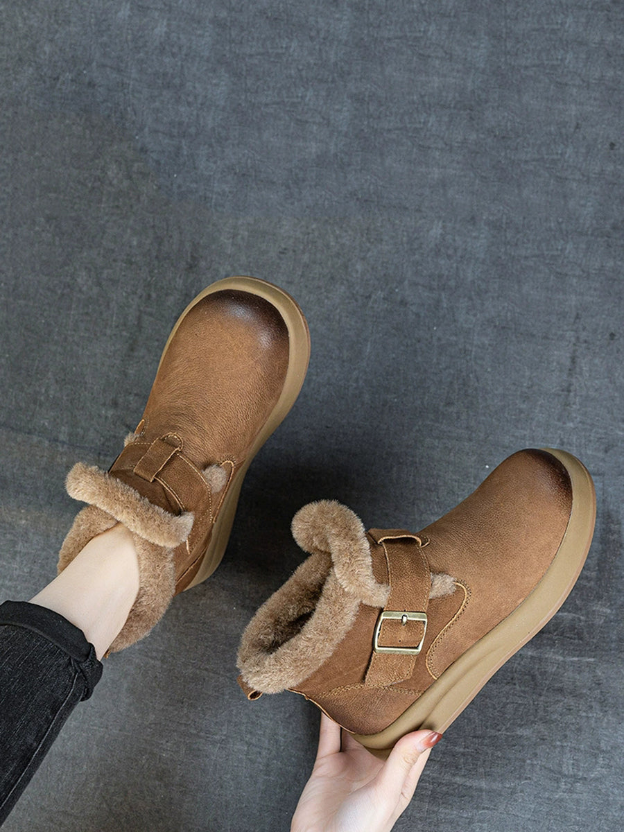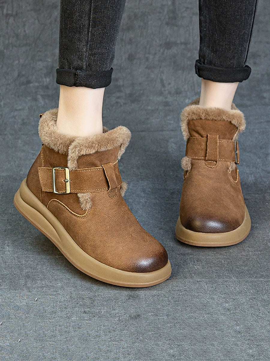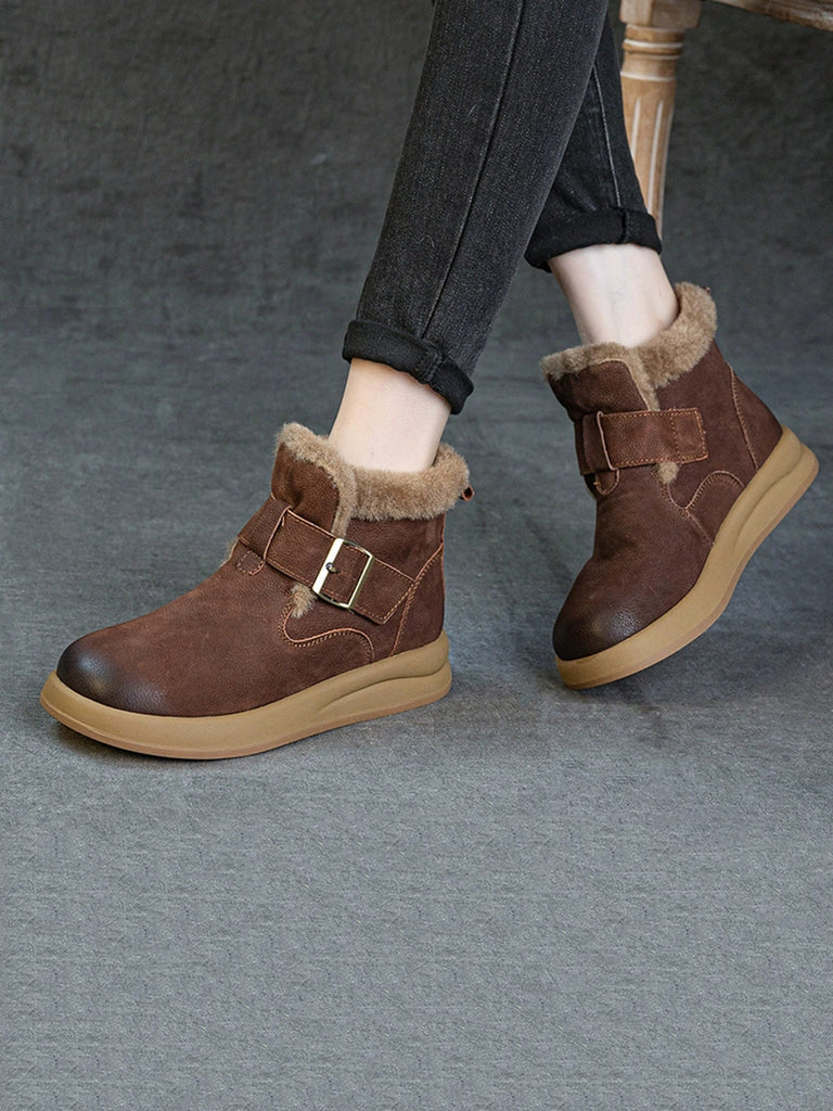 حذاء نسائي شتوي من الجلد مبطن بالصوف