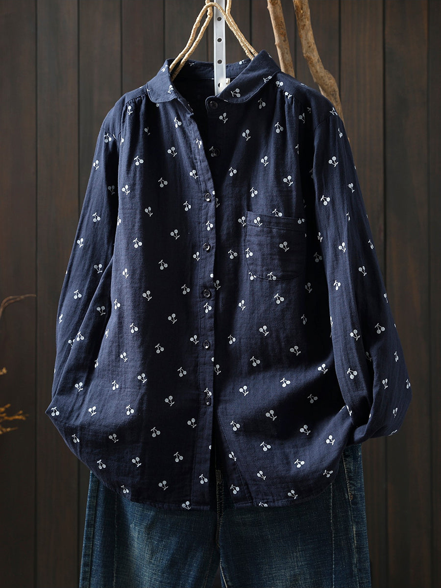 قميص نسائي ربيعي مطرز بنقشة الكرز الفنية، مصنوع من القطن بنسبة 100%