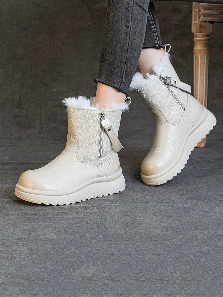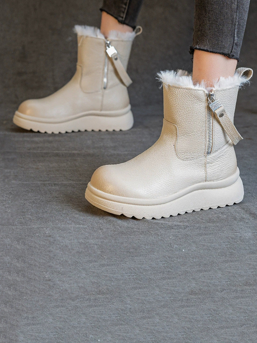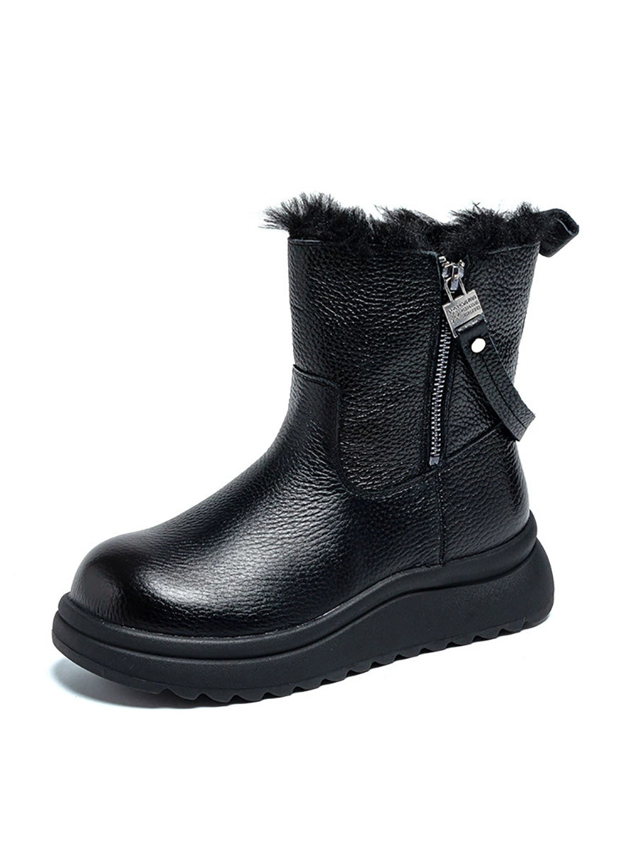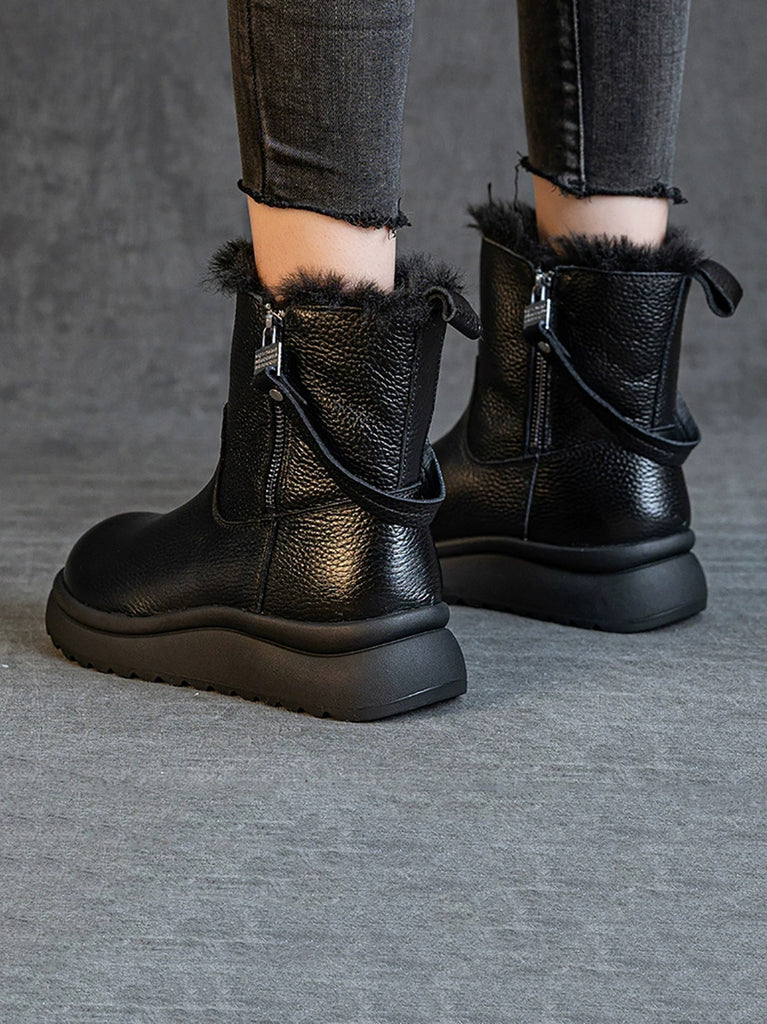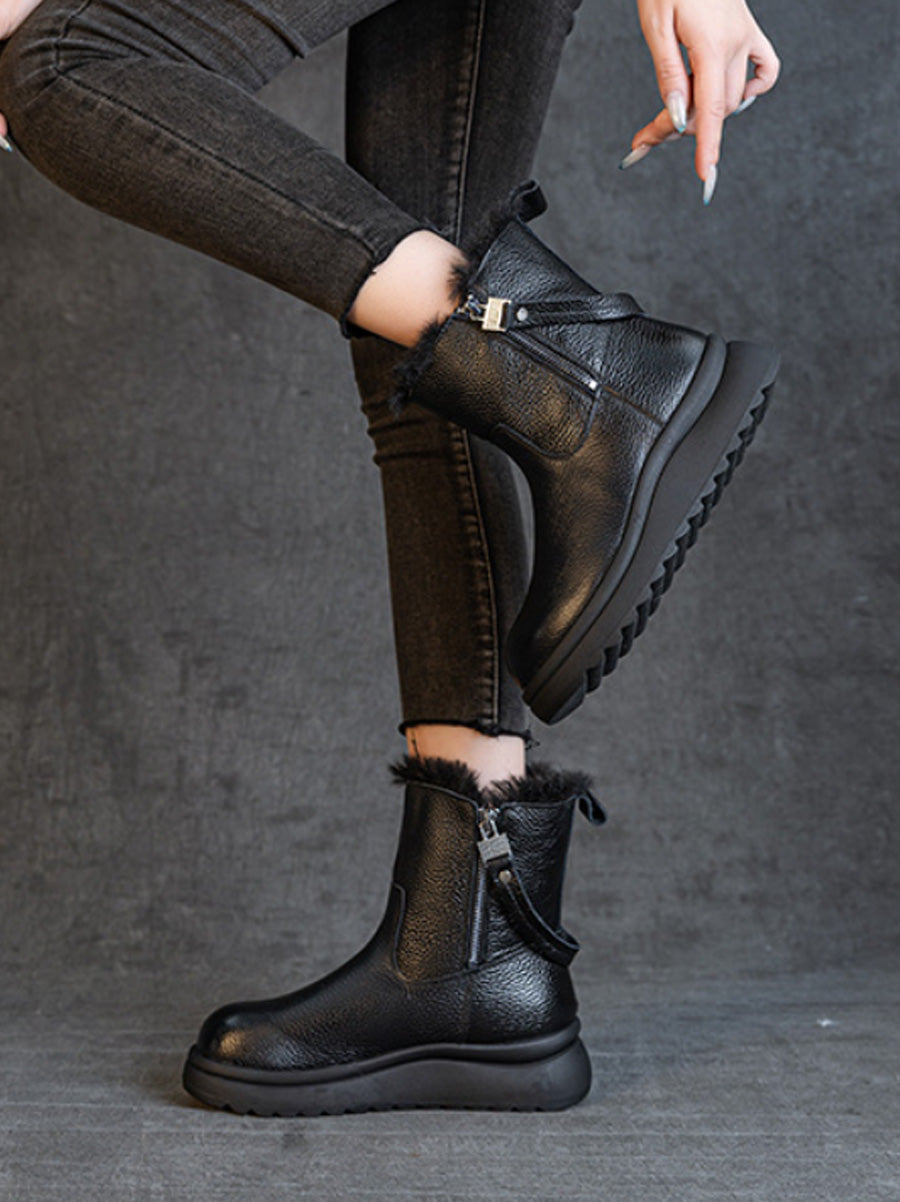 حذاء نسائي شتوي مبطن بالصوف من الجلد الطبيعي