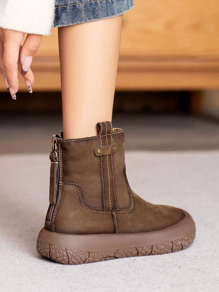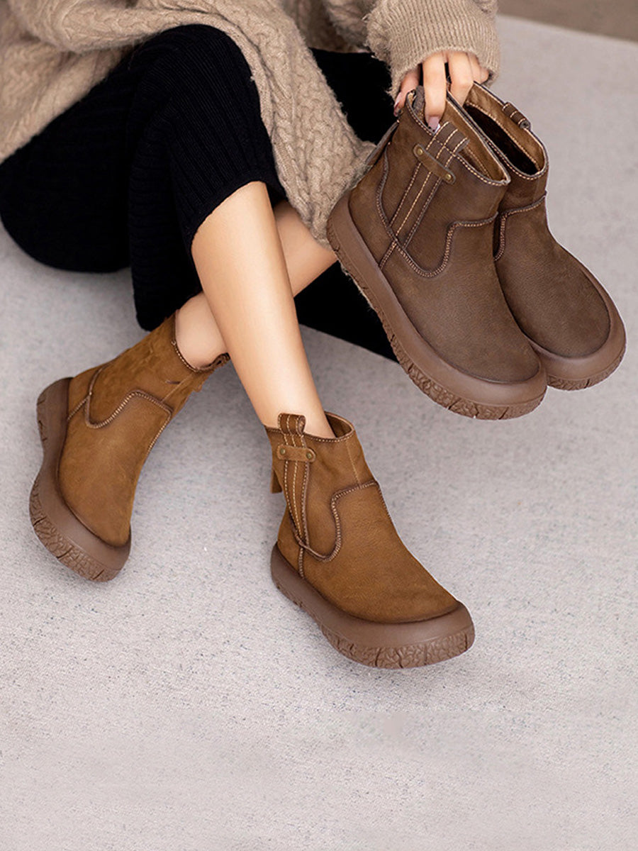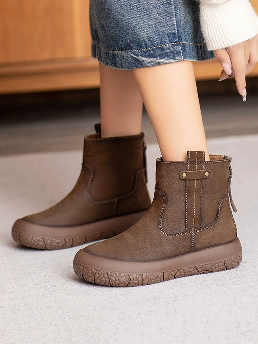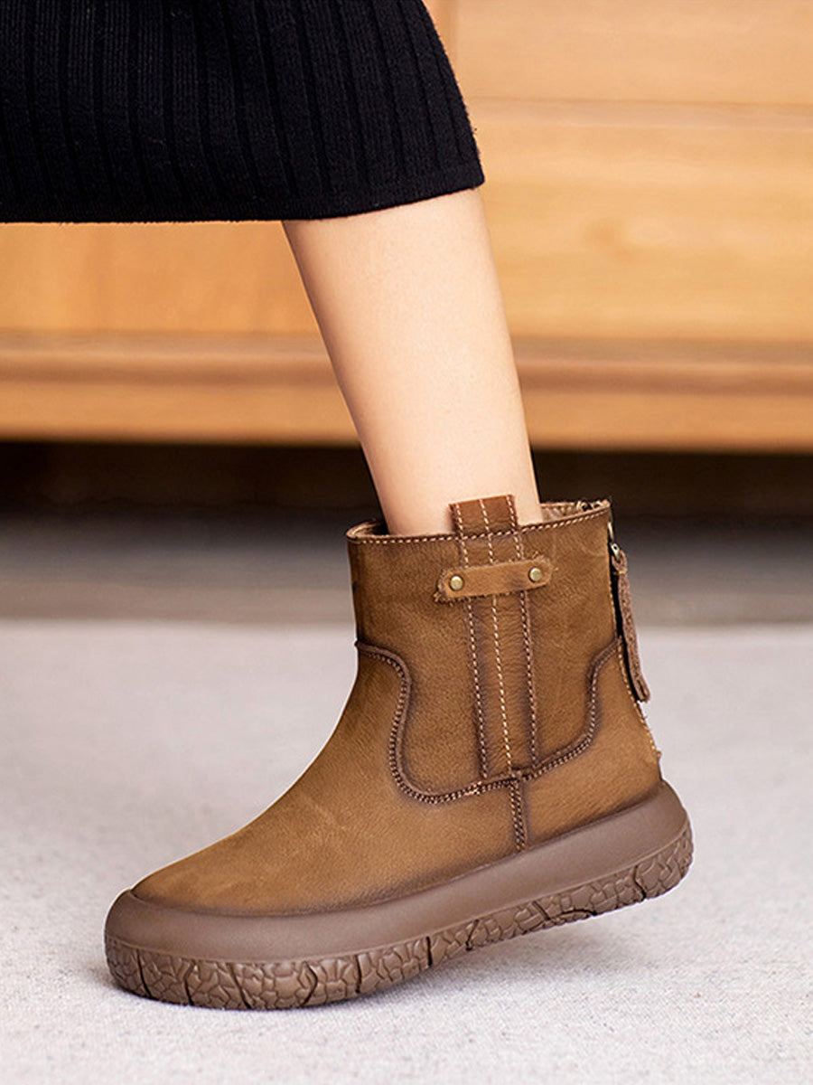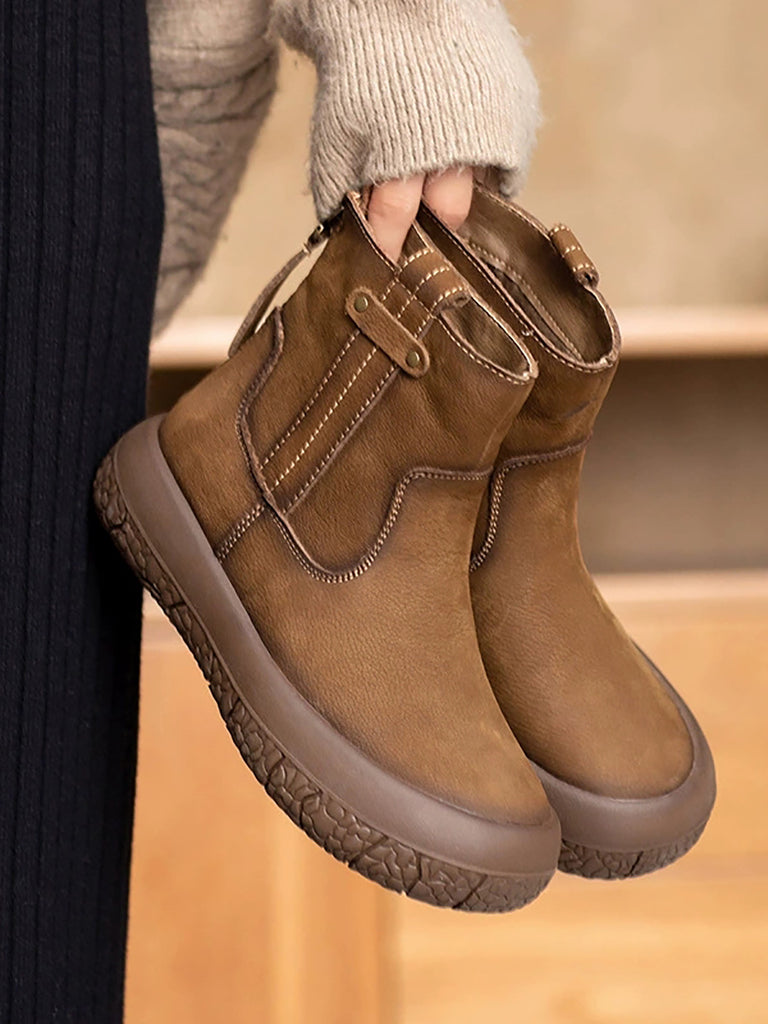 حذاء نسائي شتوي من الجلد المبطن بالصوف