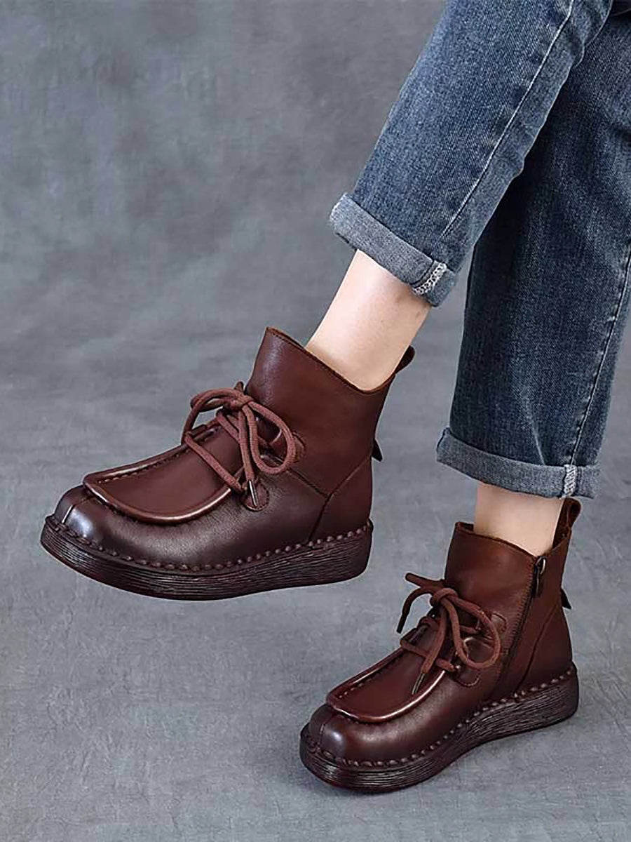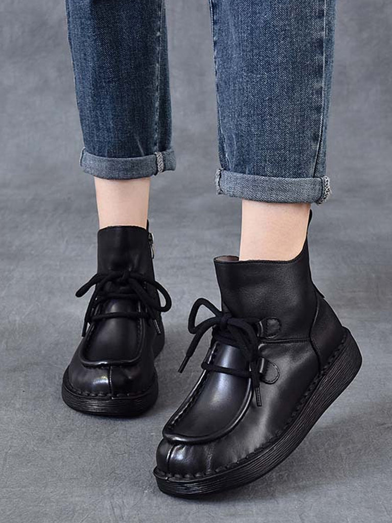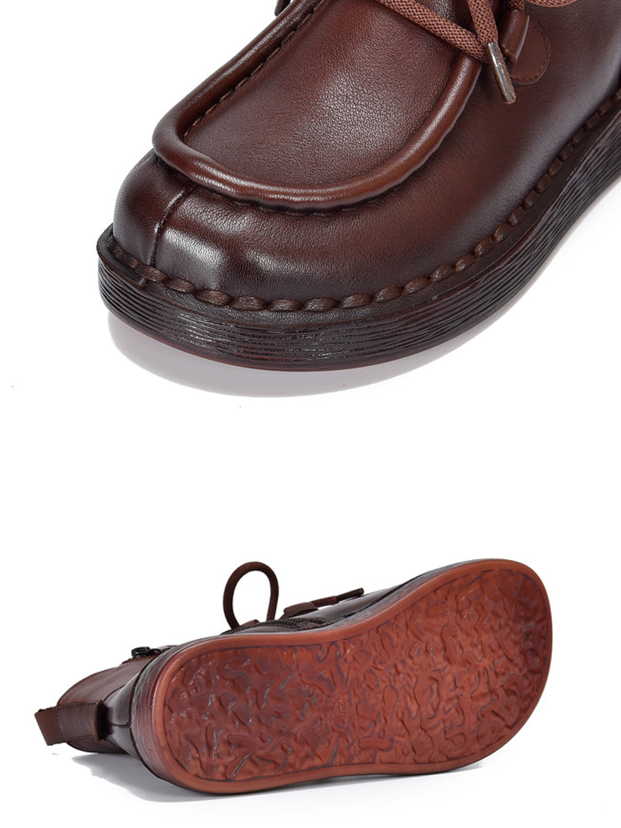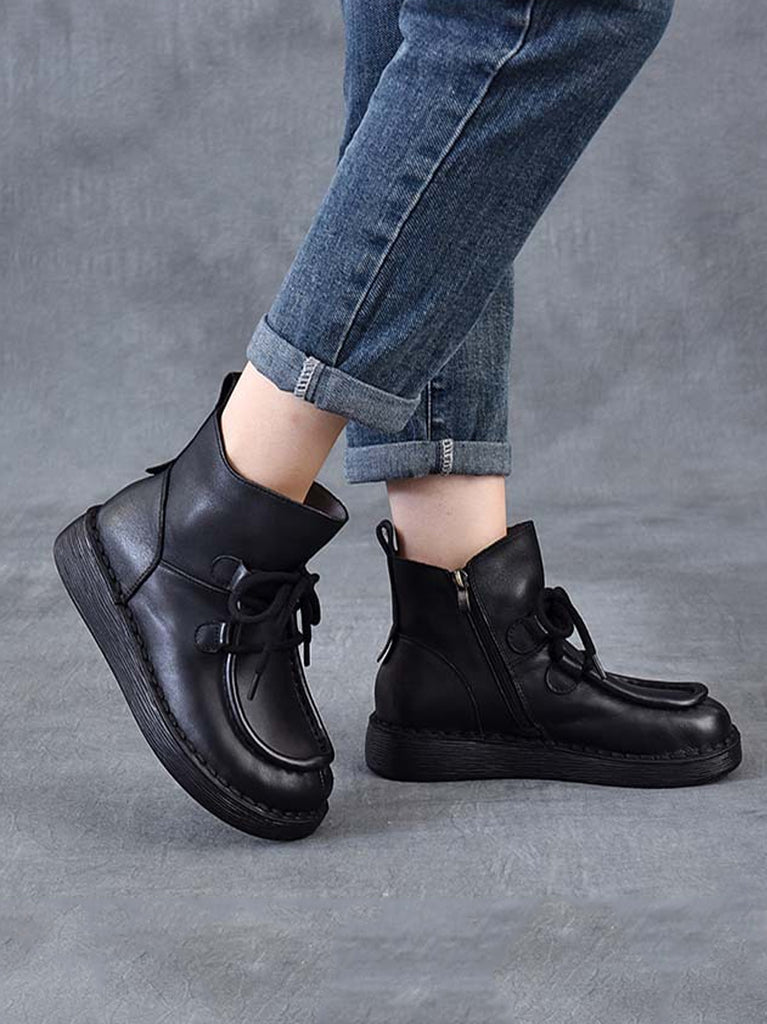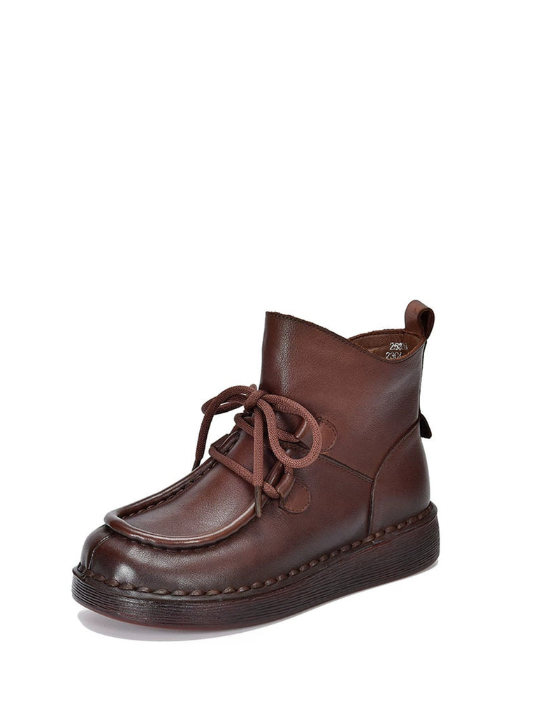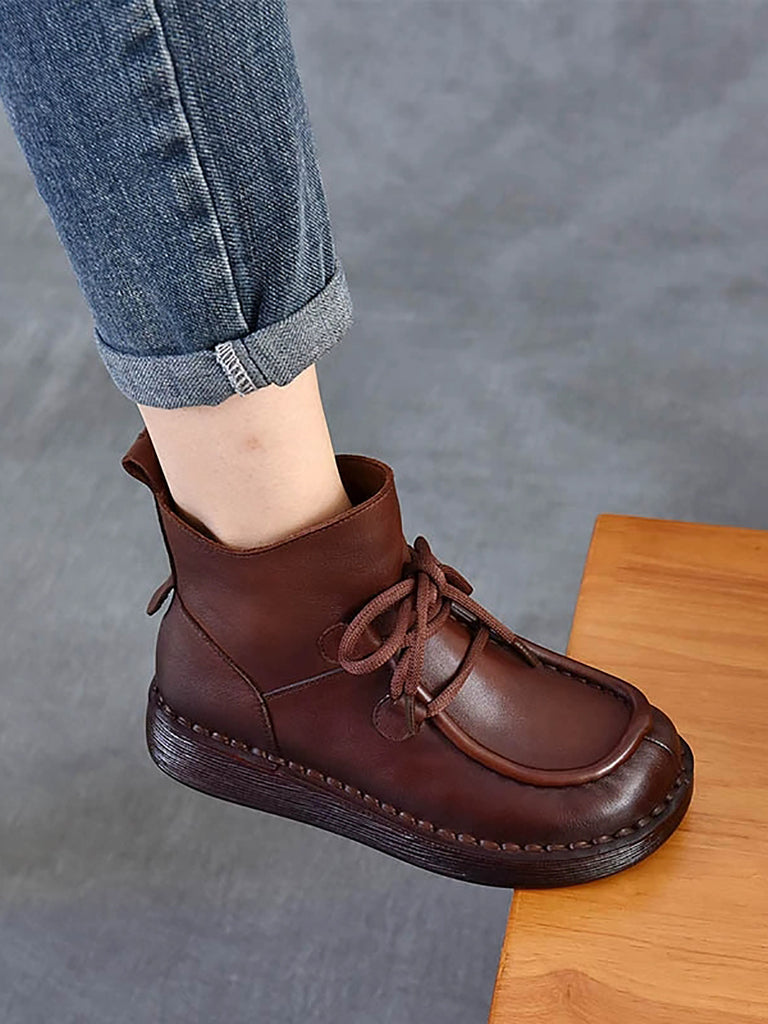 حذاء نسائي شتوي من الجلد المسطح حتى الكاحل
