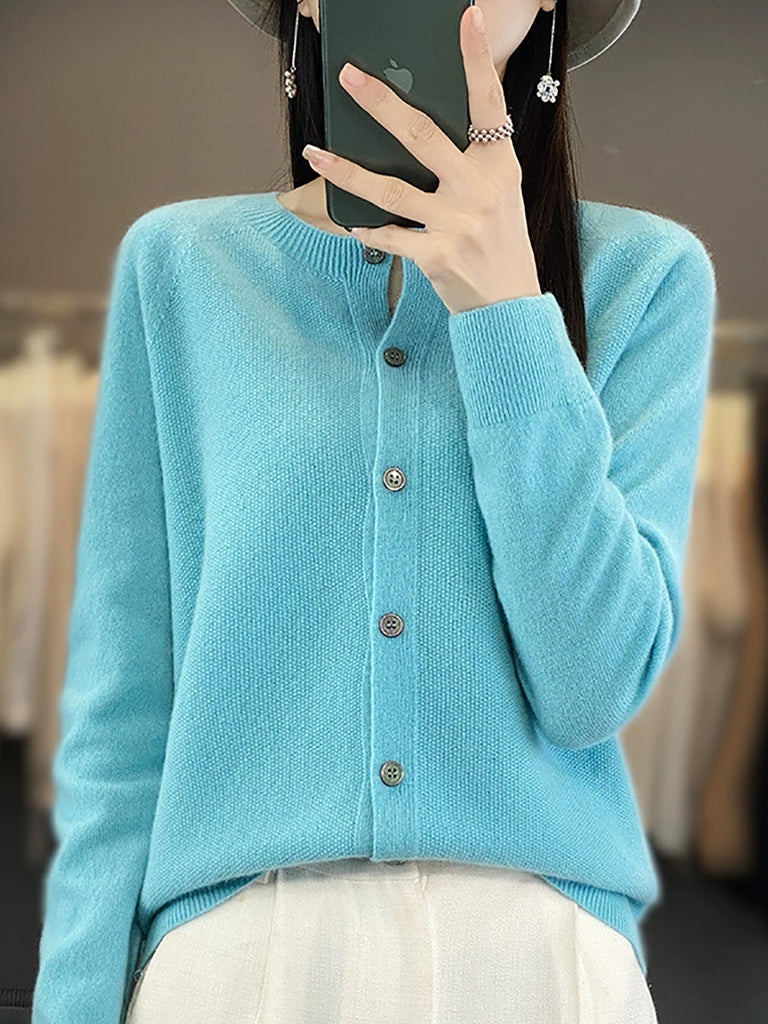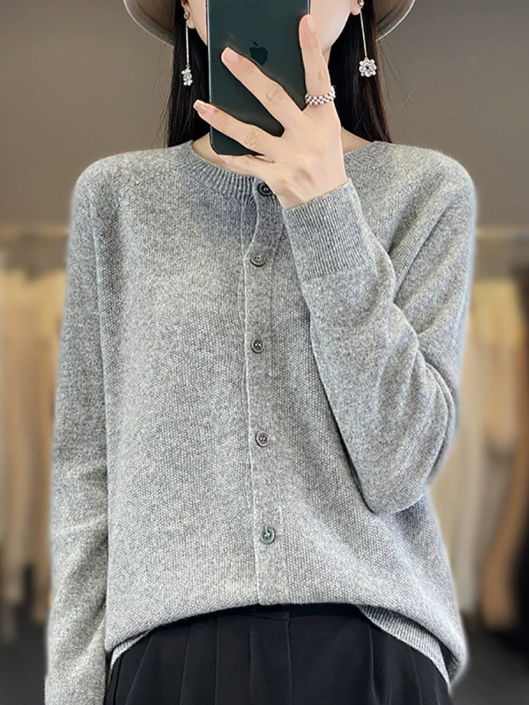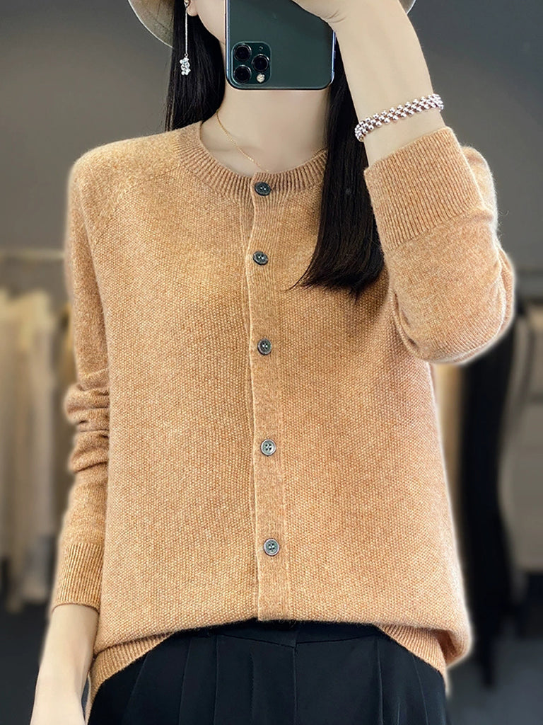 سترة كارديجان صوفية محبوكة برقبة دائرية كاجوال للنساء لفصل الخريف