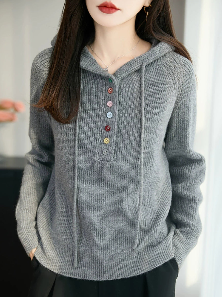 سترة نسائية كاجوال بغطاء للرأس بلون نقي مناسبة للخريف
