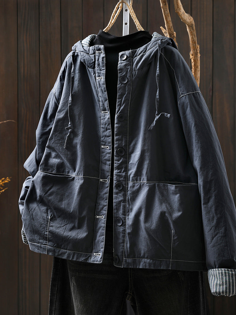 سترة نسائية كاجوال مبطنة بغطاء للرأس بألوان نقية مناسبة للخريف