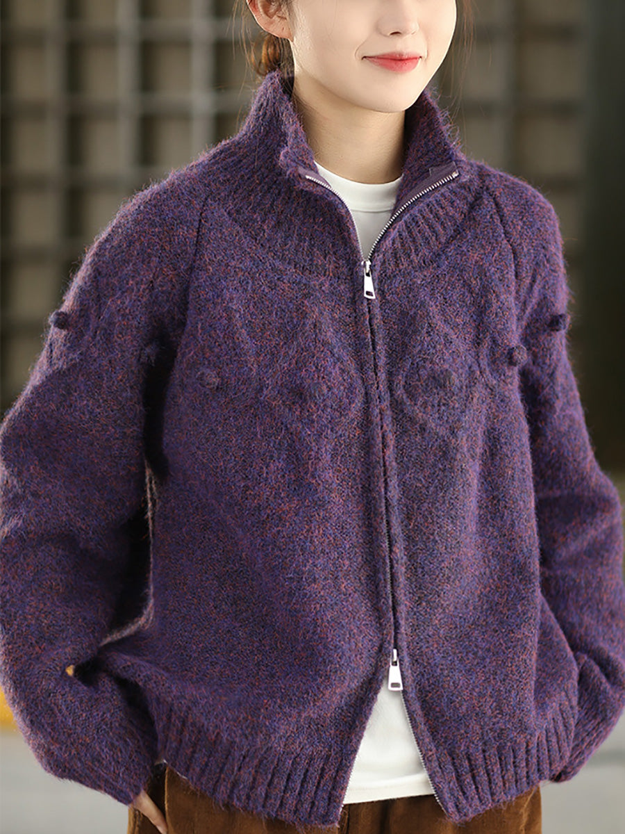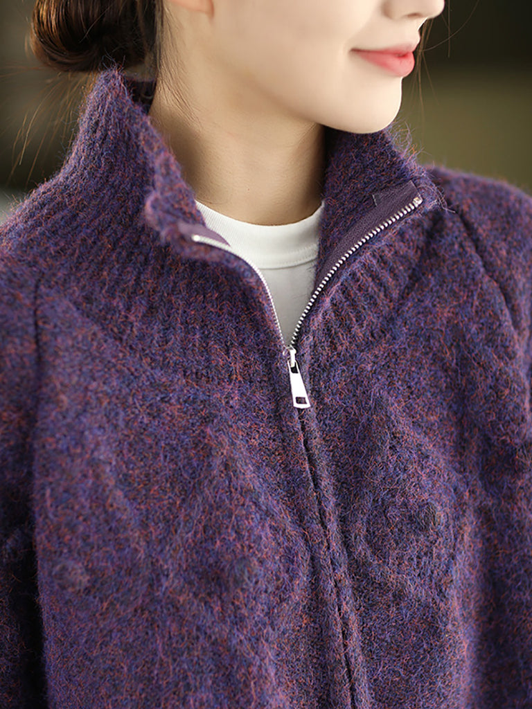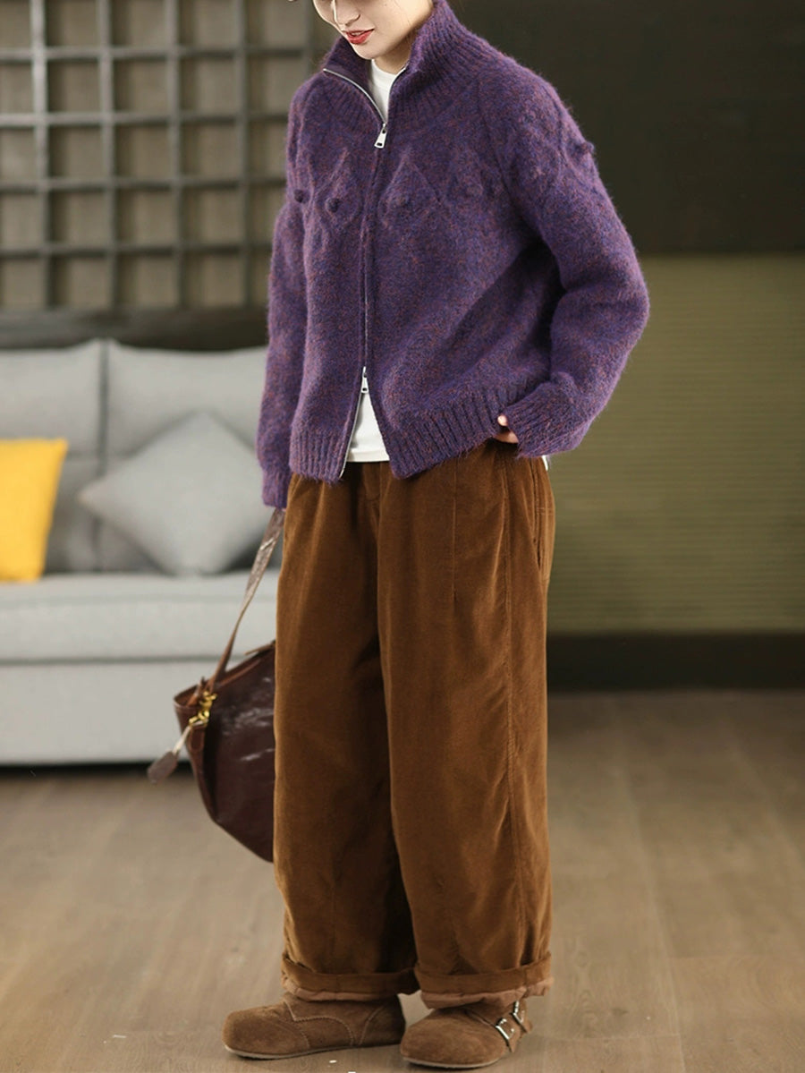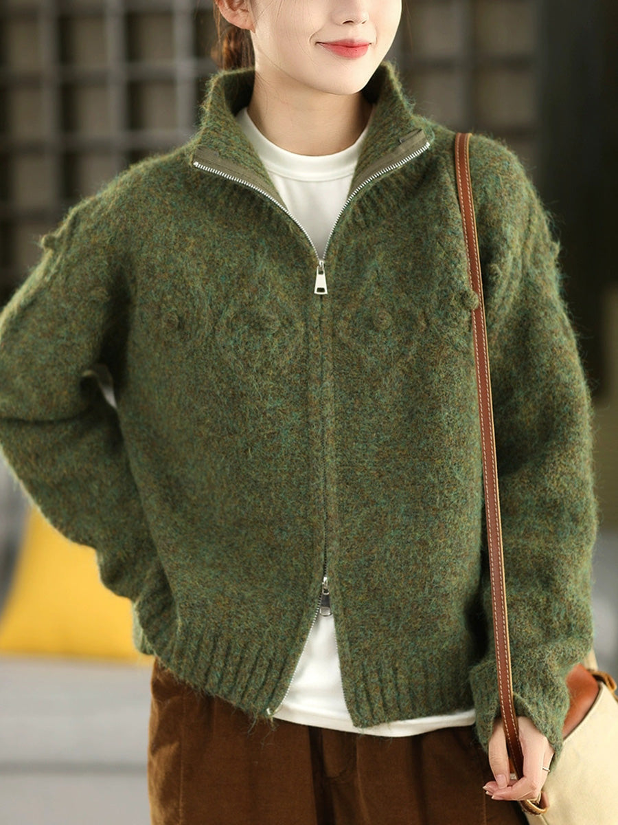سترة نسائية محبوكة بياقة واقفة بتصميم ريترو لفصل الخريف