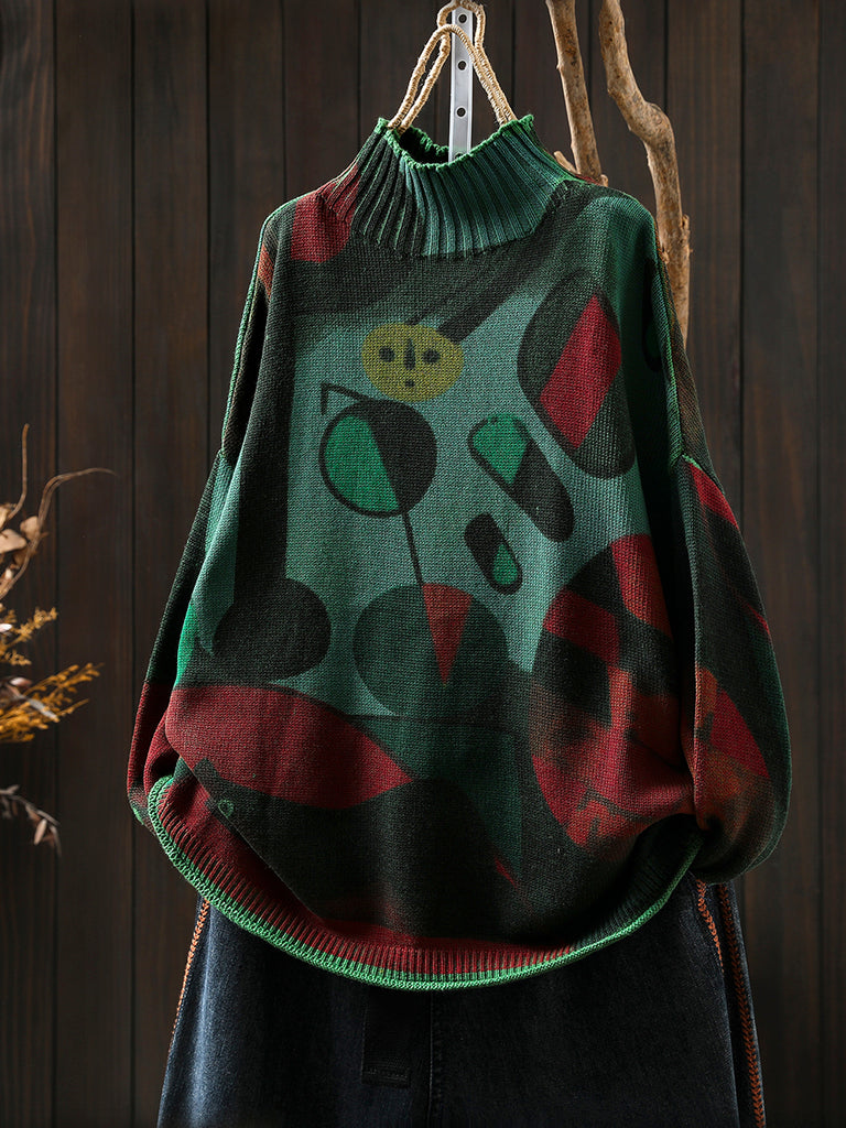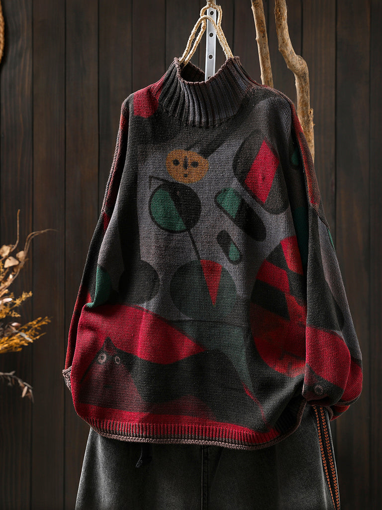 سترة نسائية بطبعة خريفية عتيقة بياقة مدورة نصفية