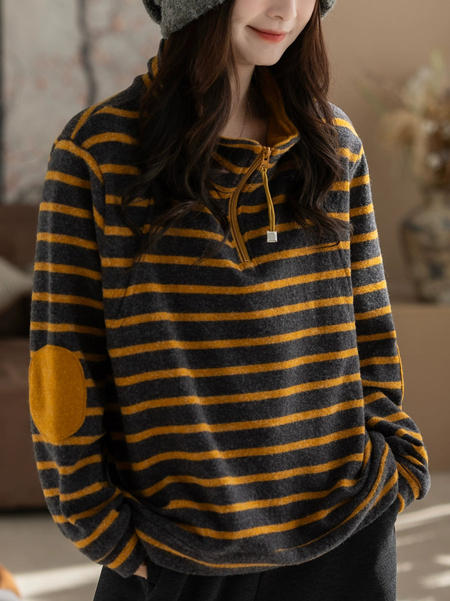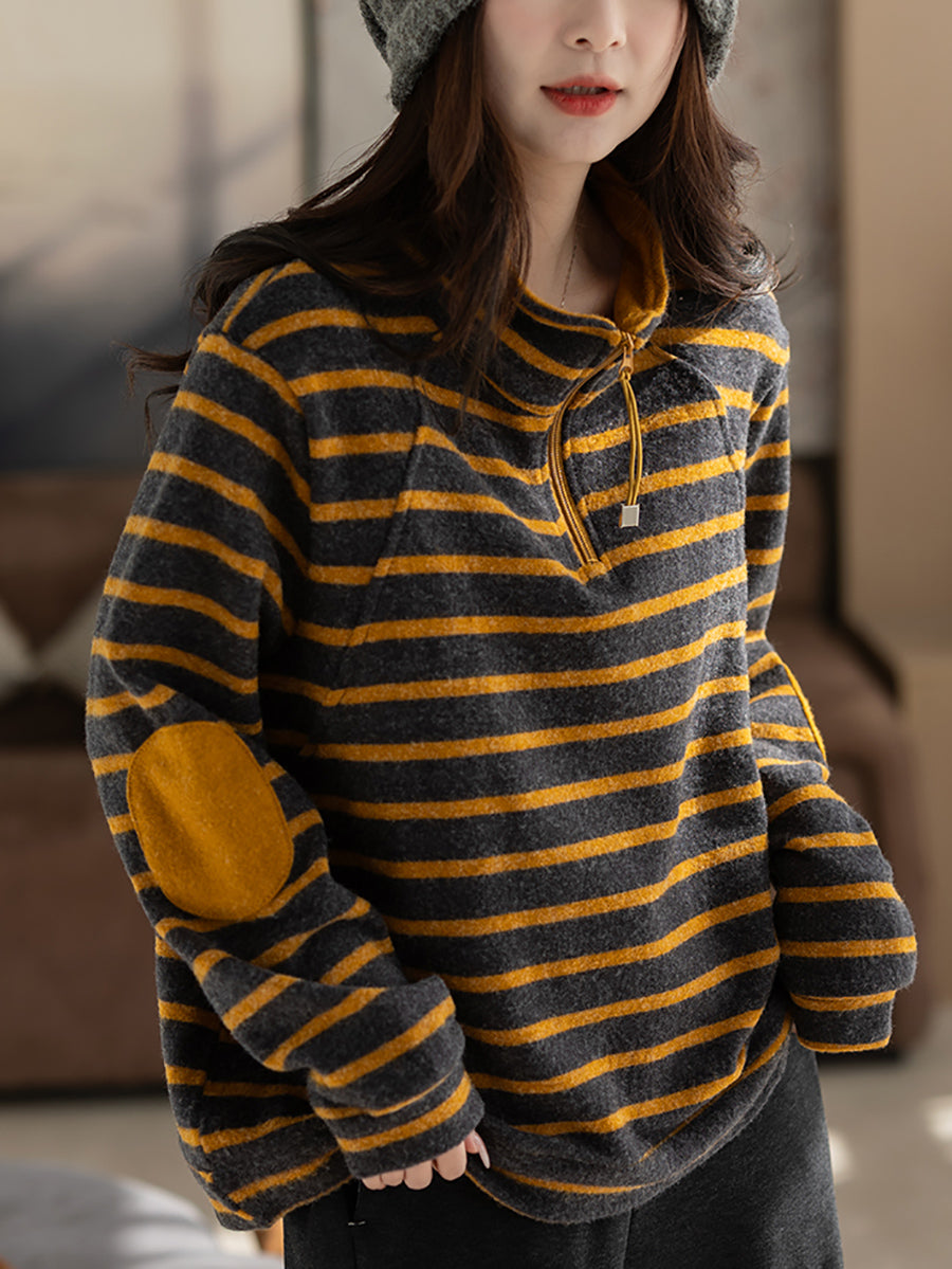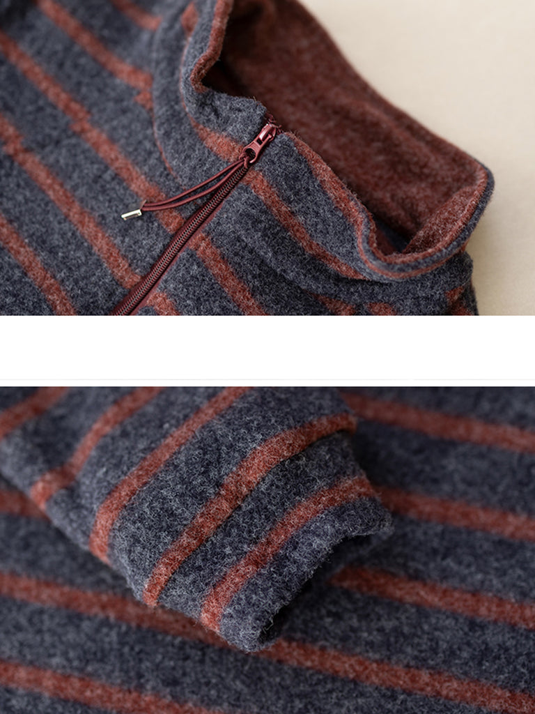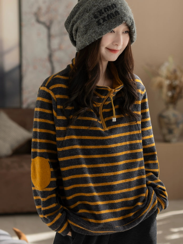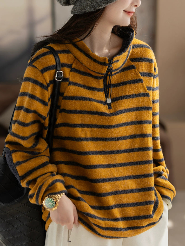 بلوزة نسائية مخططة خريفية عتيقة بياقة واقفة