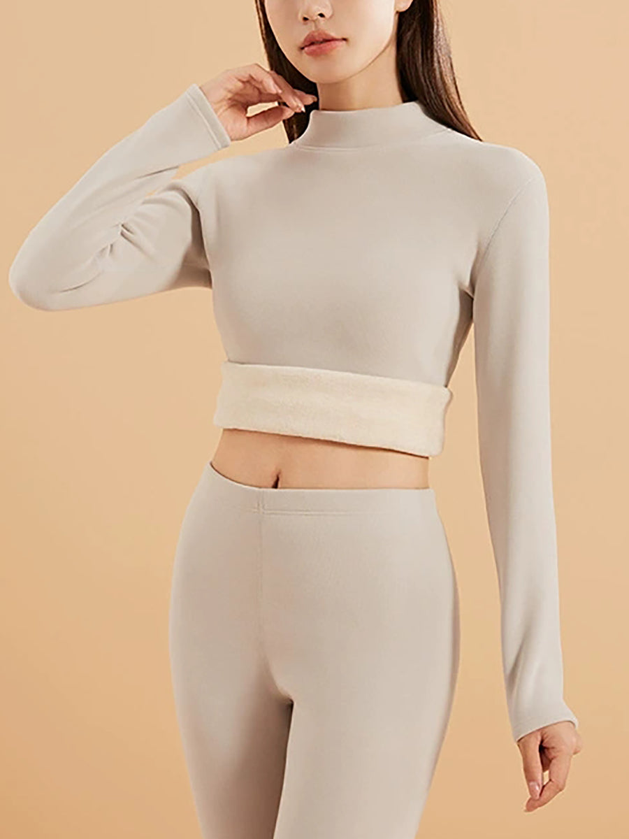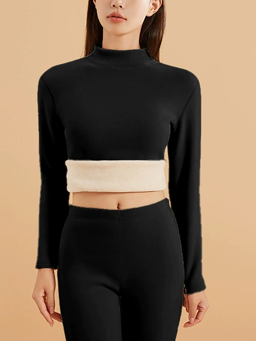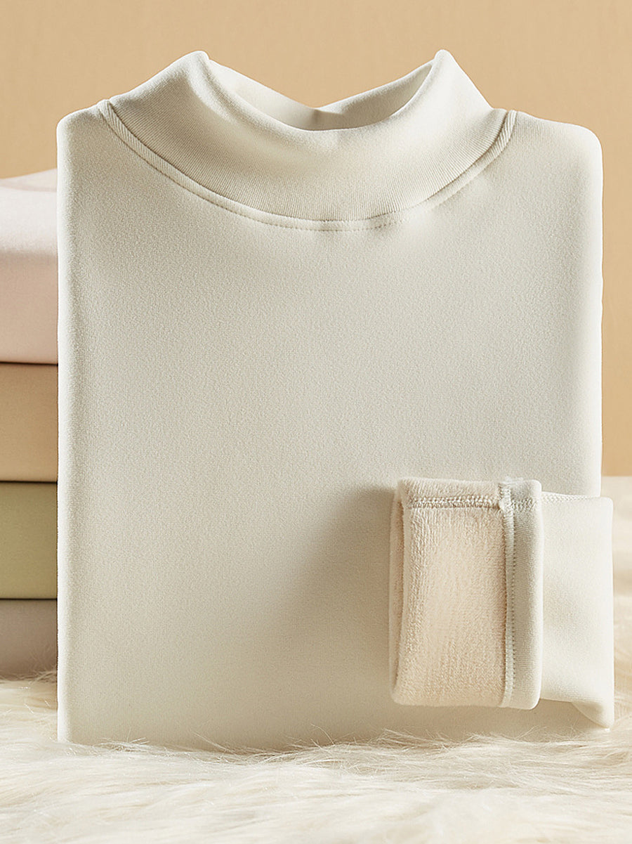 بلوزة نسائية شتوية بلون نقي بنصف رقبة مدورة