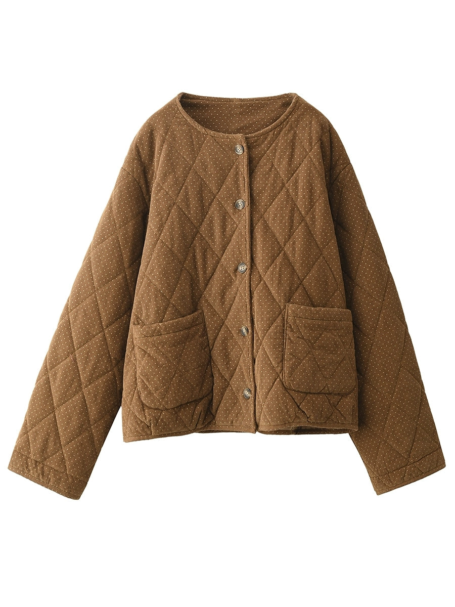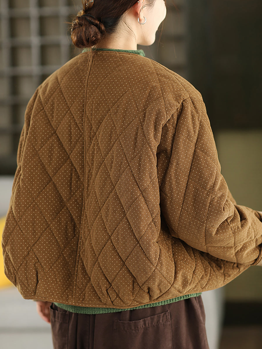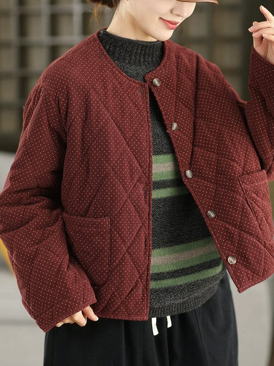 جاكيت نسائي شتوي مبطن من قماش مخملي برقبة دائرية ونقاط ريترو