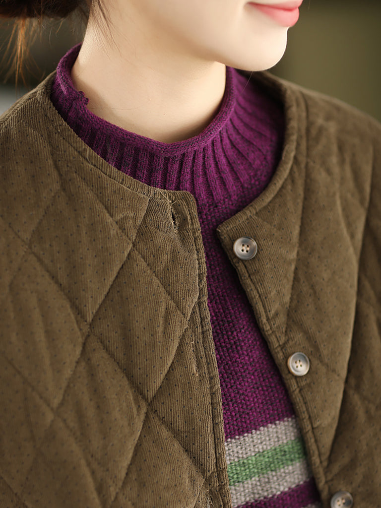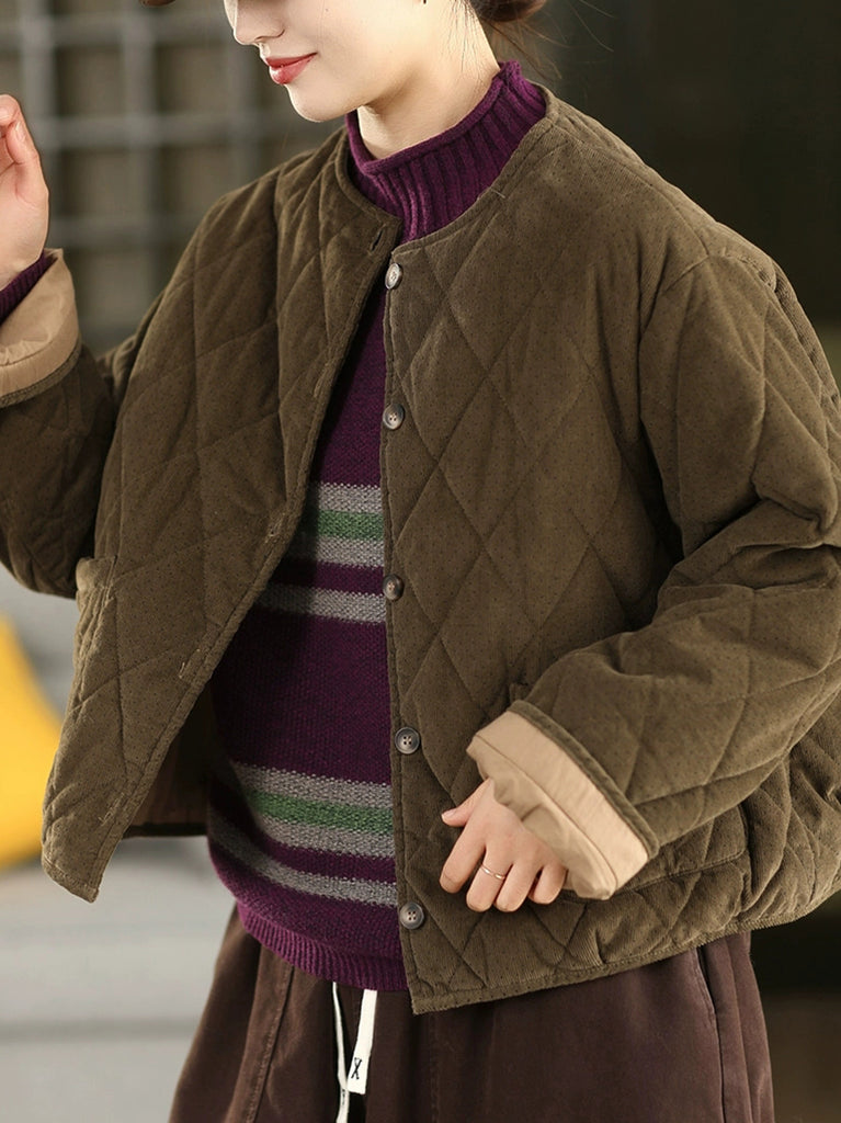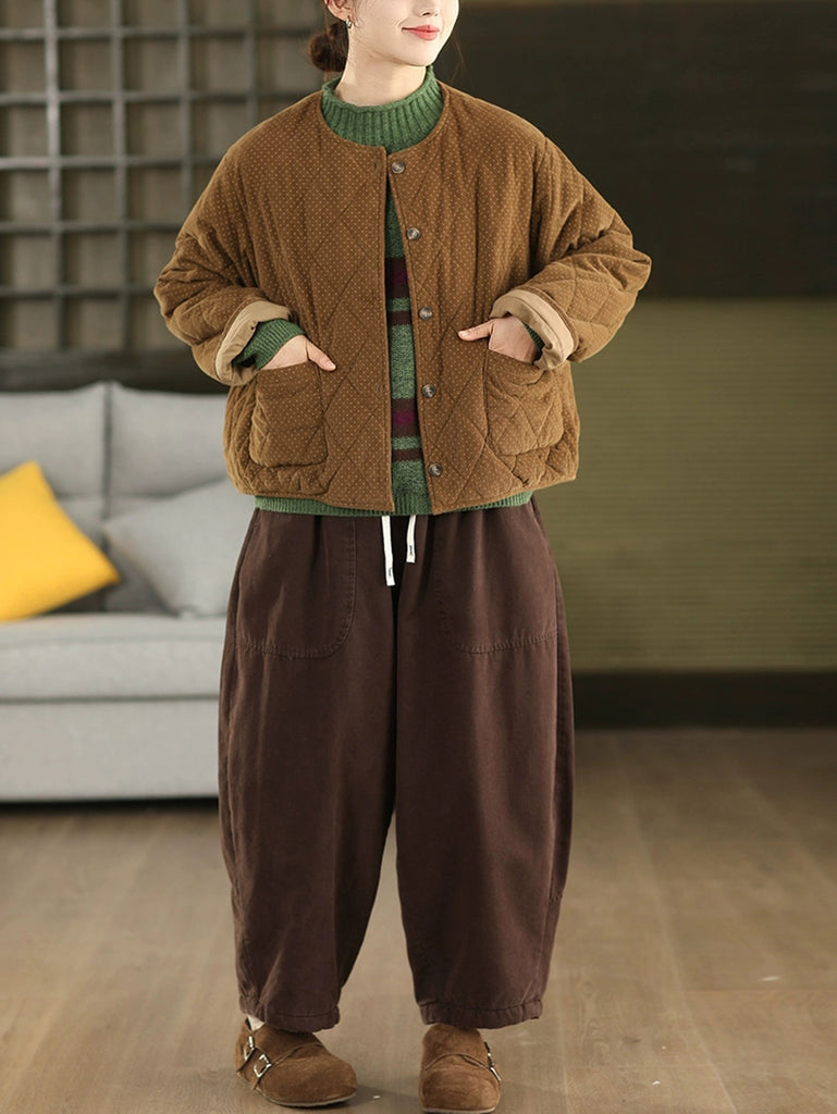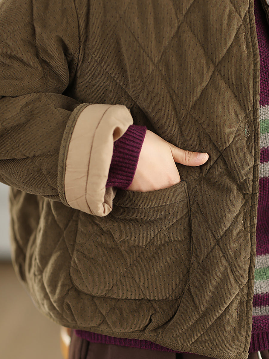 جاكيت نسائي شتوي مبطن من قماش مخملي برقبة دائرية ونقاط ريترو