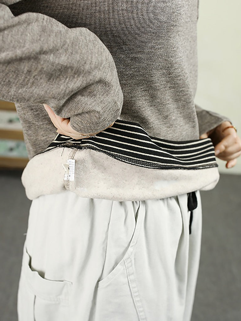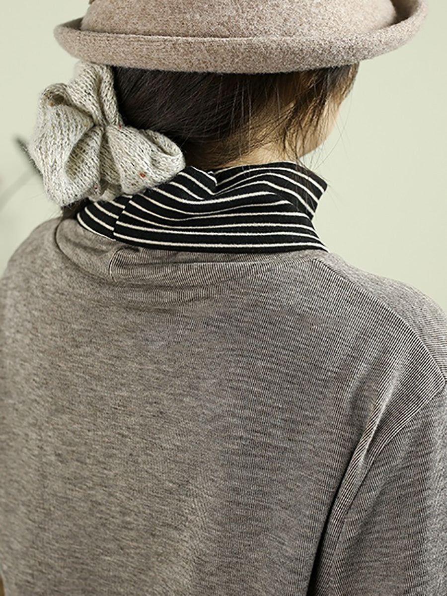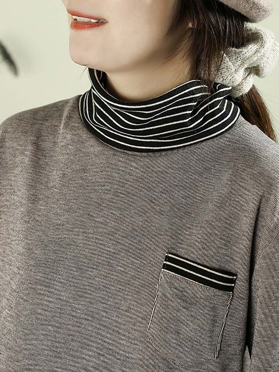 بلوزة نسائية شتوية مخططة بياقة مدورة مبطنة بالصوف