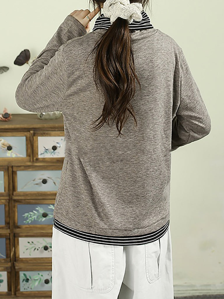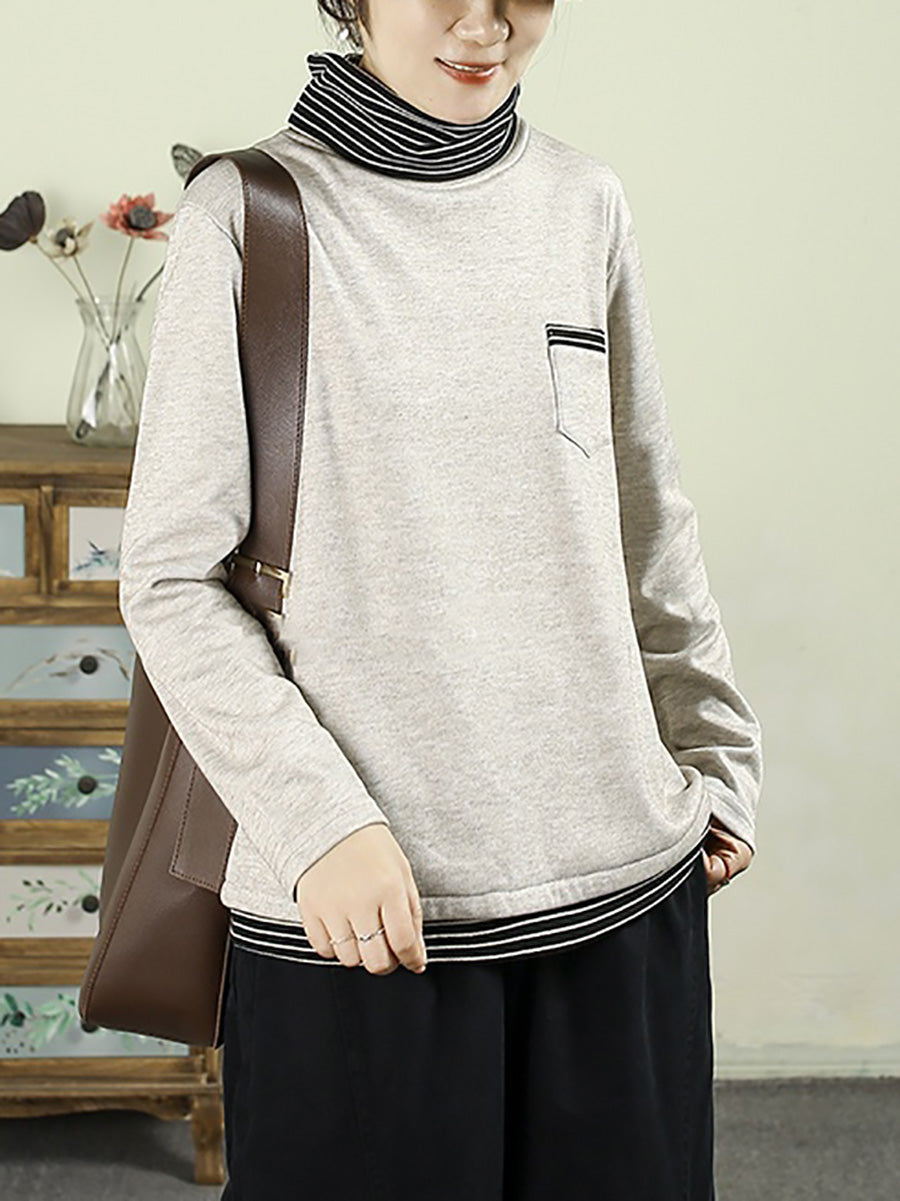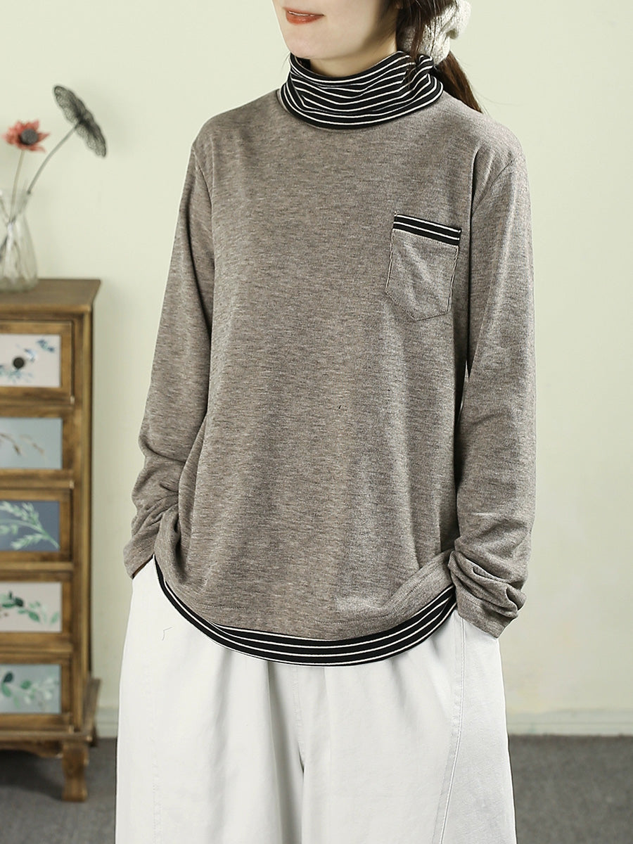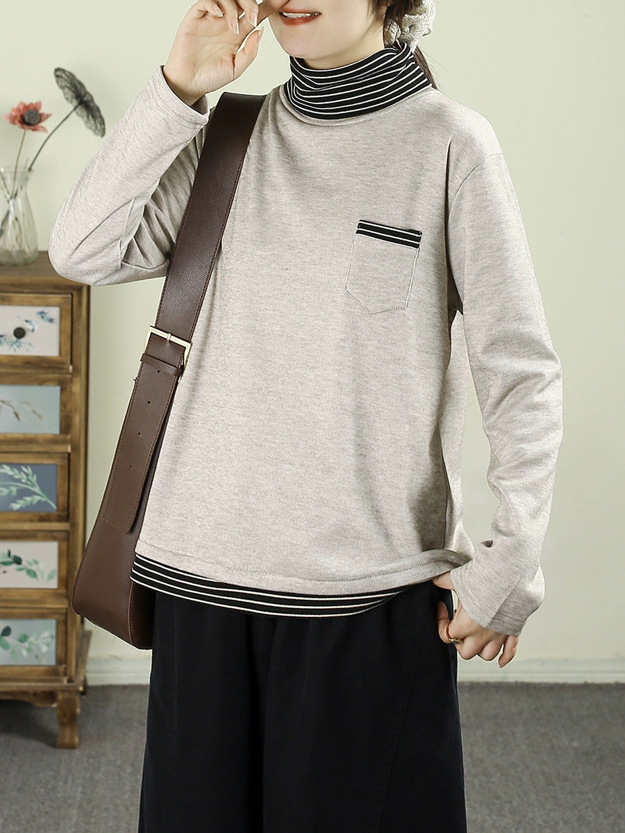 بلوزة نسائية شتوية مخططة بياقة مدورة مبطنة بالصوف