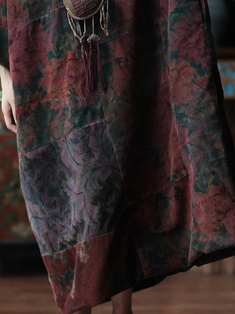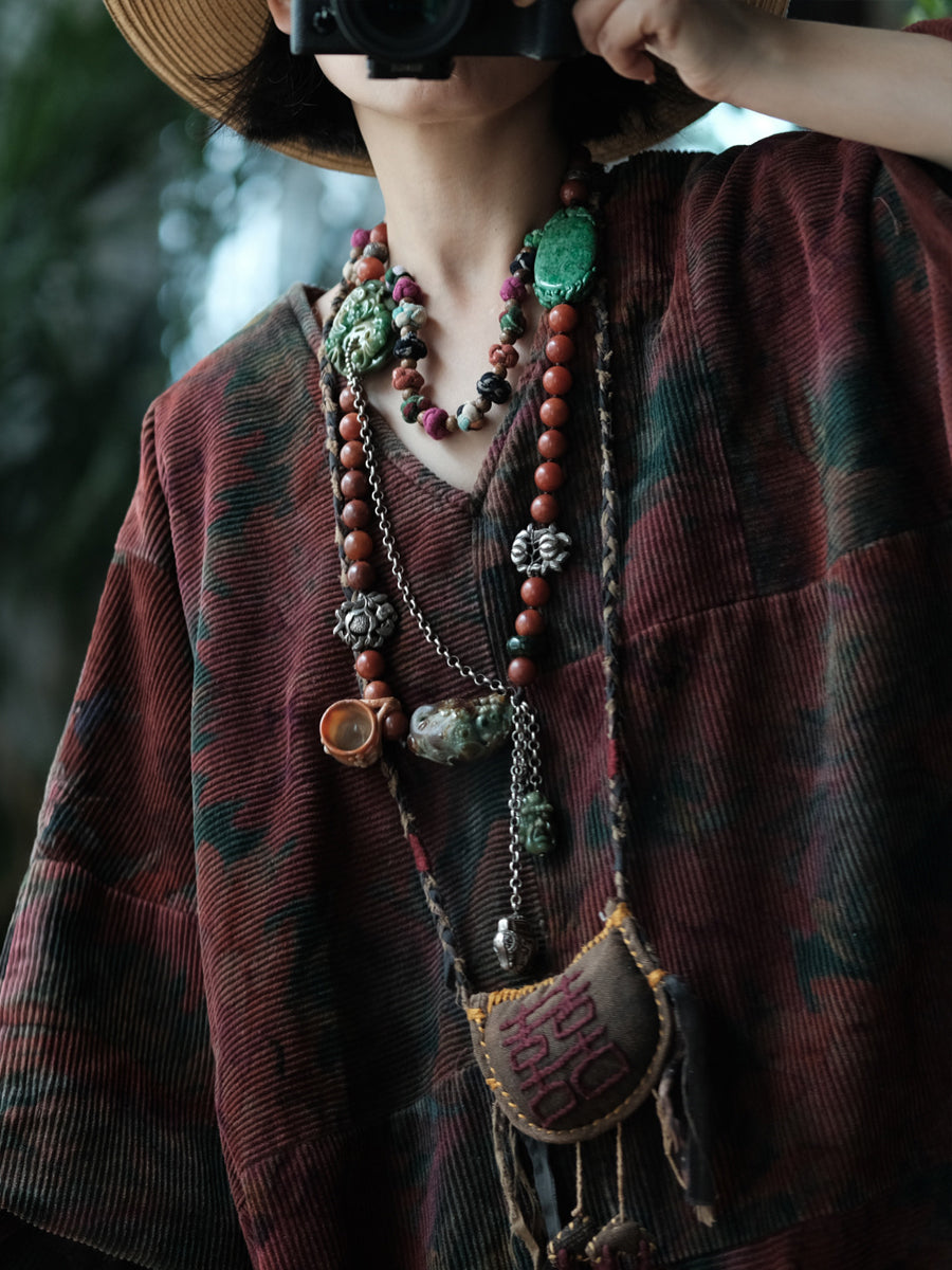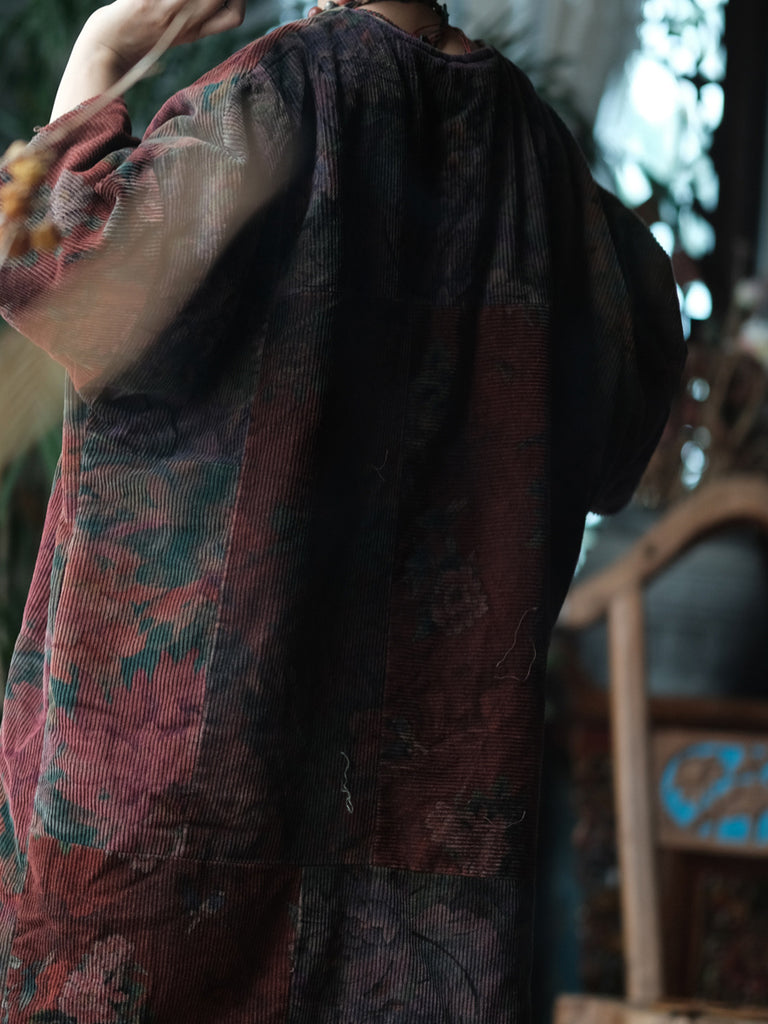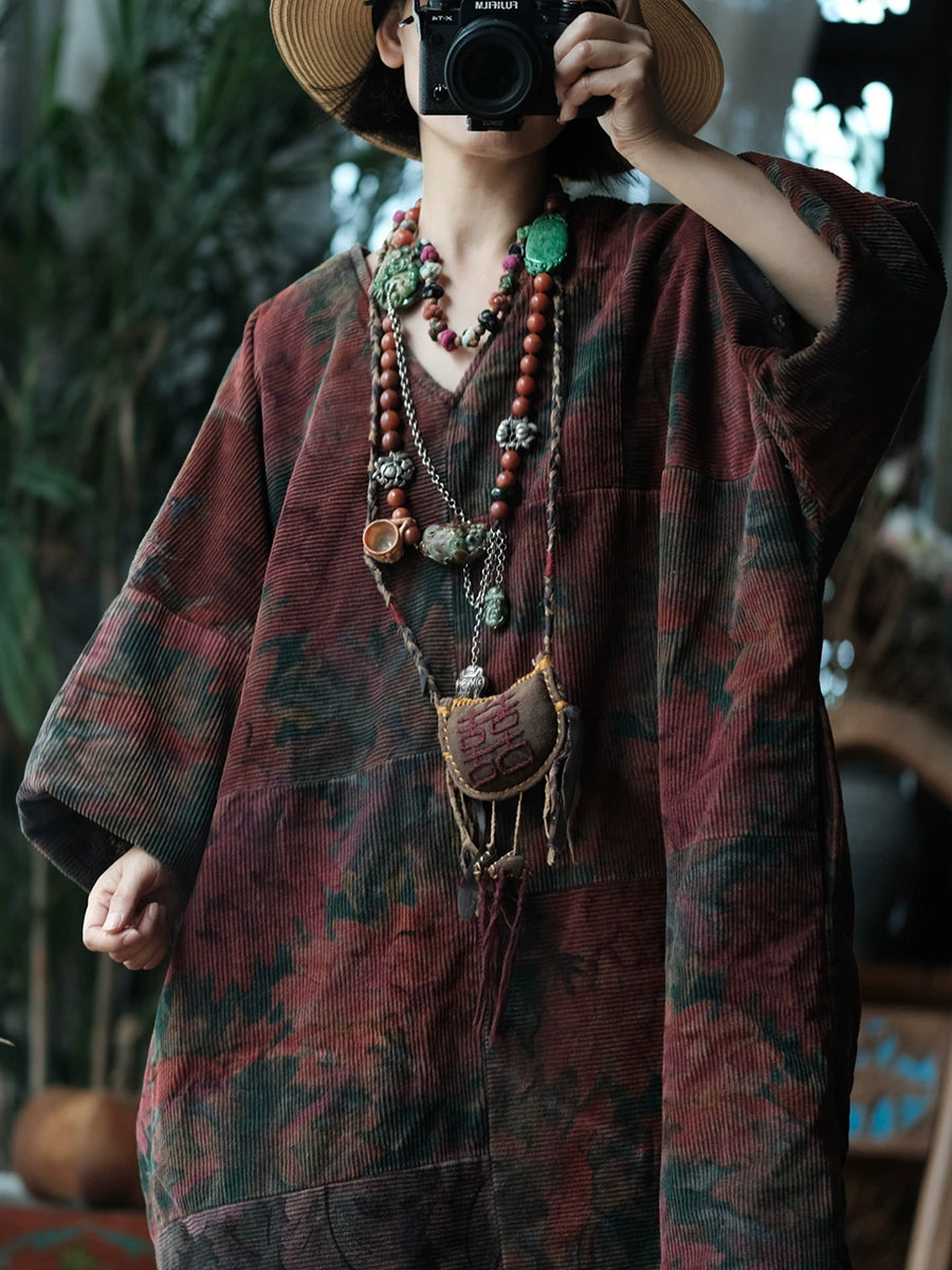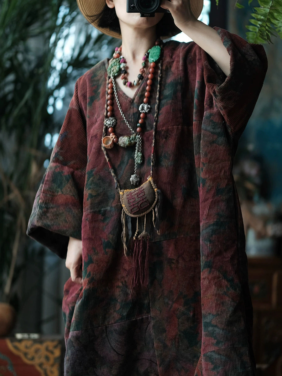 معطف نسائي شتوي عتيق من القطن برقبة على شكل حرف V