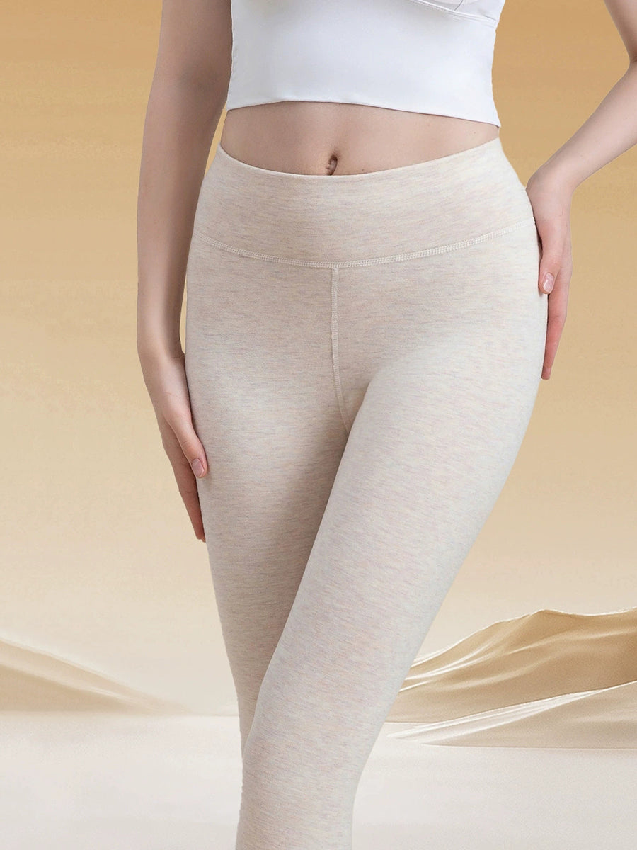 بنطلون ليجنز نسائي شتوي دافئ بلون نقي بخصر مرتفع