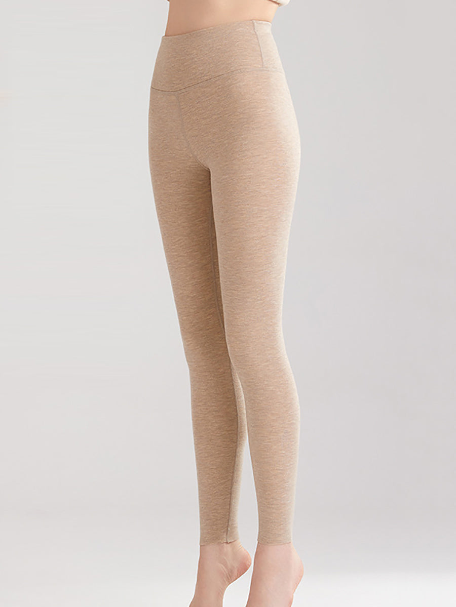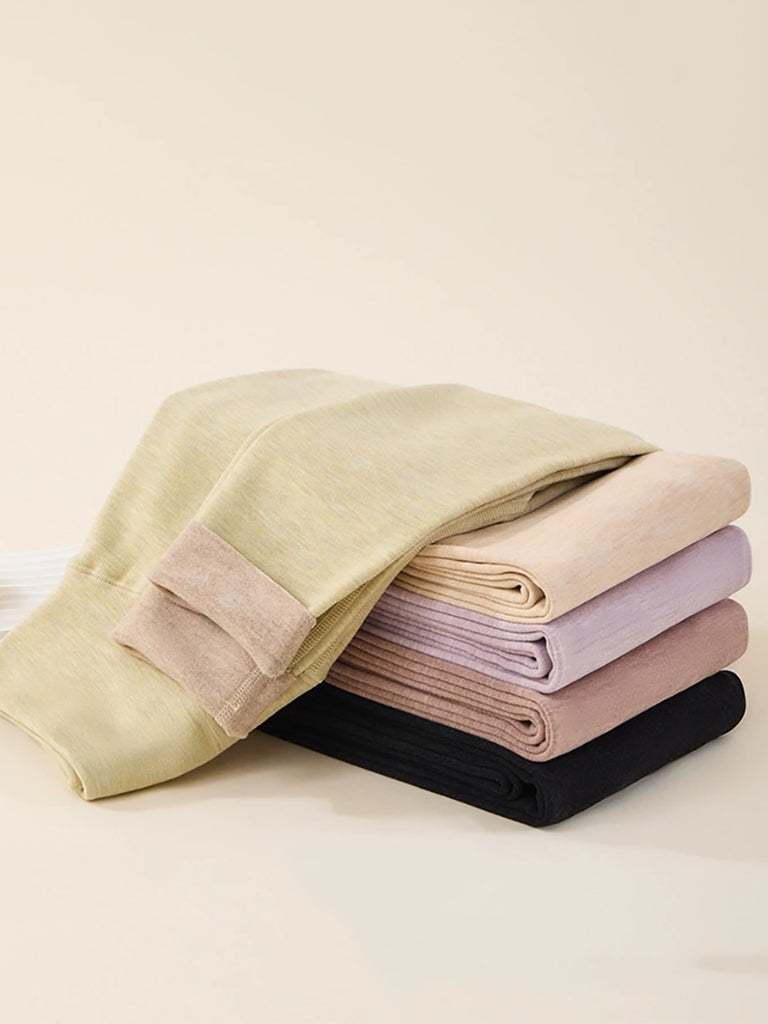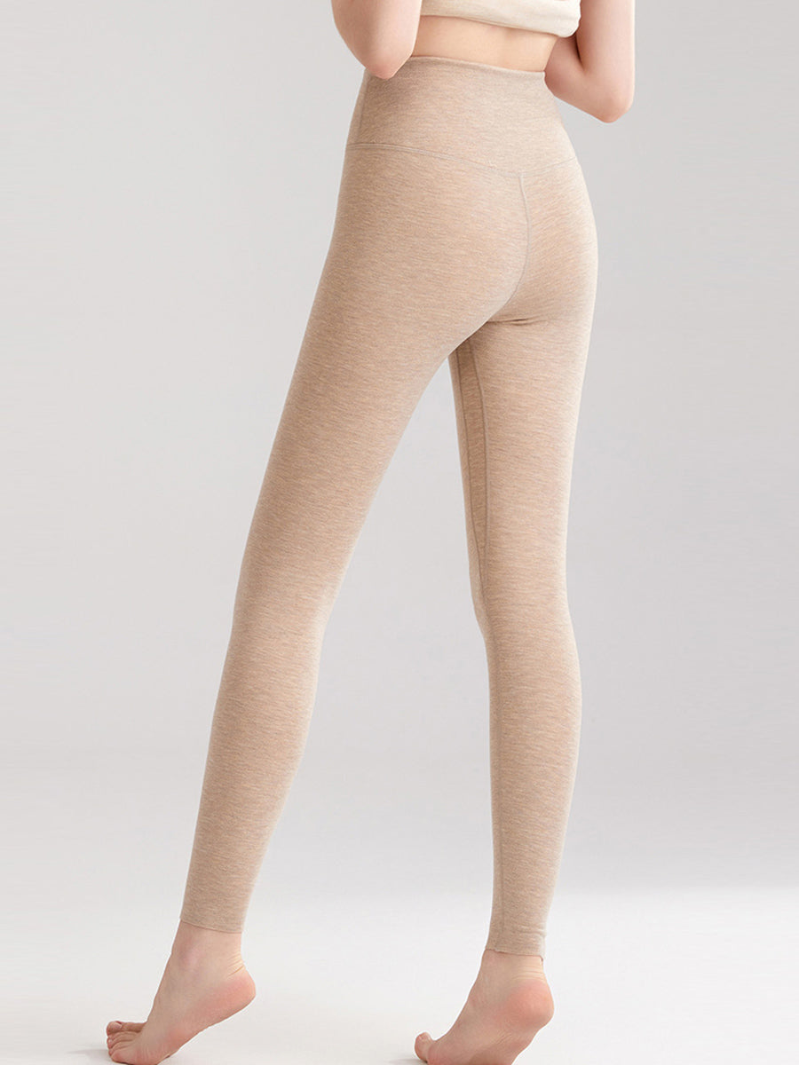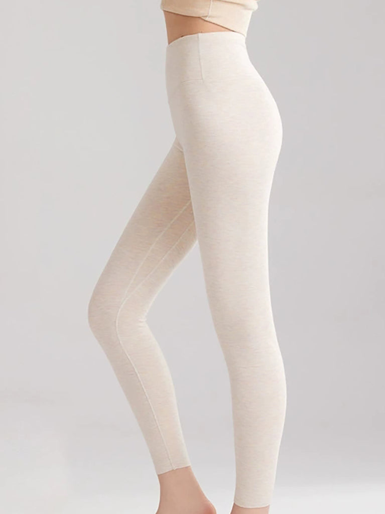 بنطلون ليجنز نسائي شتوي دافئ بلون نقي بخصر مرتفع