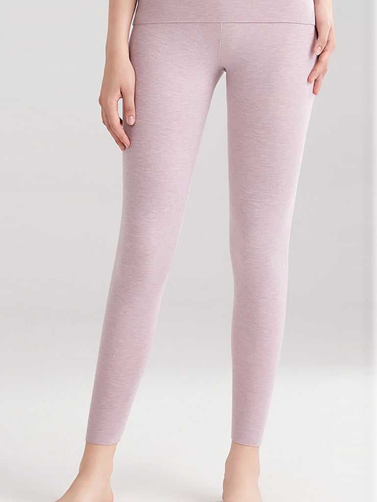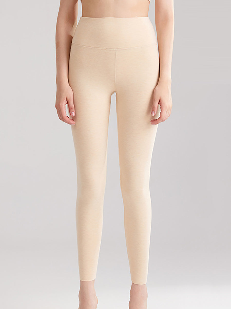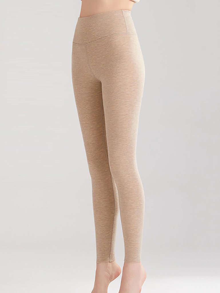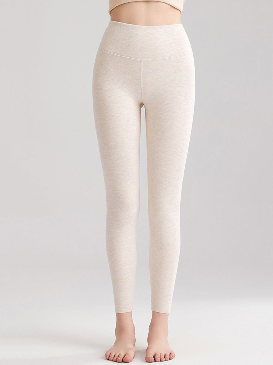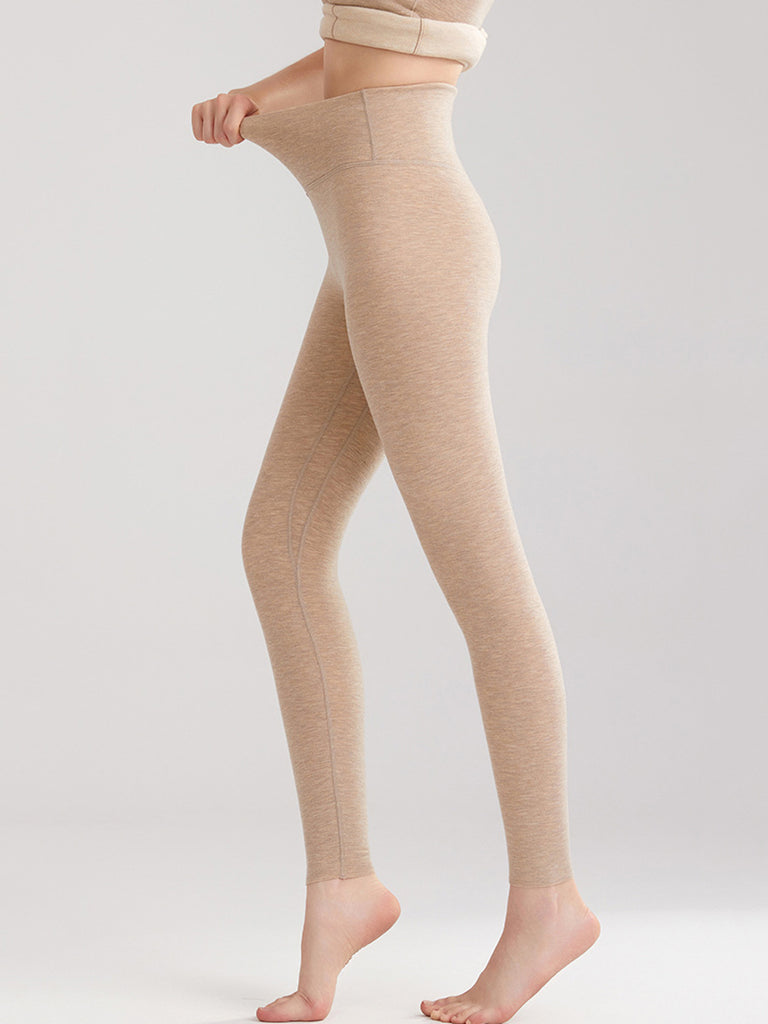 بنطلون ليجنز نسائي شتوي دافئ بلون نقي بخصر مرتفع
